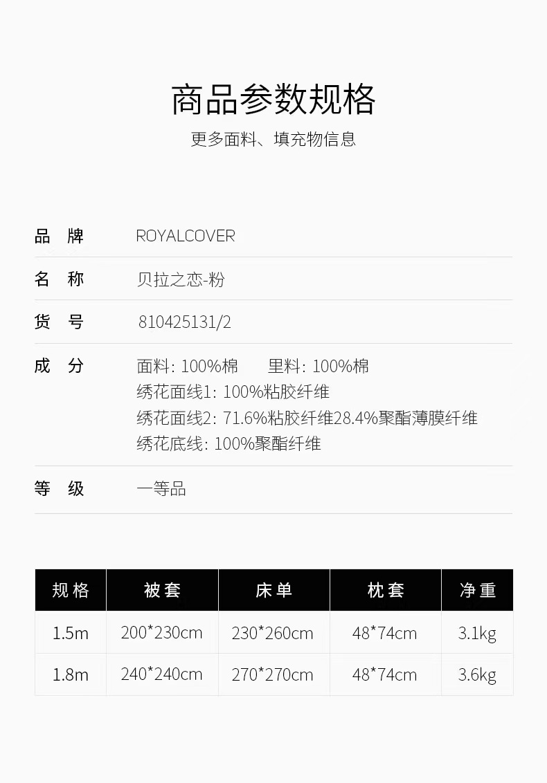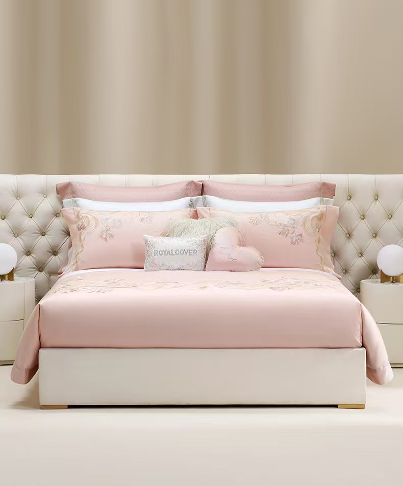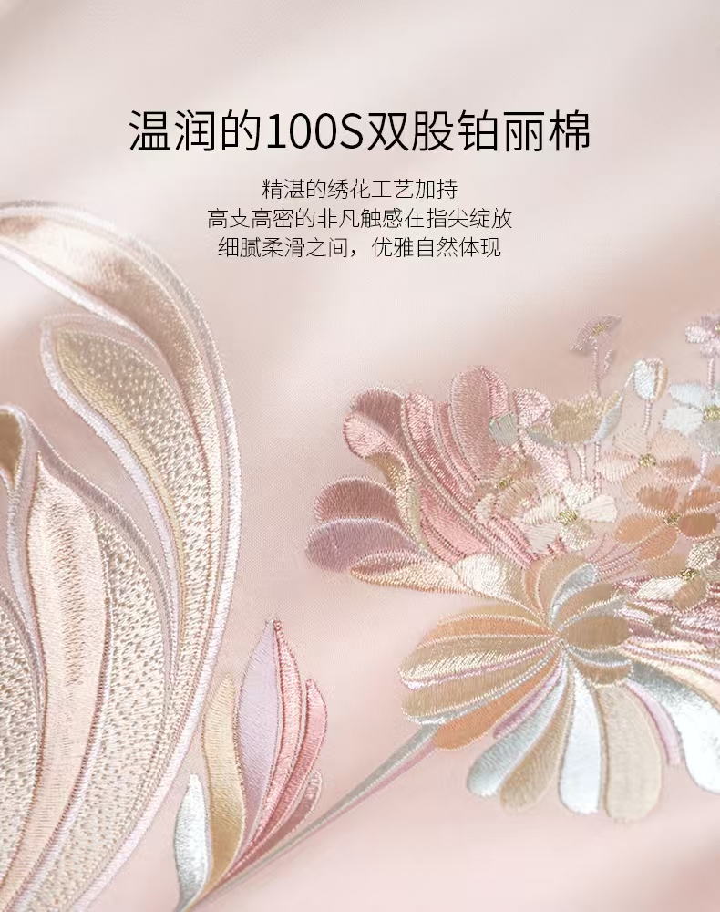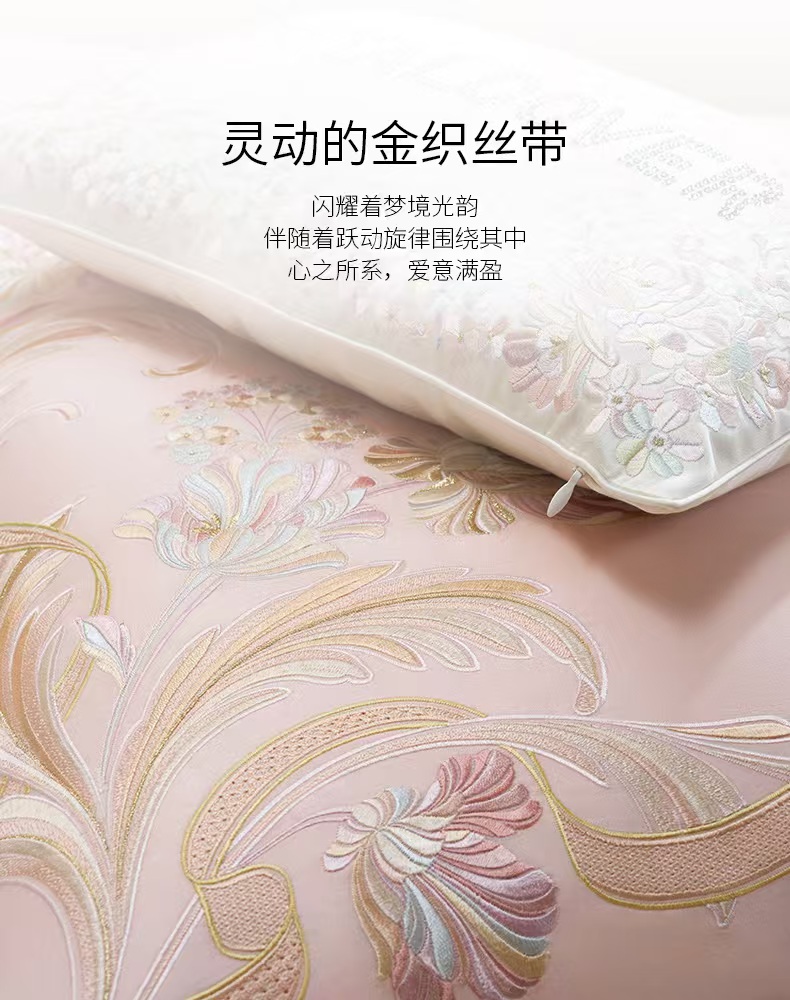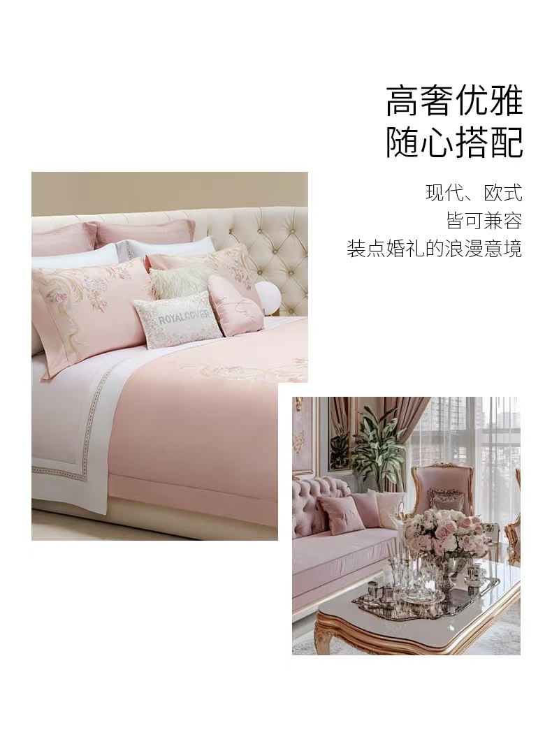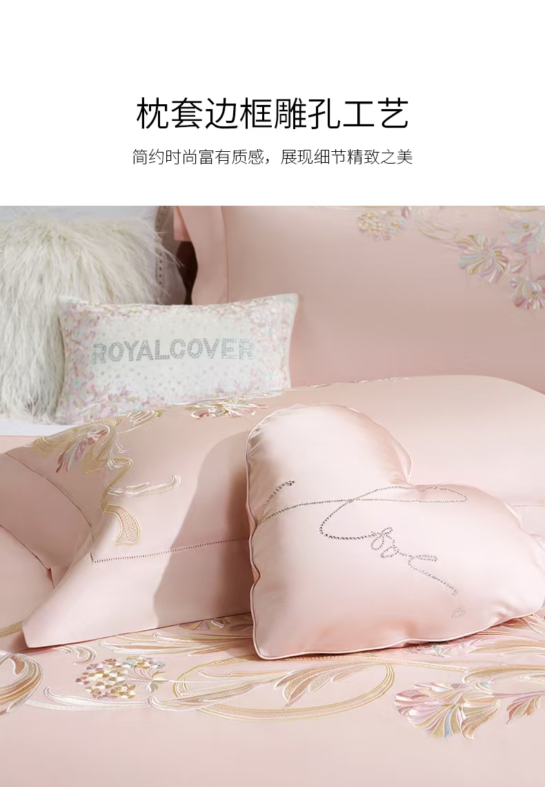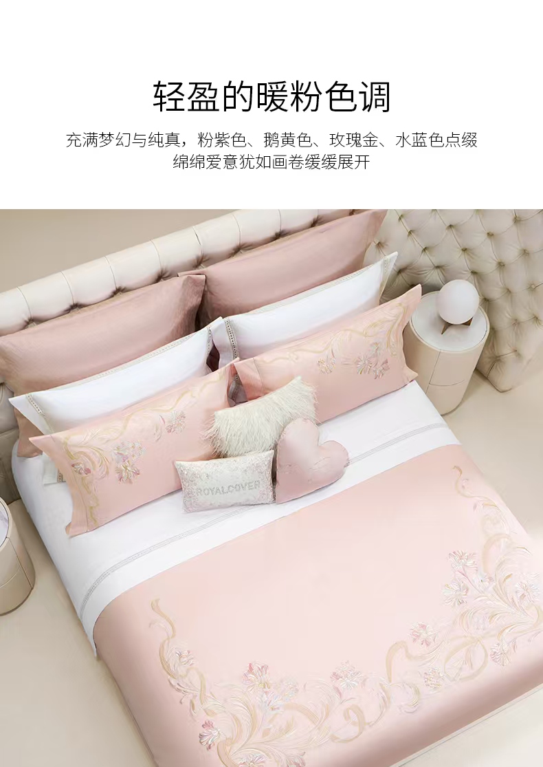 10楼罗卡芙ROYALCOVER100支全棉绣花欧式婚庆 红色四件套 贝拉之恋-粉240*240cm 吊牌价8980元 活动价4980元