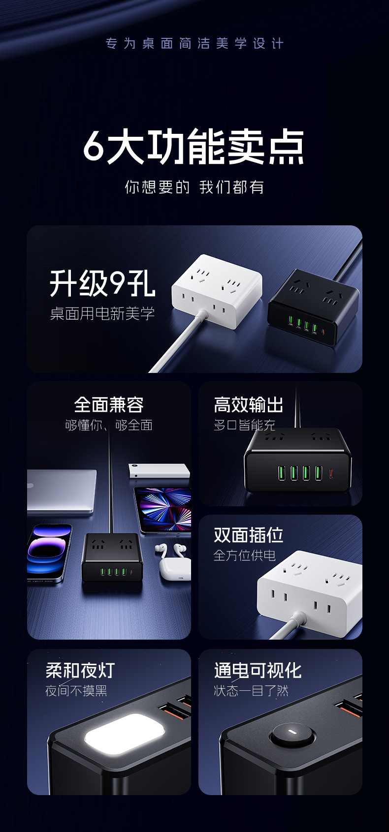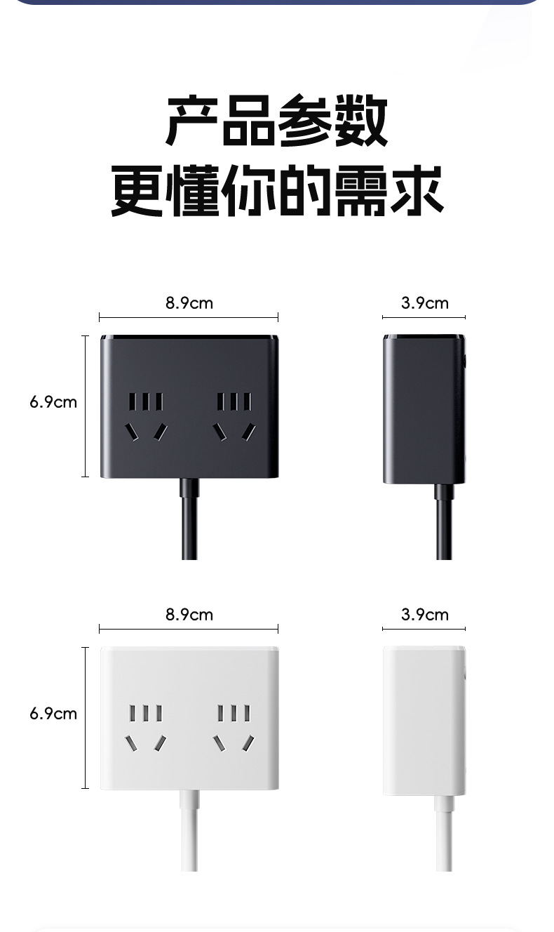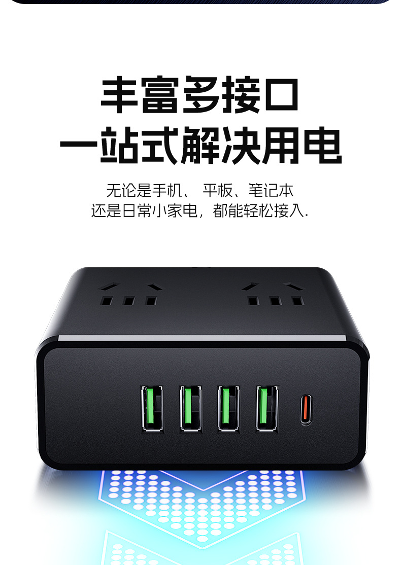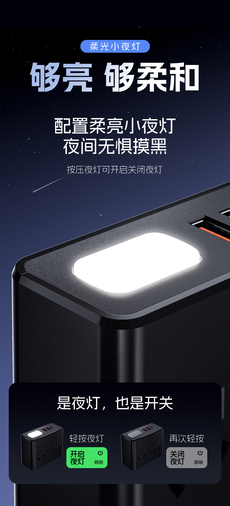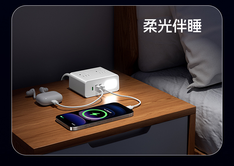 严选多功能USB夜灯插座 N6带U 0.8米插线板家用排插板宿舍插排一转多插孔扩展器1个