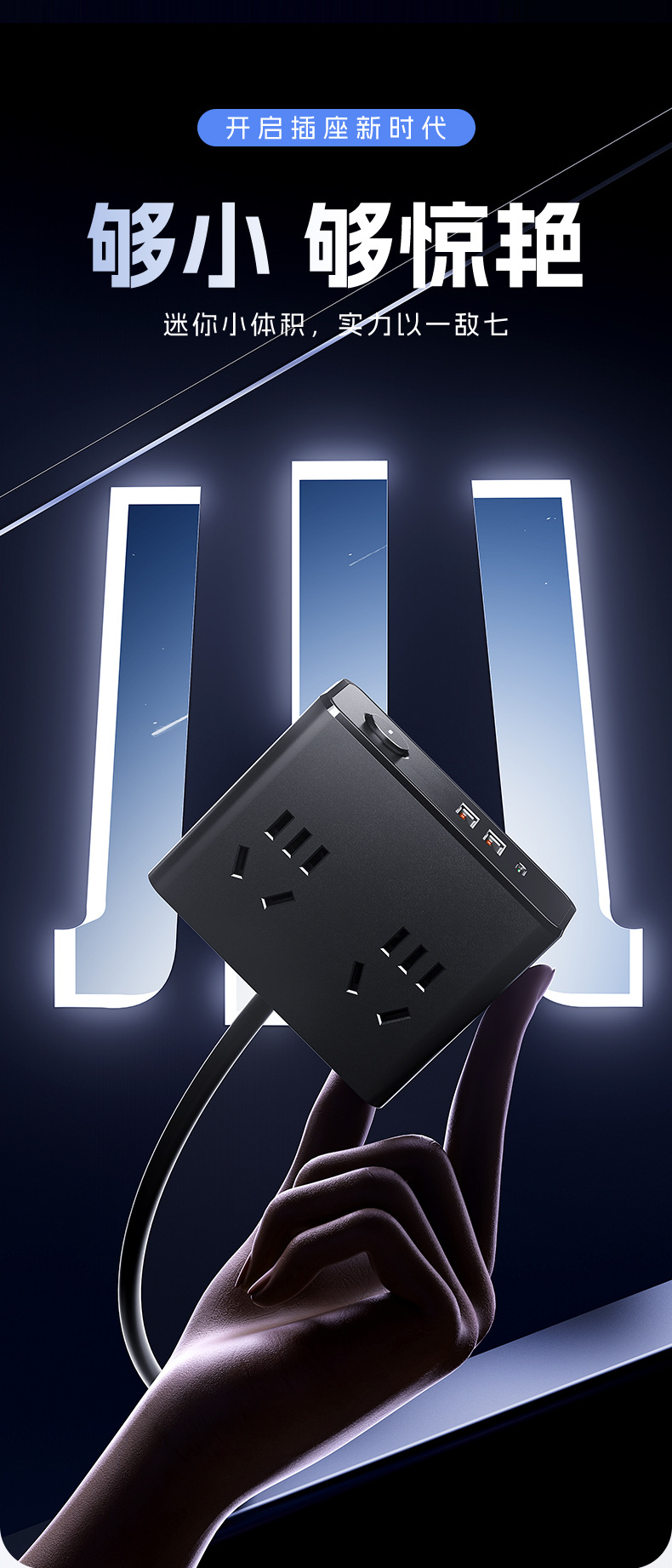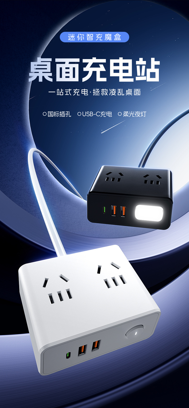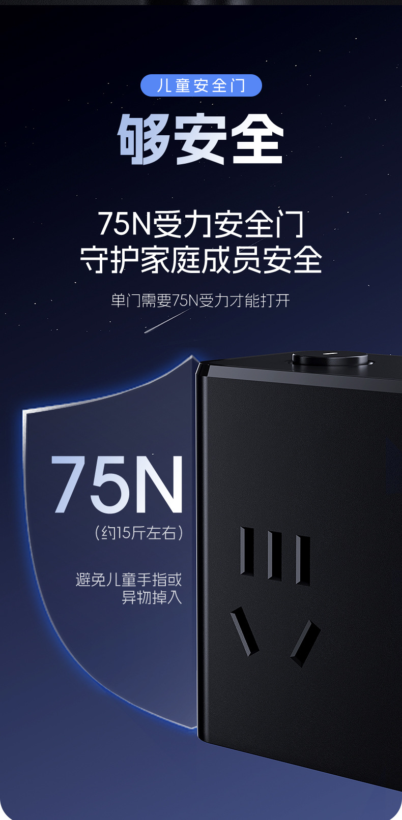 严选多功能USB夜灯插座 N6带U 0.8米插线板家用排插板宿舍插排一转多插孔扩展器1个