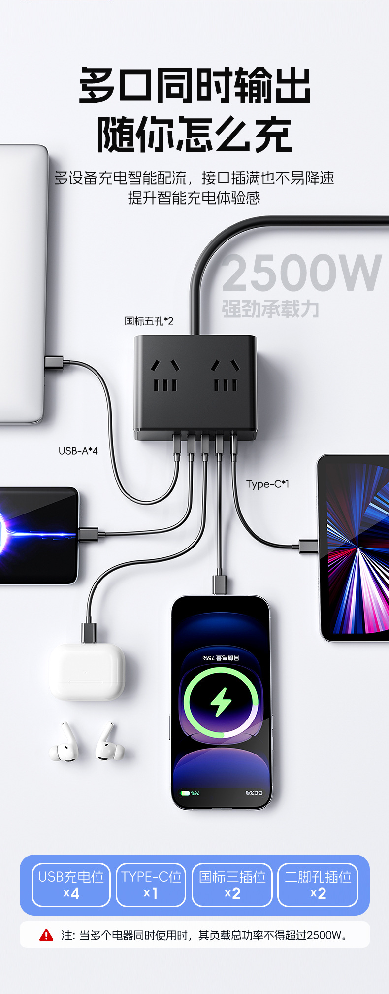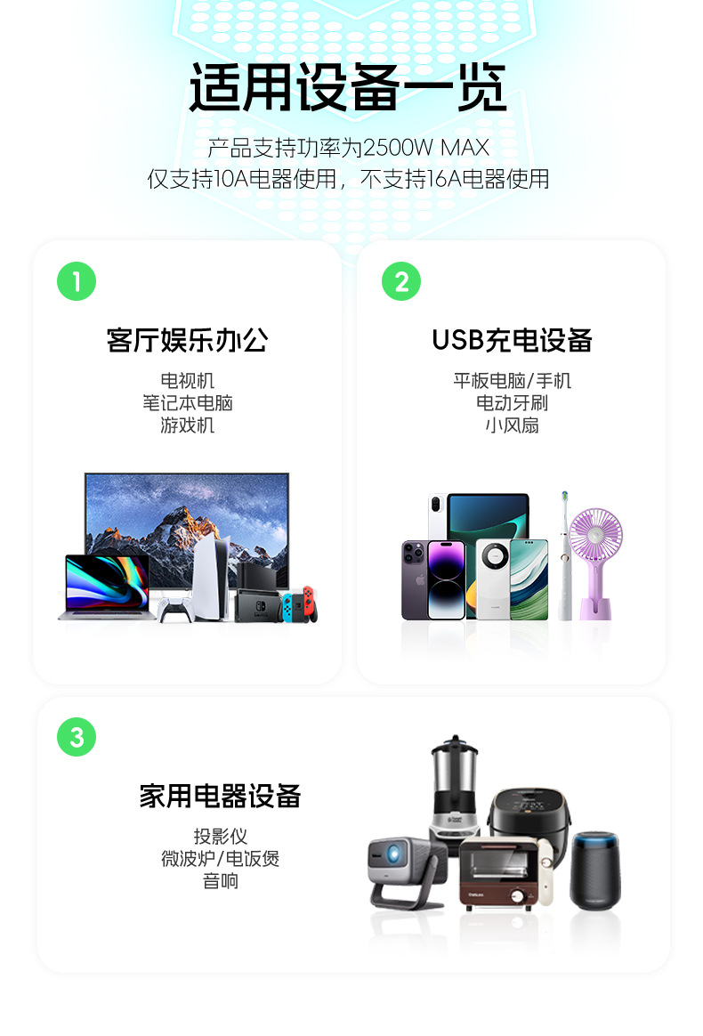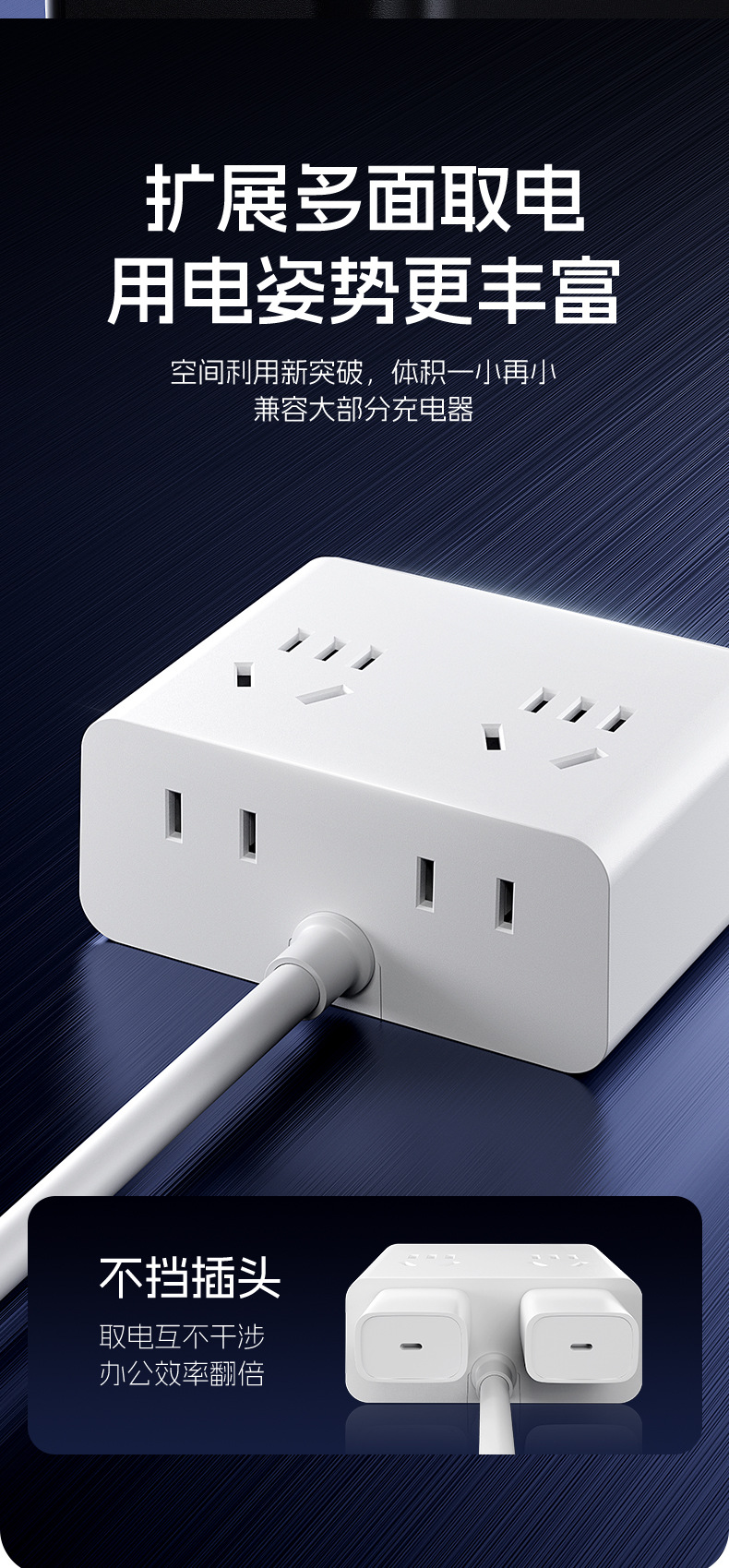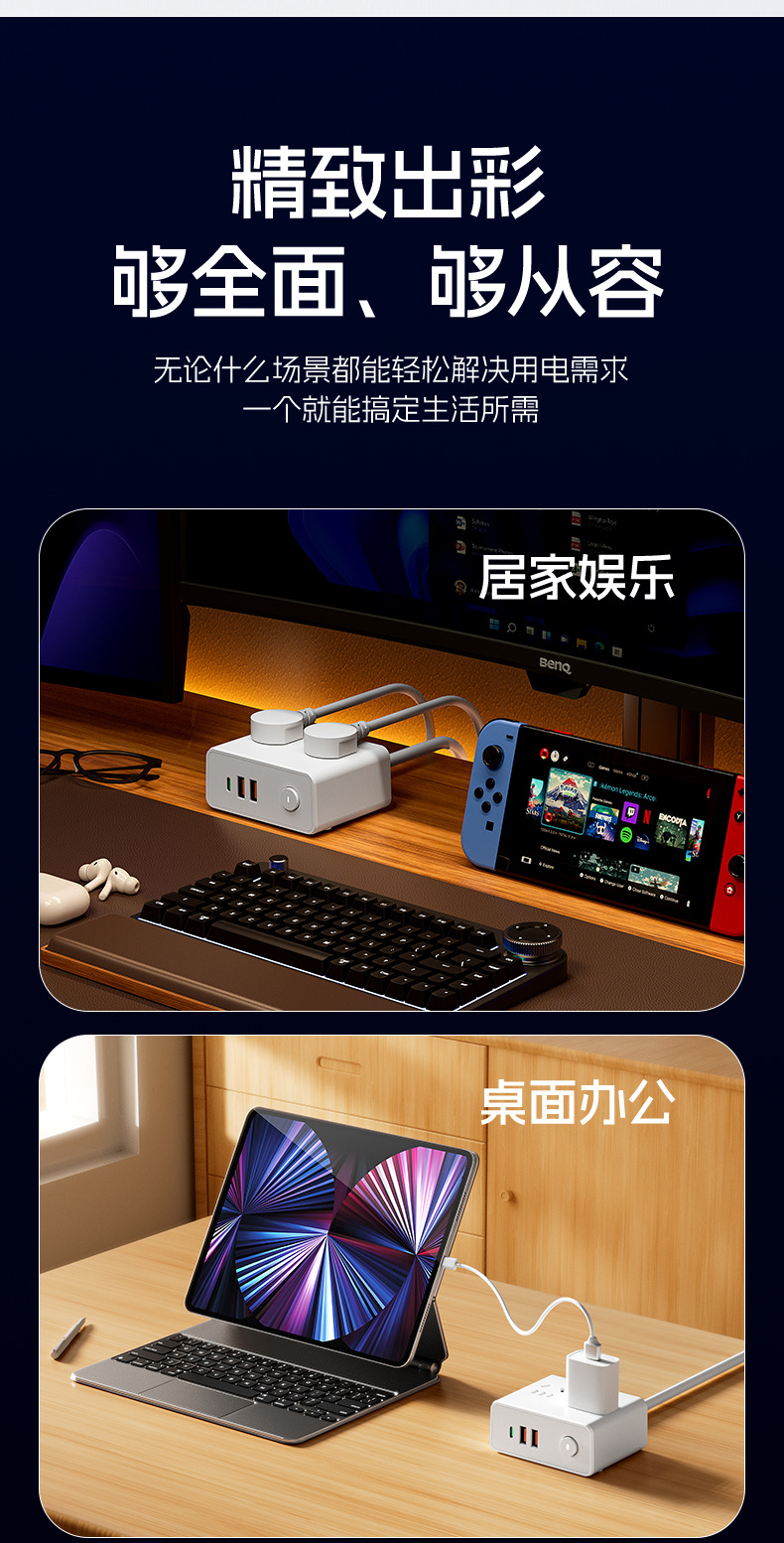 严选多功能USB夜灯插座 N6带U 0.8米插线板家用排插板宿舍插排一转多插孔扩展器1个