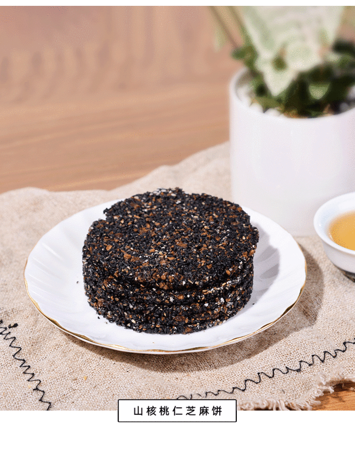 这款芝麻饼加入优质蜂蜜,调和芝麻和核桃的油腻和苦涩,还多了一分清甜。