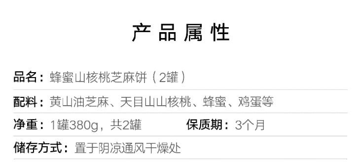 蜂蜜山核桃仁芝麻饼(2罐)|乌发健脑 商品图1