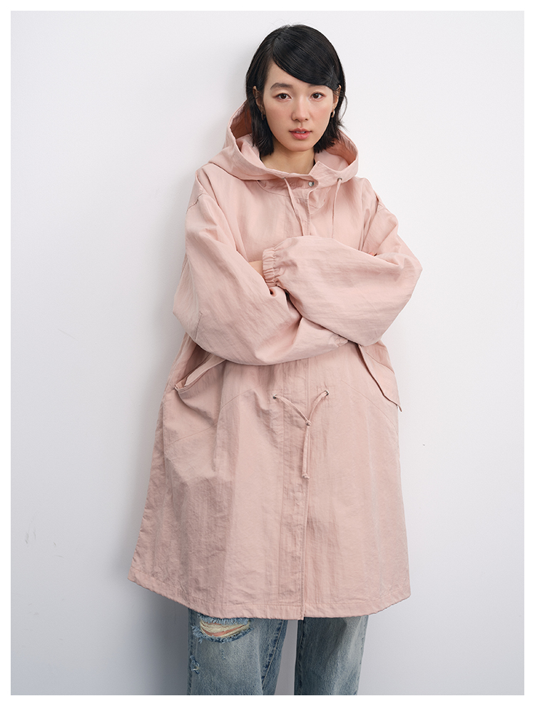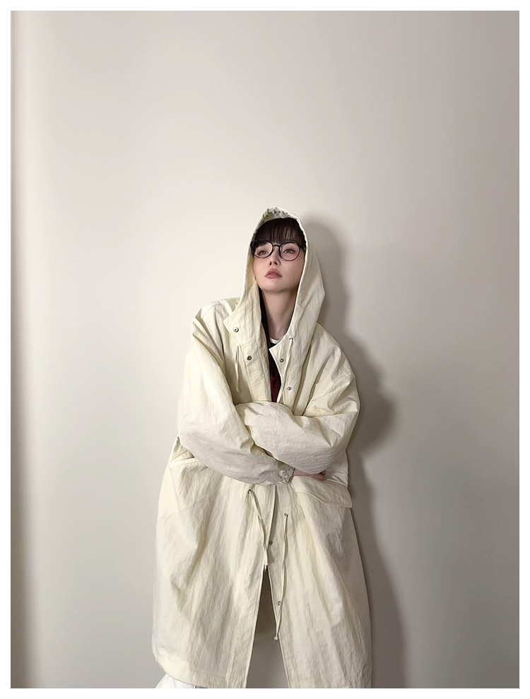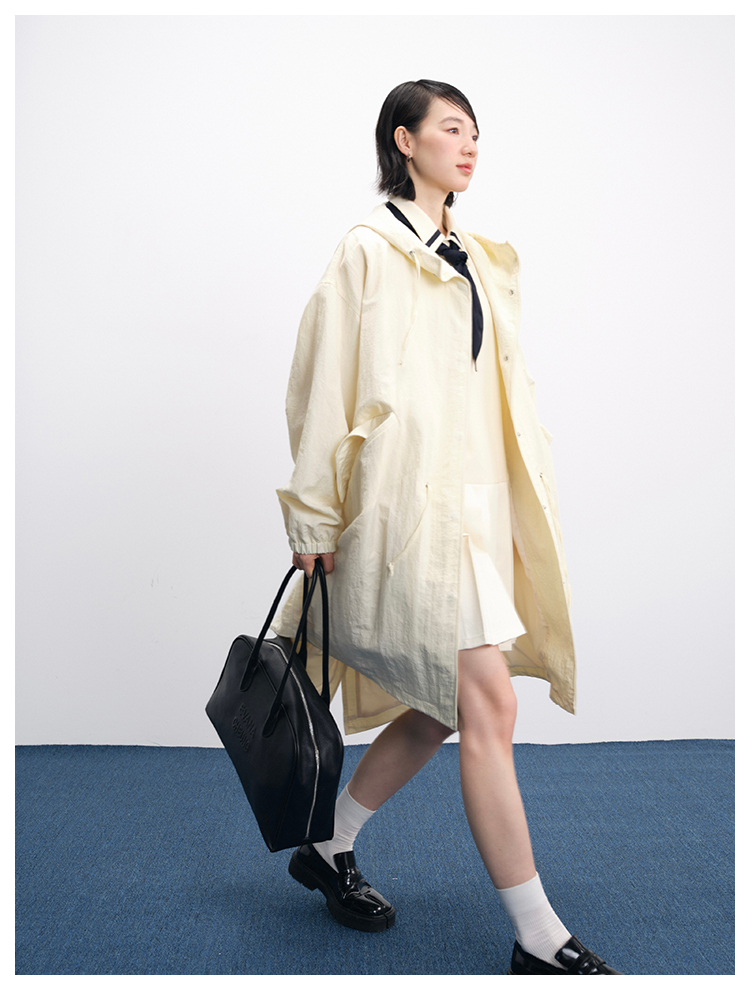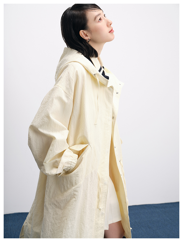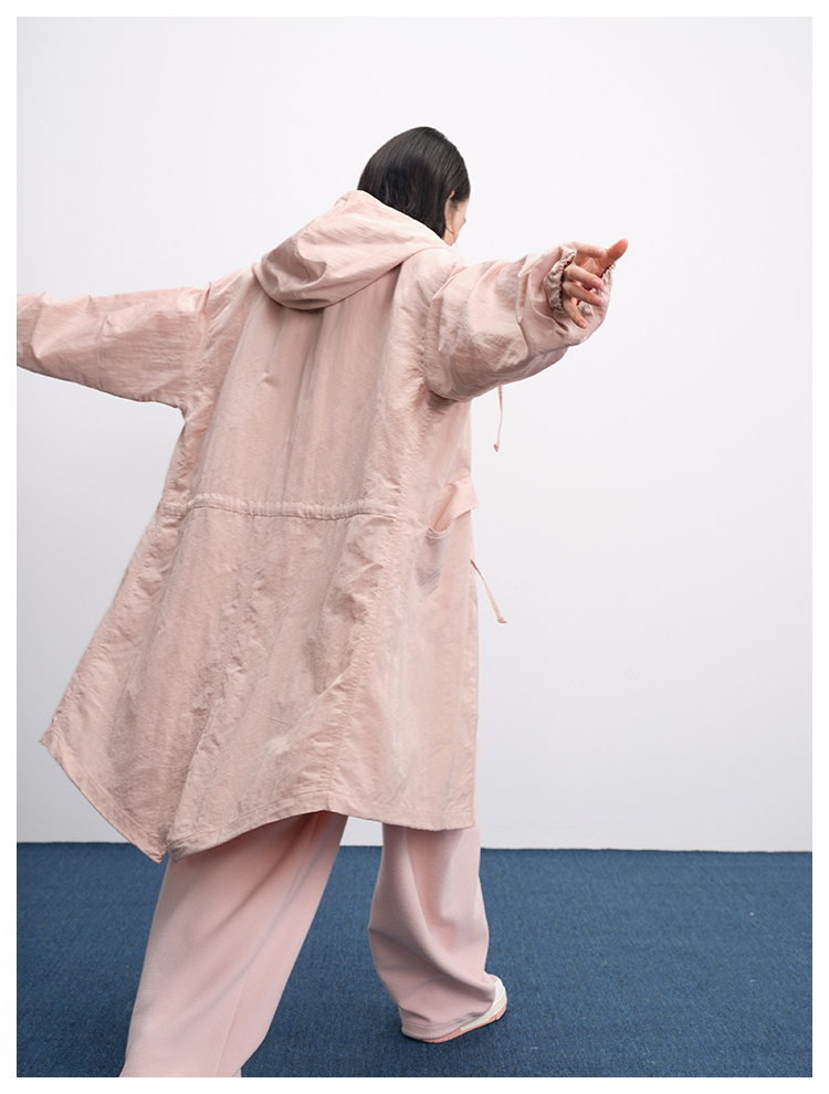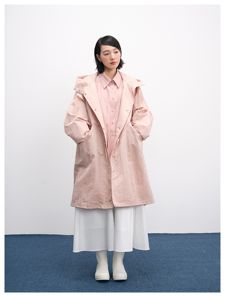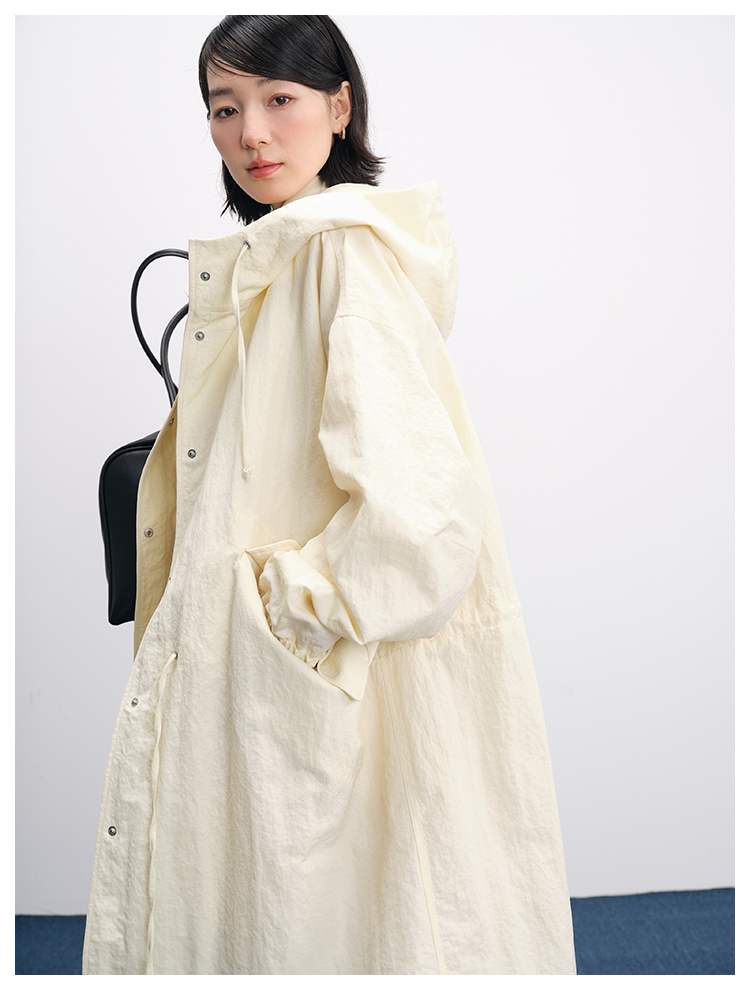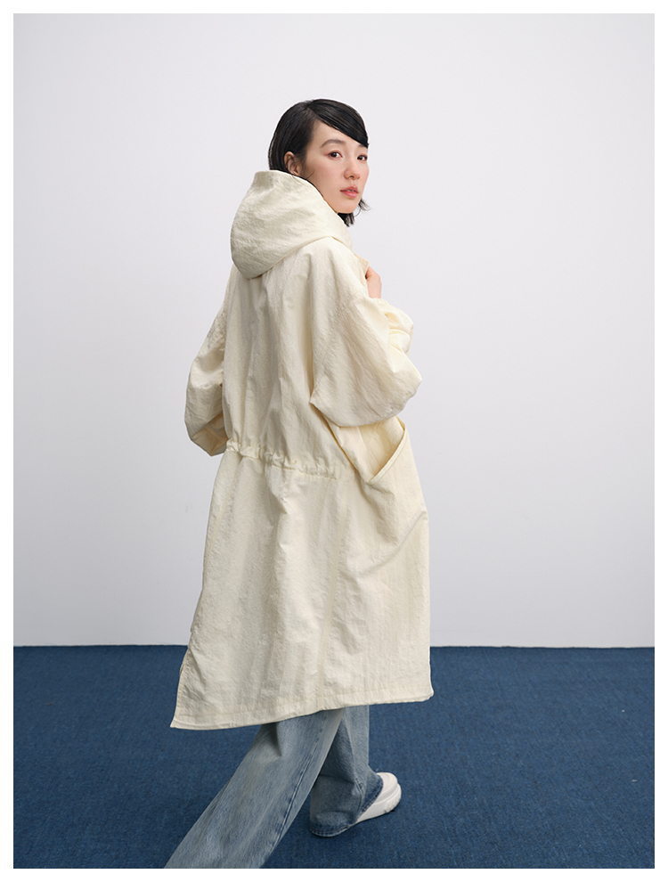 UMILAB【沐风】微皱肌理面料 腰部可调节抽绳中长款廓形风衣C915H
