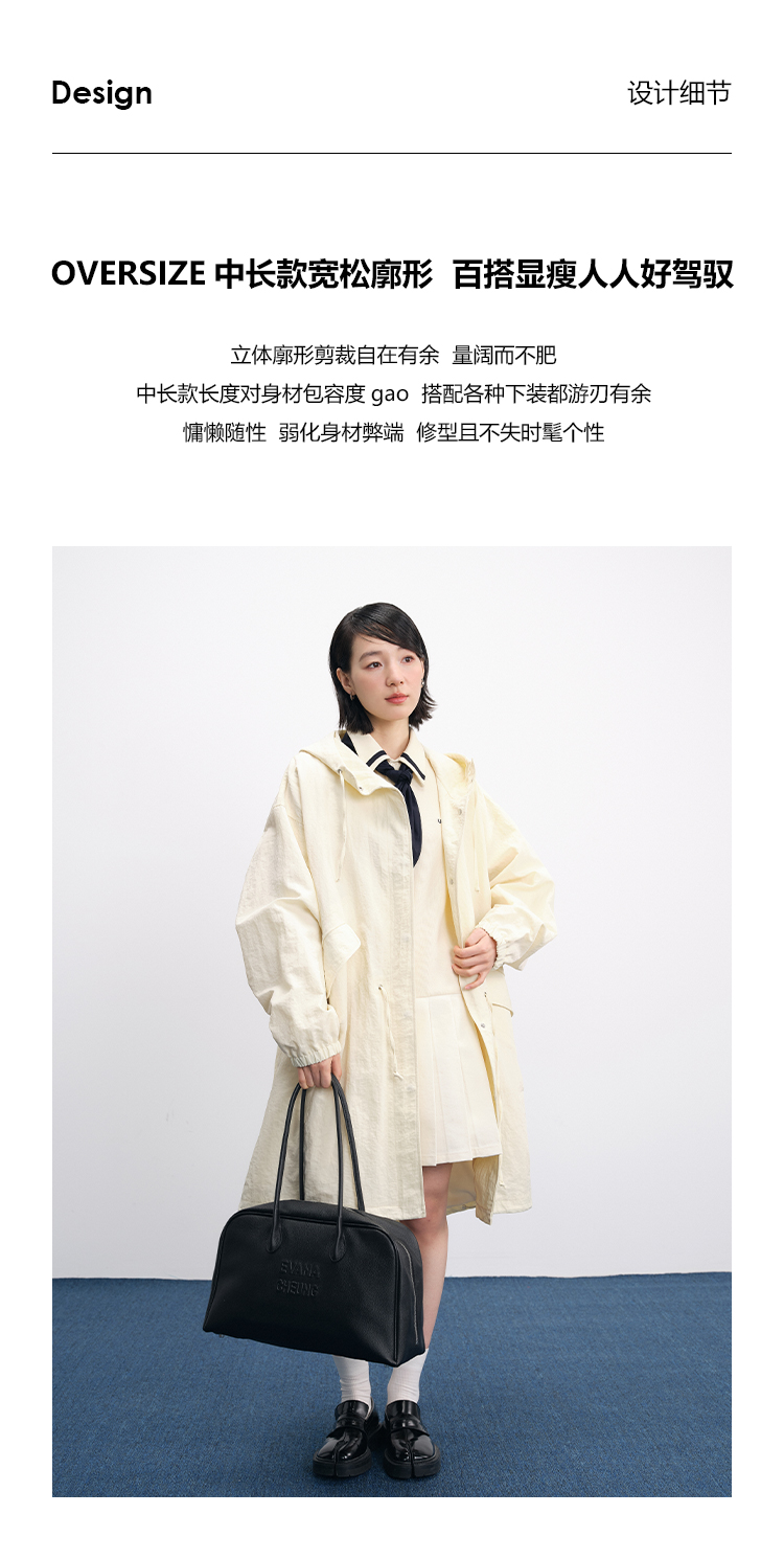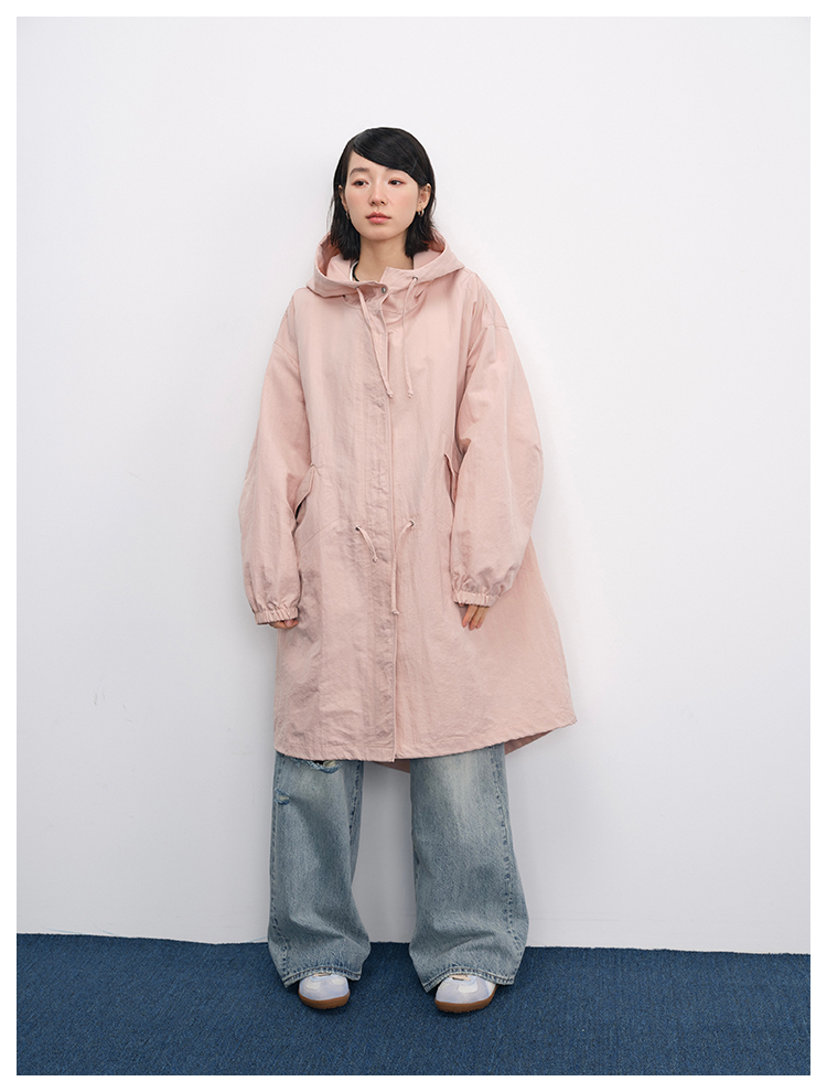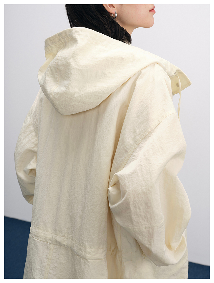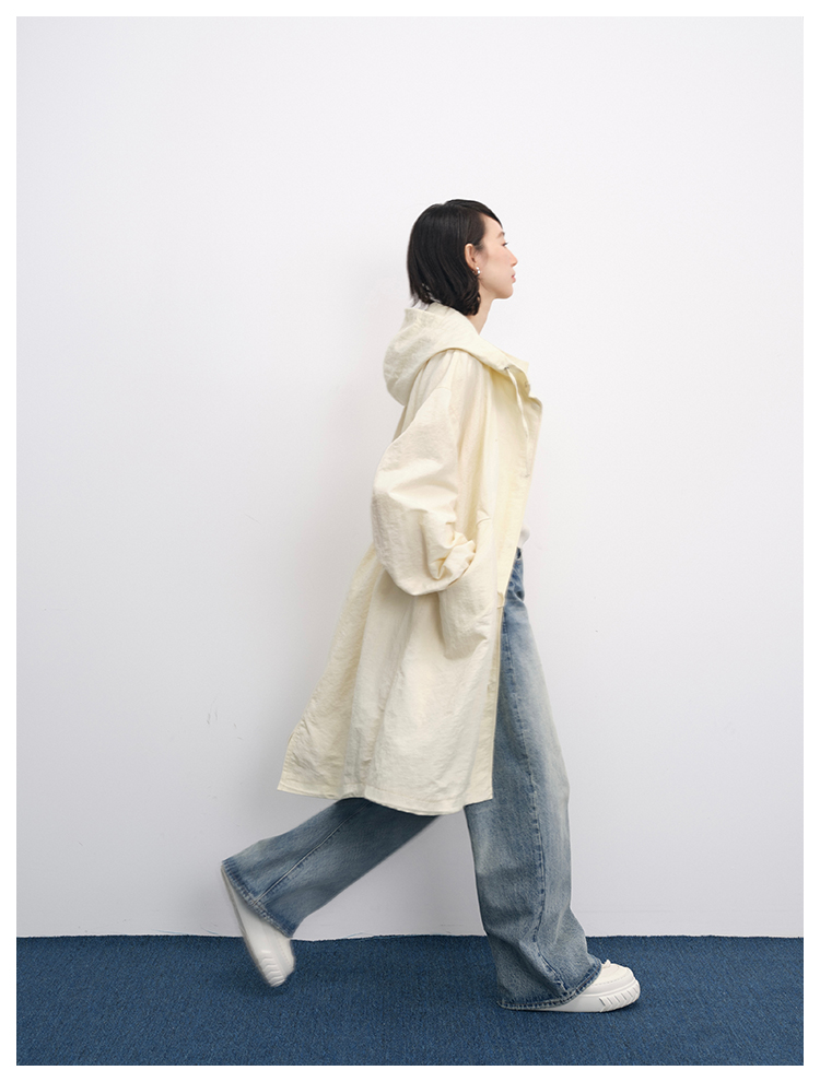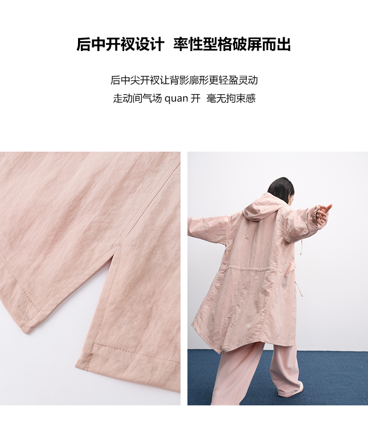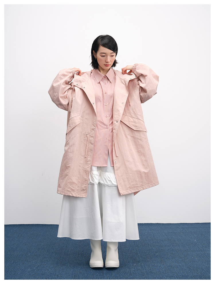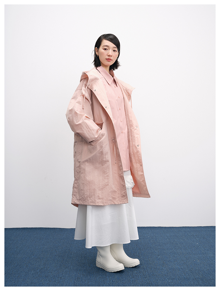 UMILAB【沐风】微皱肌理面料 腰部可调节抽绳中长款廓形风衣C915H