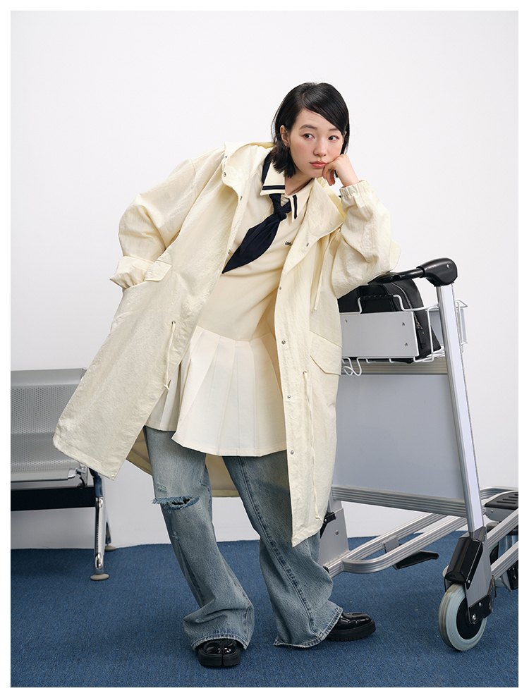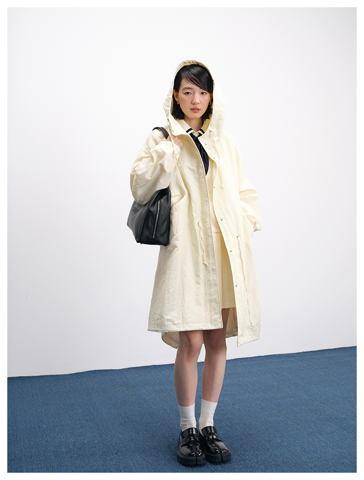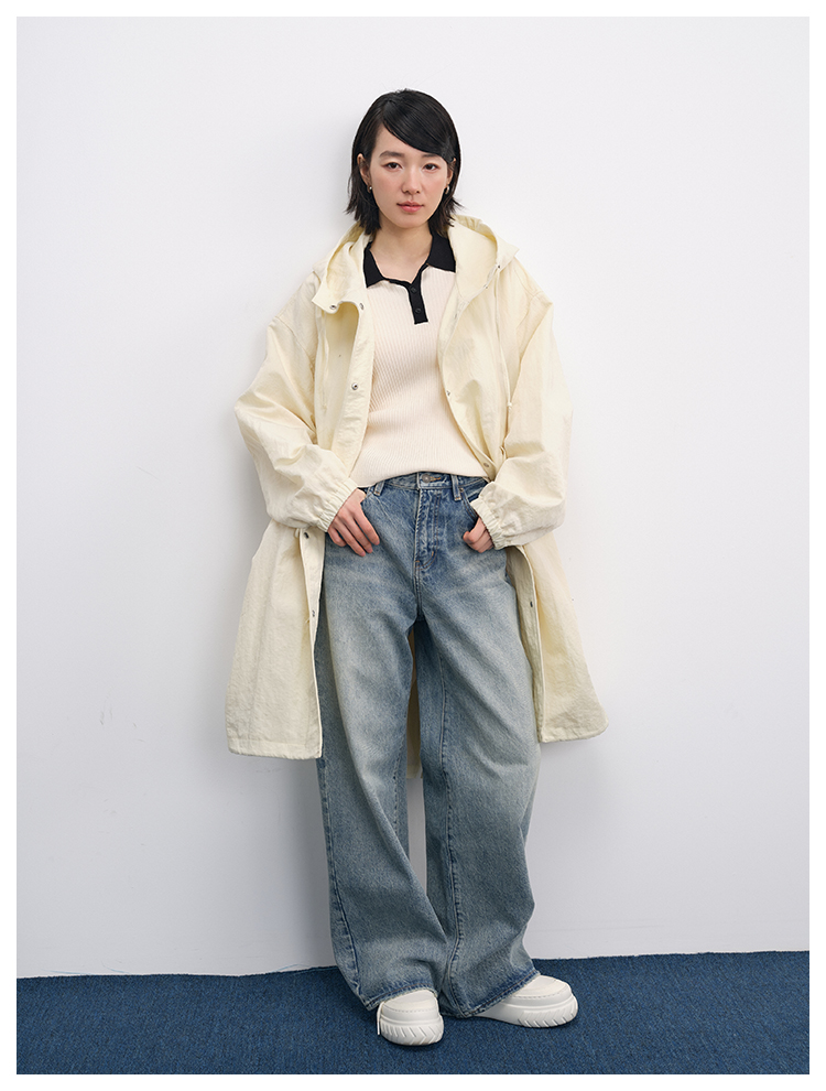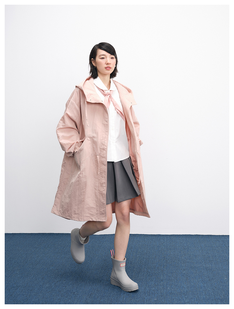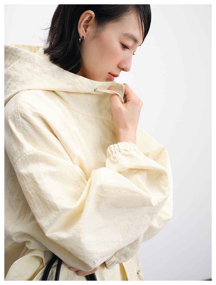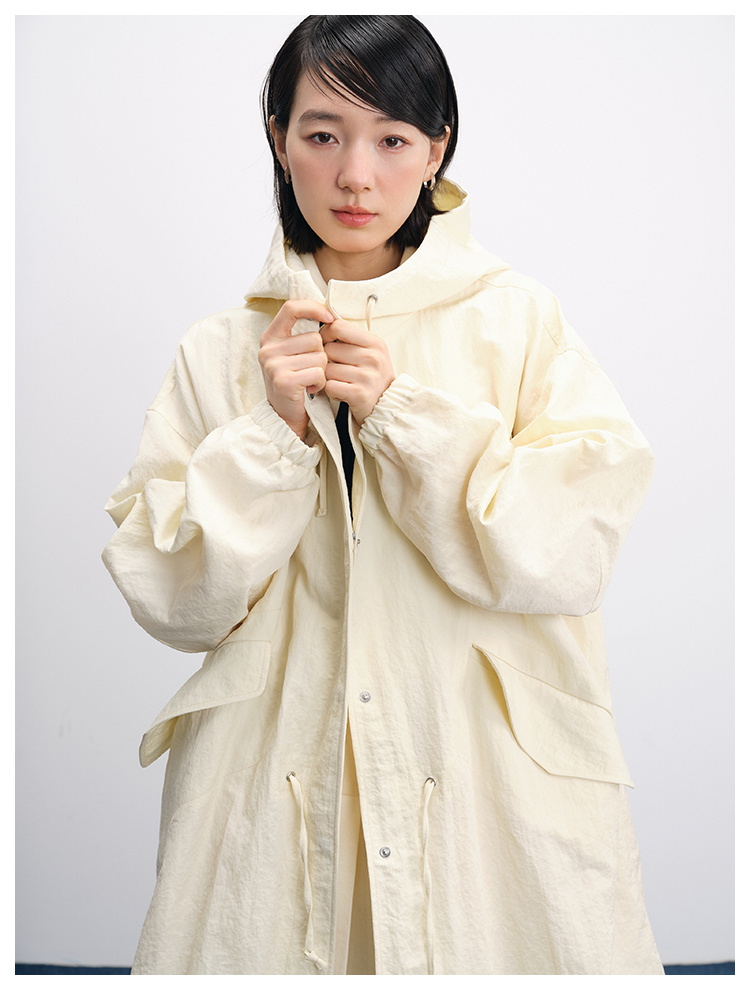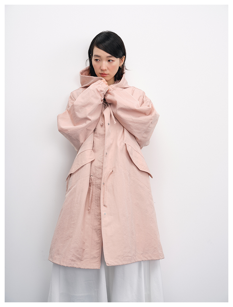 UMILAB【沐风】微皱肌理面料 腰部可调节抽绳中长款廓形风衣C915H