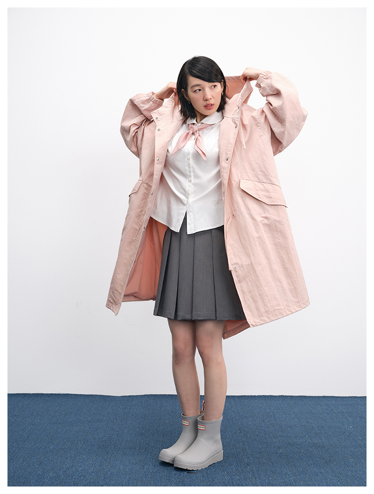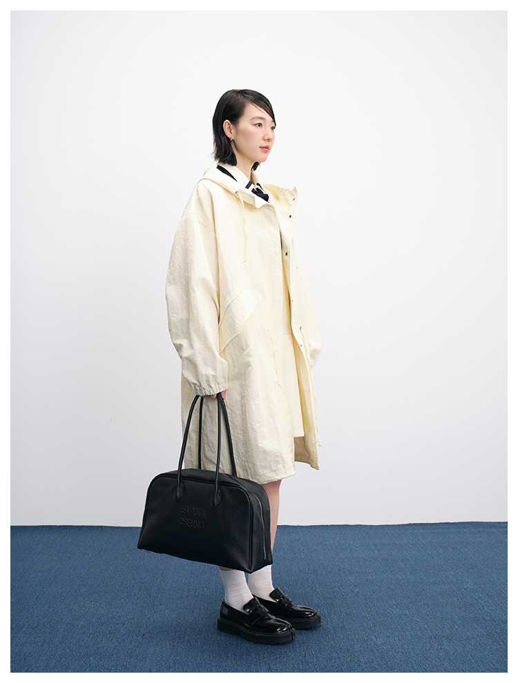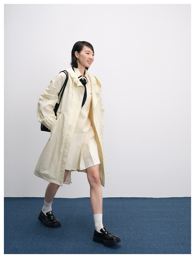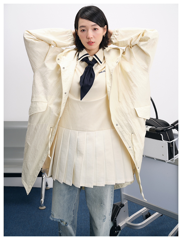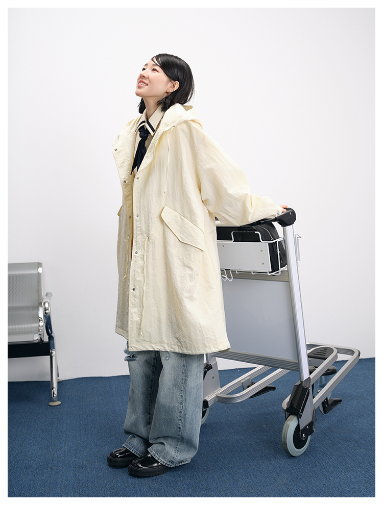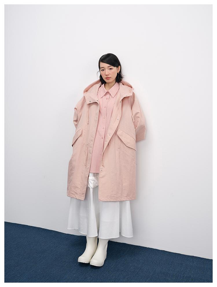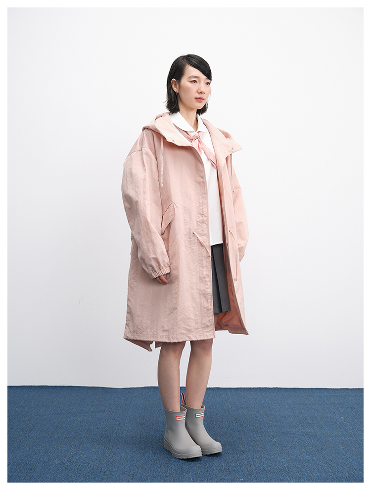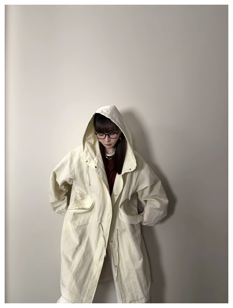 UMILAB【沐风】微皱肌理面料 腰部可调节抽绳中长款廓形风衣C915H