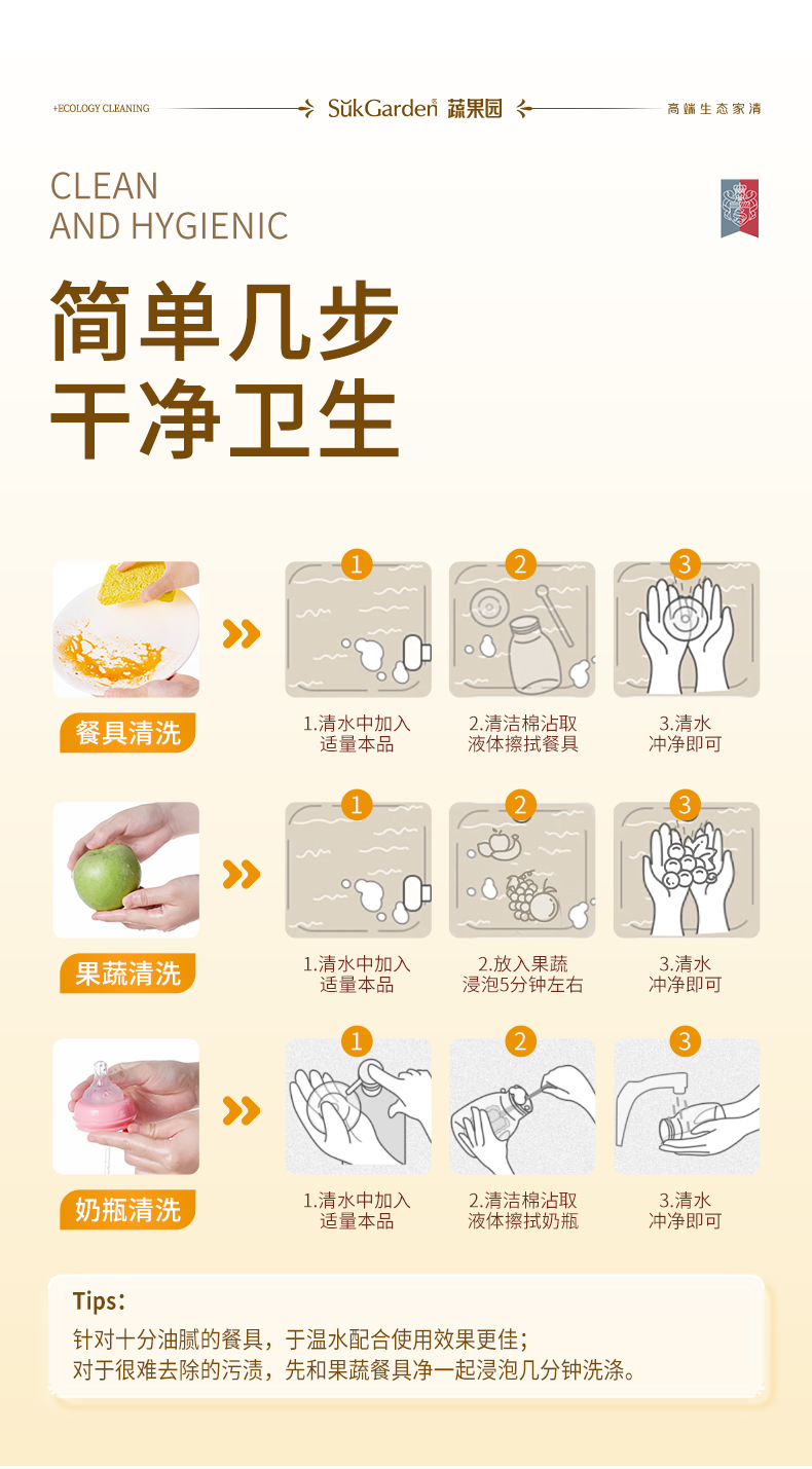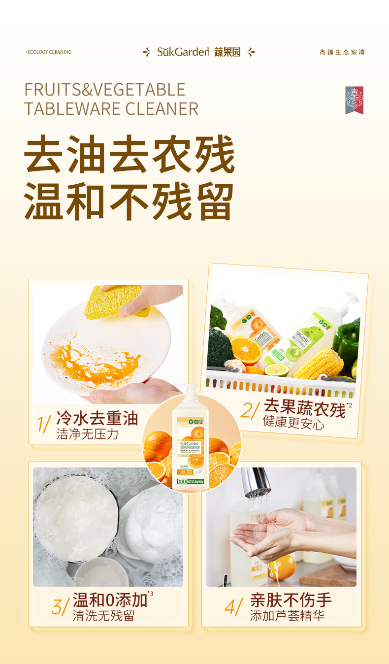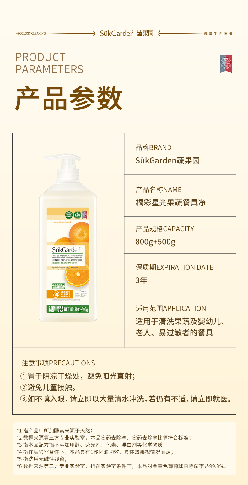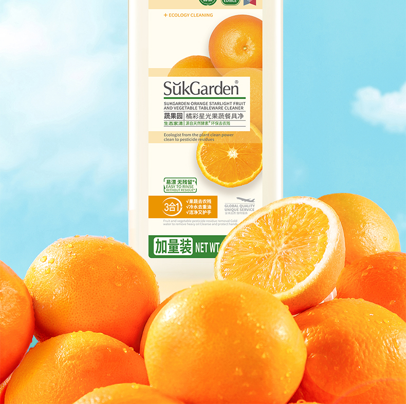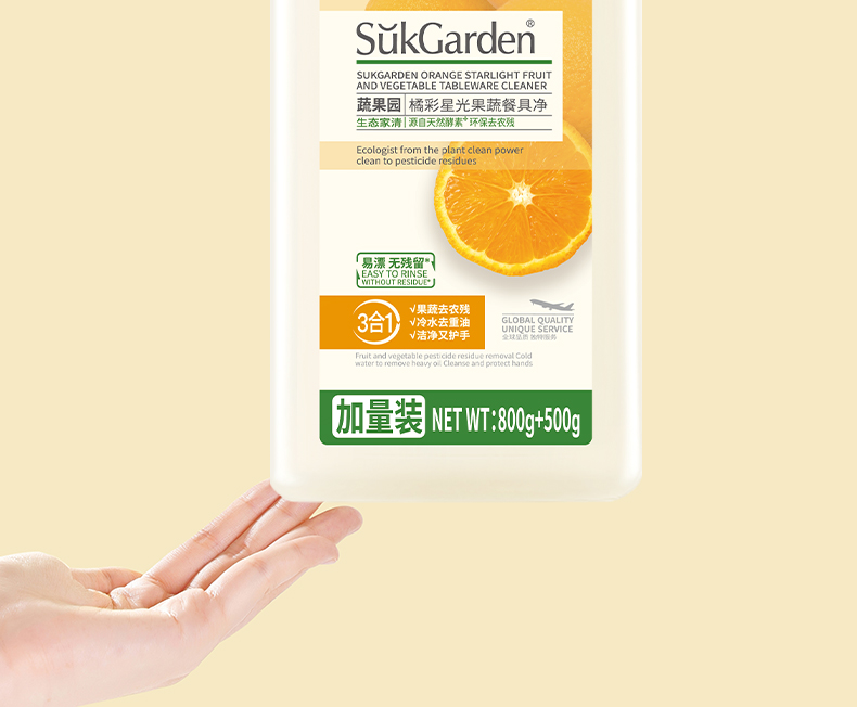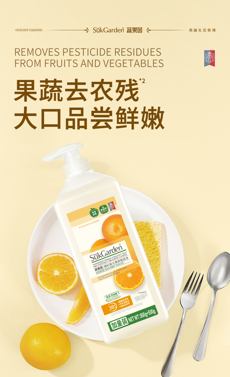SukGarden蔬果园橘彩星光果蔬餐具净 泵装800g+500g(1.3kg)
