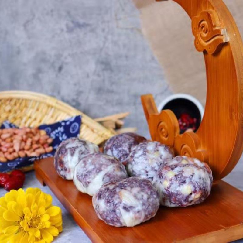 我们定制的这款粘豆包在传统粘豆包的基础上,馅料和面皮上都下足了功夫!精选糯米粉、面粉、紫糯米、大枣、玉米粒、花豆、红豆、花生米等八种食材,严谨配比,不含任何添加剂,用传统手工制作保证了粘豆包的品质和正宗味道。