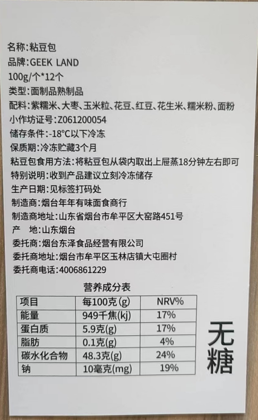 【配料】糯米粉、面粉、紫糯米、大枣、玉米粒、花豆、红豆、花生米(白砂糖)