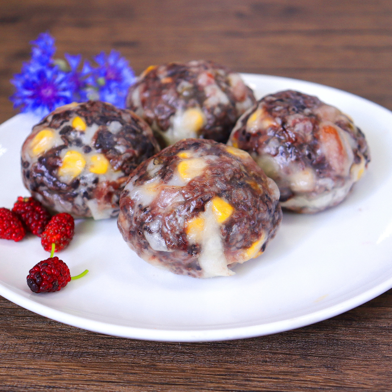 圆滚滚的可爱外形,弹糯透薄的面皮,饱满的馅料,色泽晶亮的颜色,软糯Q弹的质感,绵密香甜的味道,醇厚丰富的杂粮豆香,让人回味无穷。