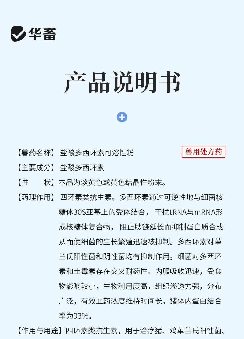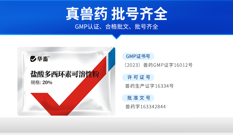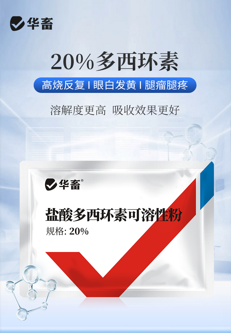 20%盐酸多西环素可溶性粉 溶解度更高 强力霉素吸收效果更好 鸭鹅鸡猪呼吸道