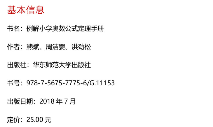 例解小学奥数公式定理手册 熊斌 视频讲解双色版