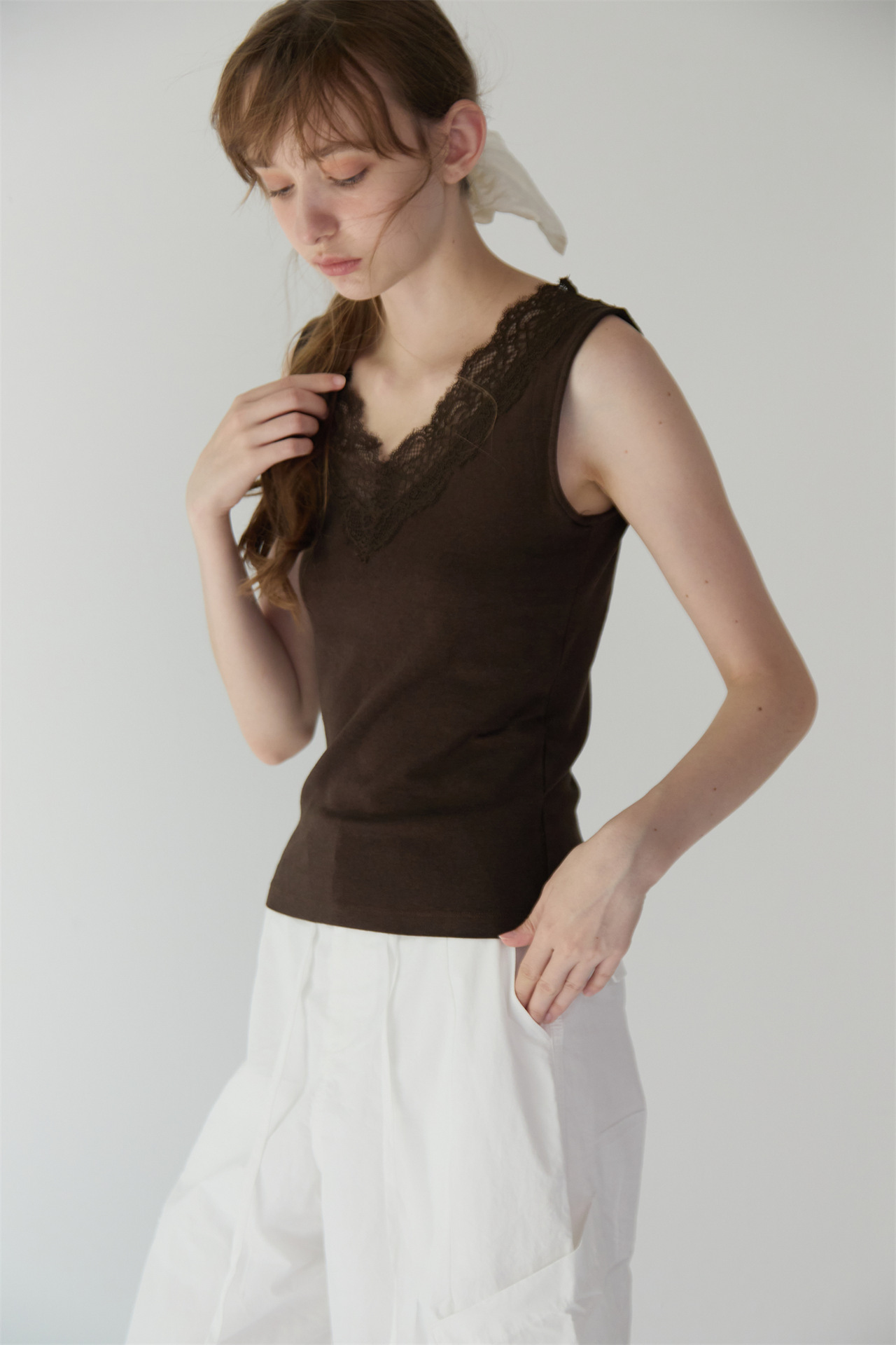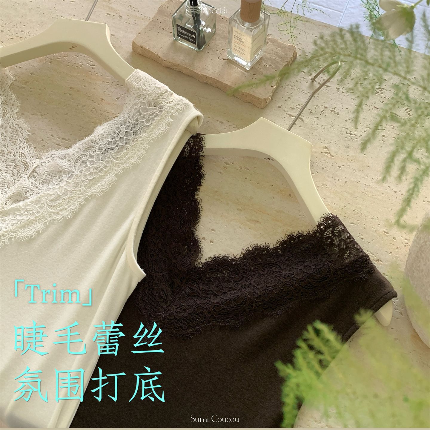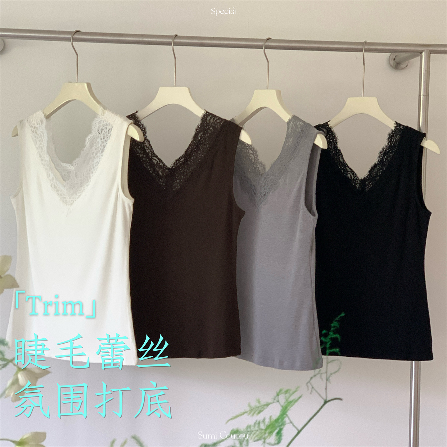 氛围感打底~睫毛吊带背心女内搭贴身蕾丝修身打底领性感上衣v领显瘦性感