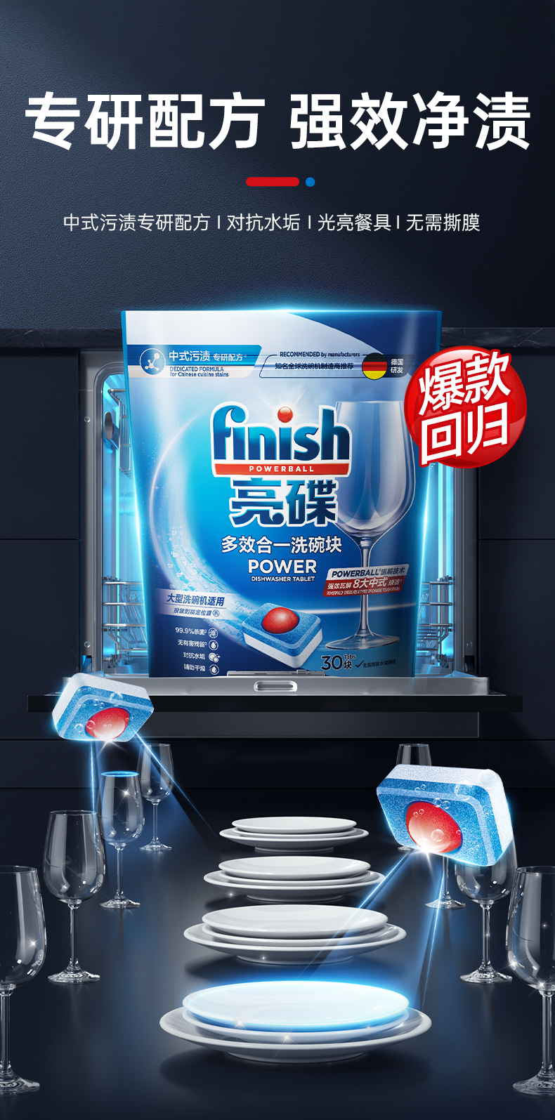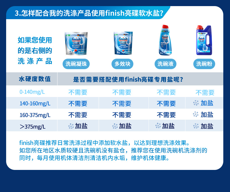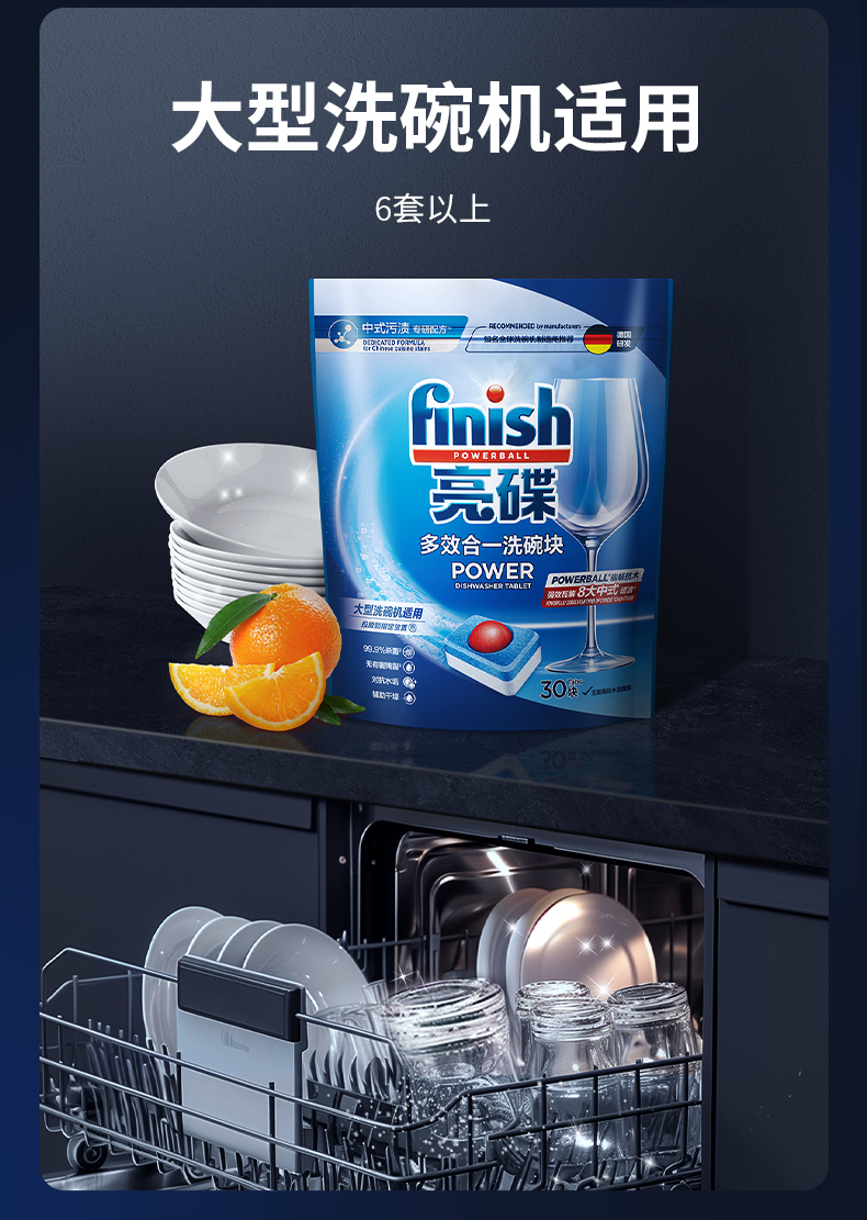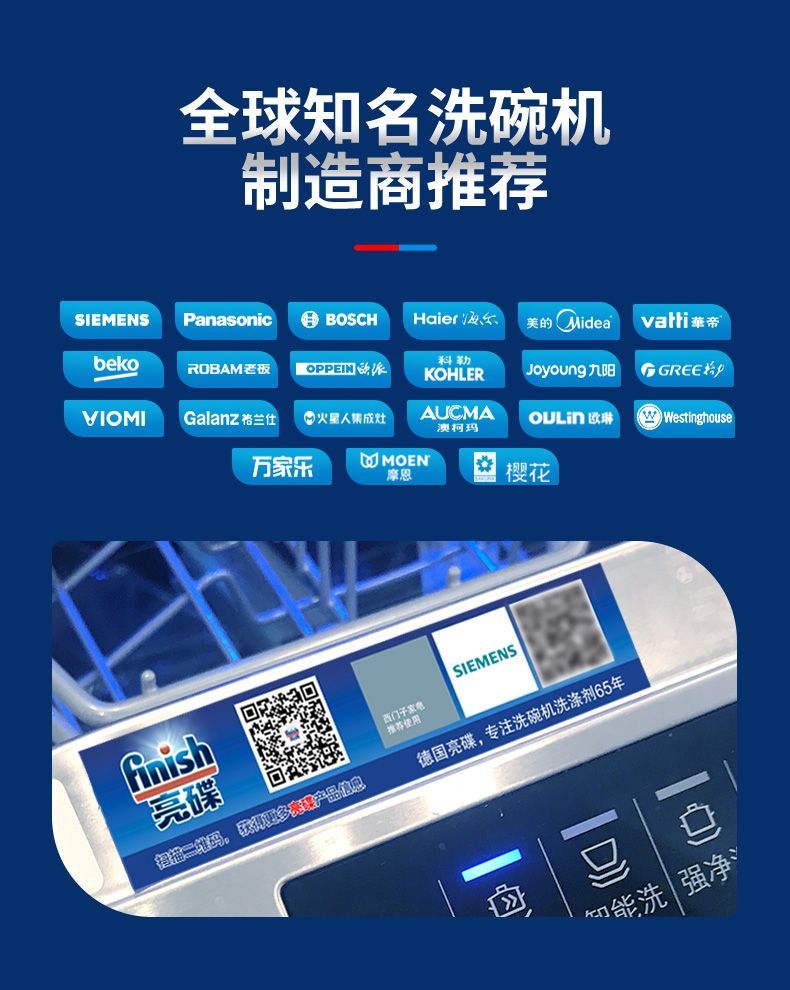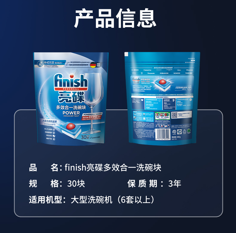 finish亮碟 大多效、小多效洗碗机专用洗涤块含洗碗粉盐 有效去除油污、蛋白渍、焦渍等多种污渍