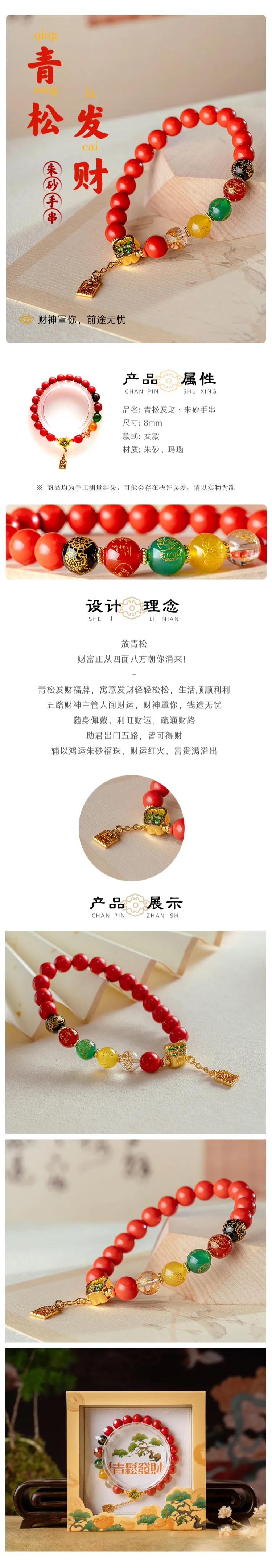 【宫里送福】五路财神·青松发财 朱砂手串