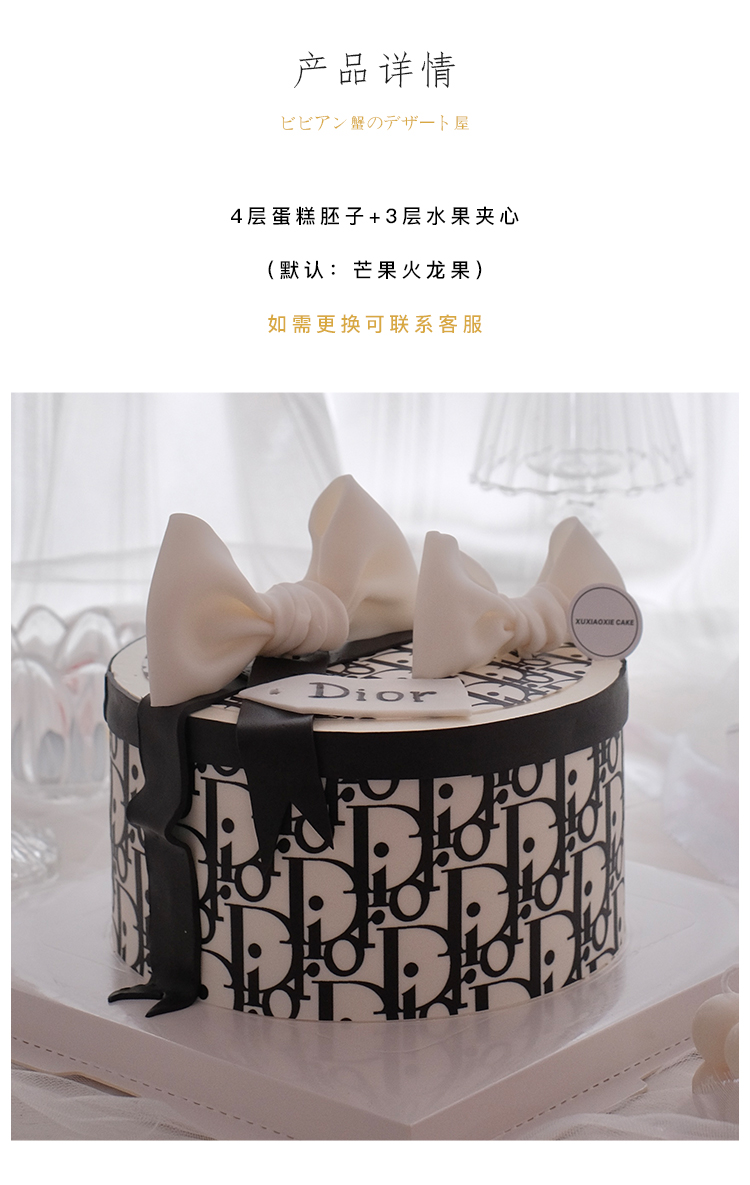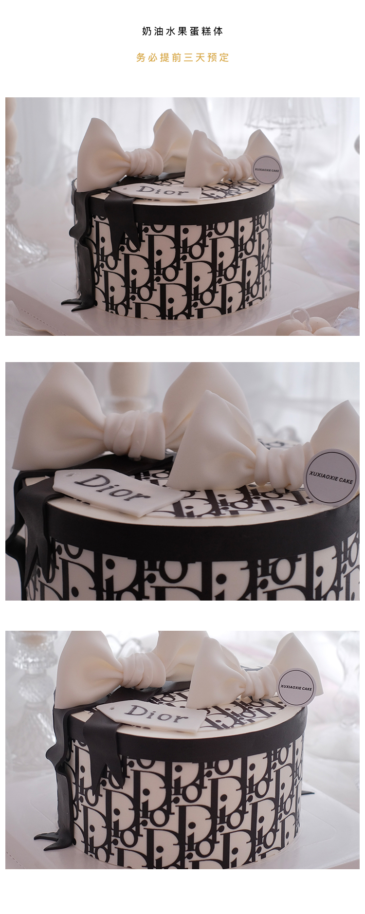 轻奢系列 | DIOR半翻糖蛋糕(奶油水果蛋糕体,务必提前三天预定)