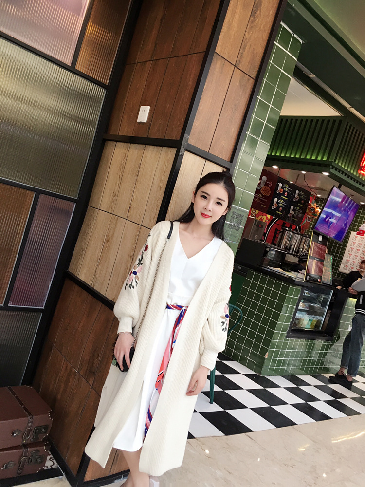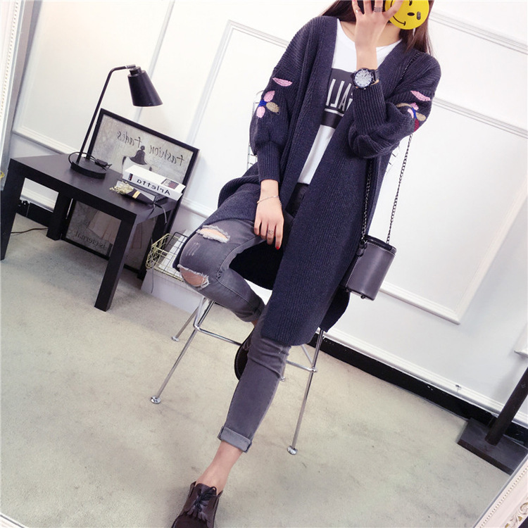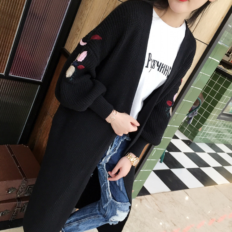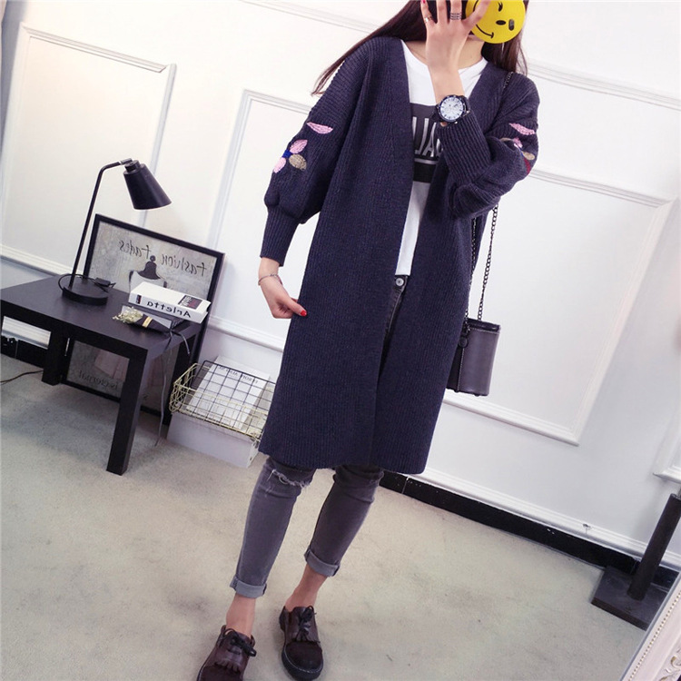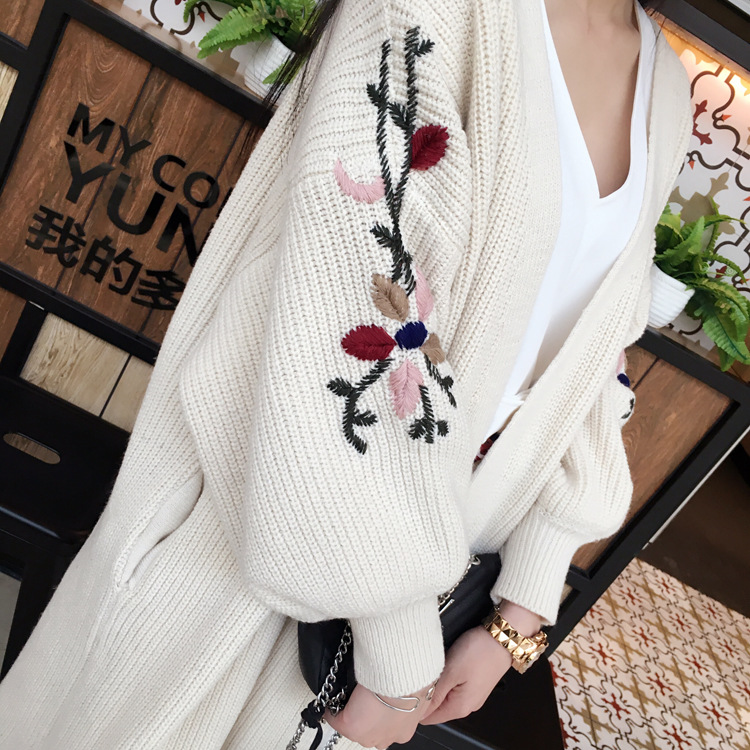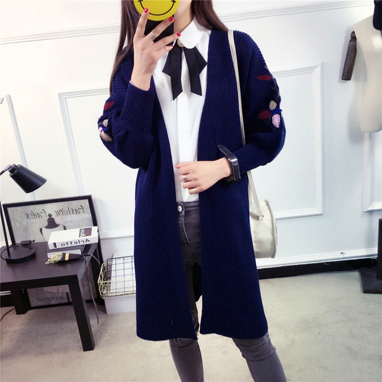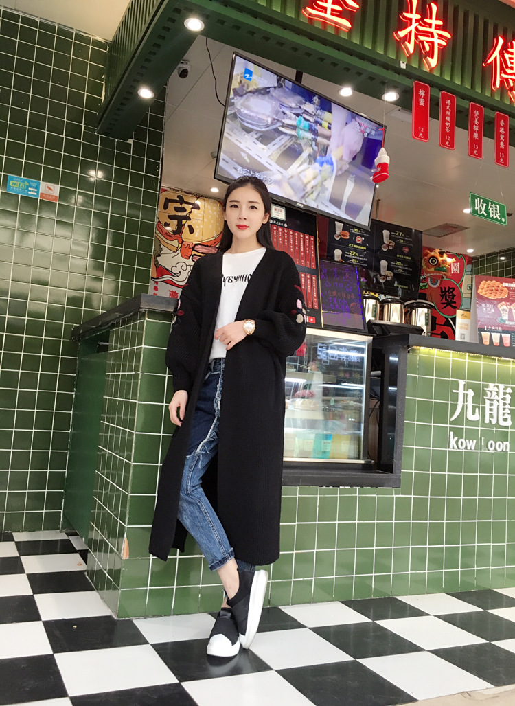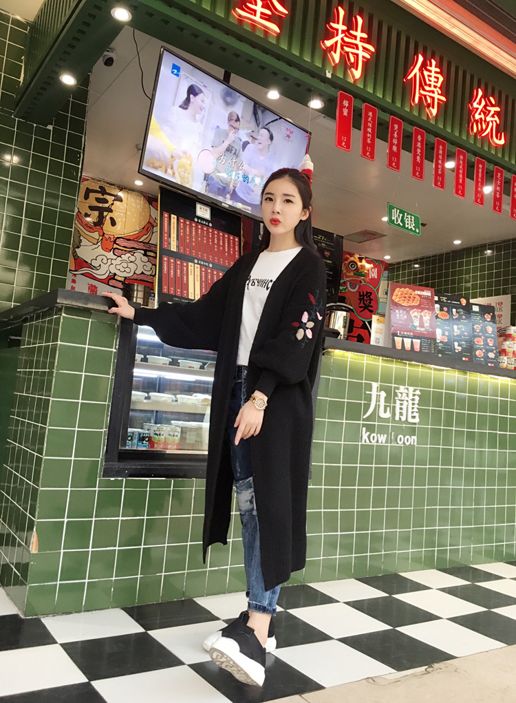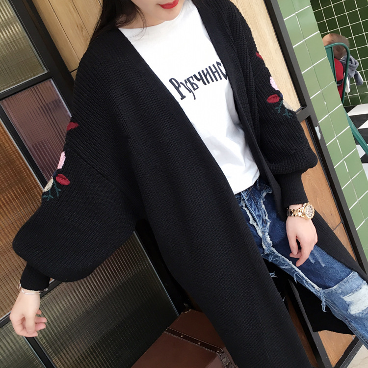 【服饰鞋包】春装新款灯笼袖女针织衫长款韩版大码刺绣开衫外套宽松长袖