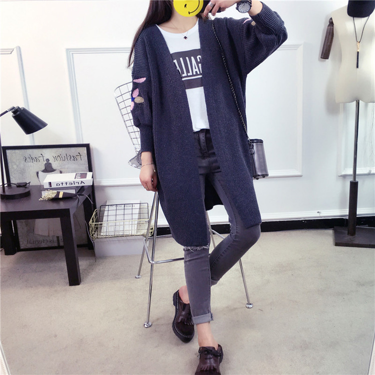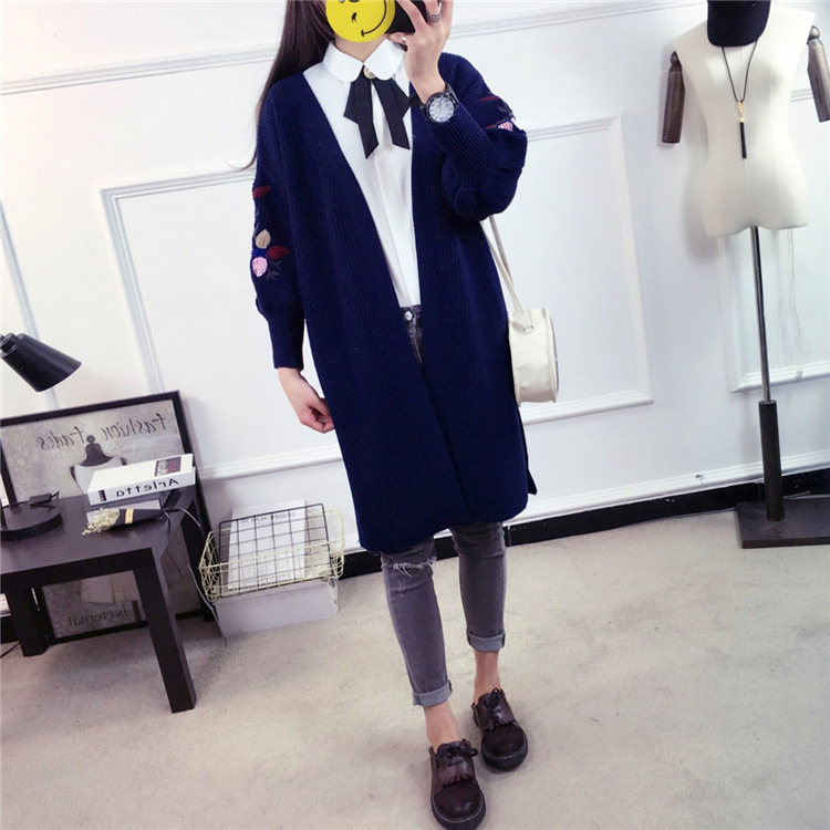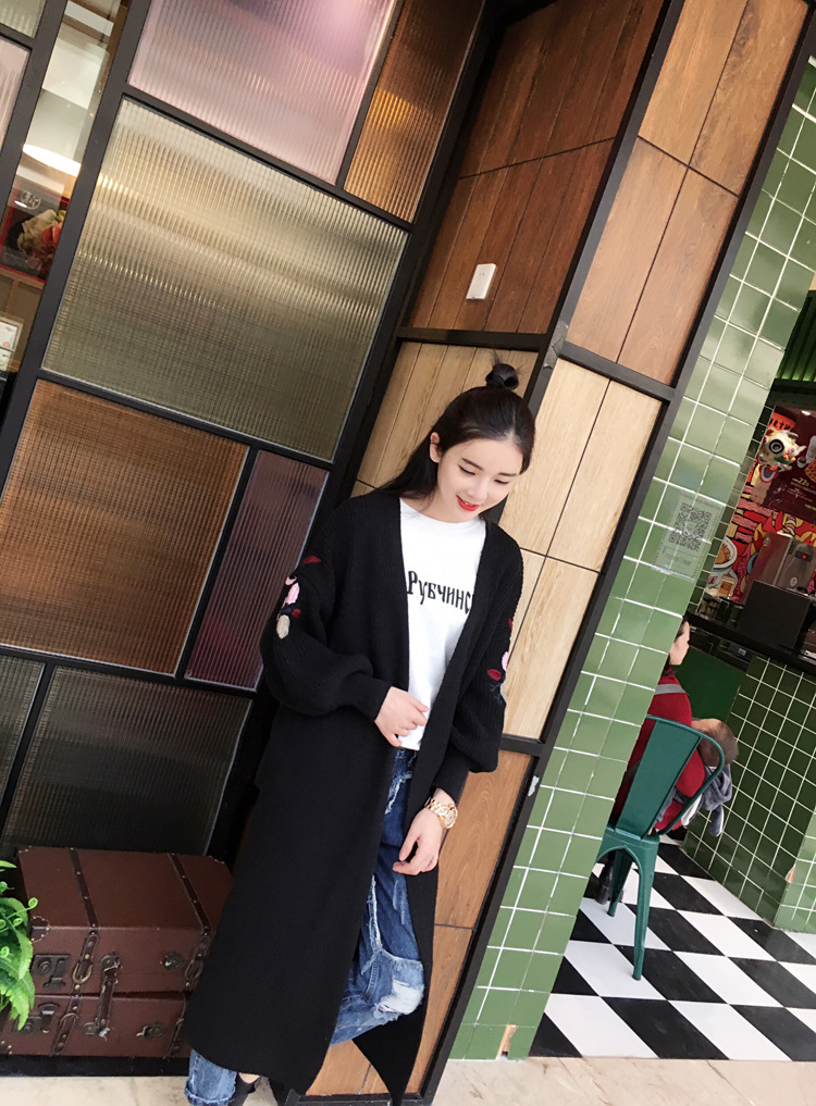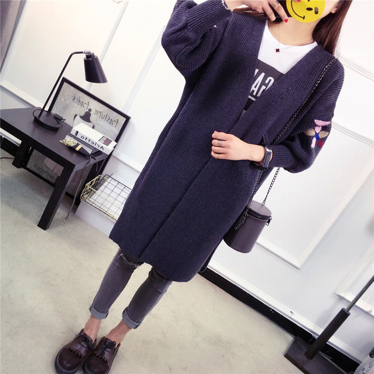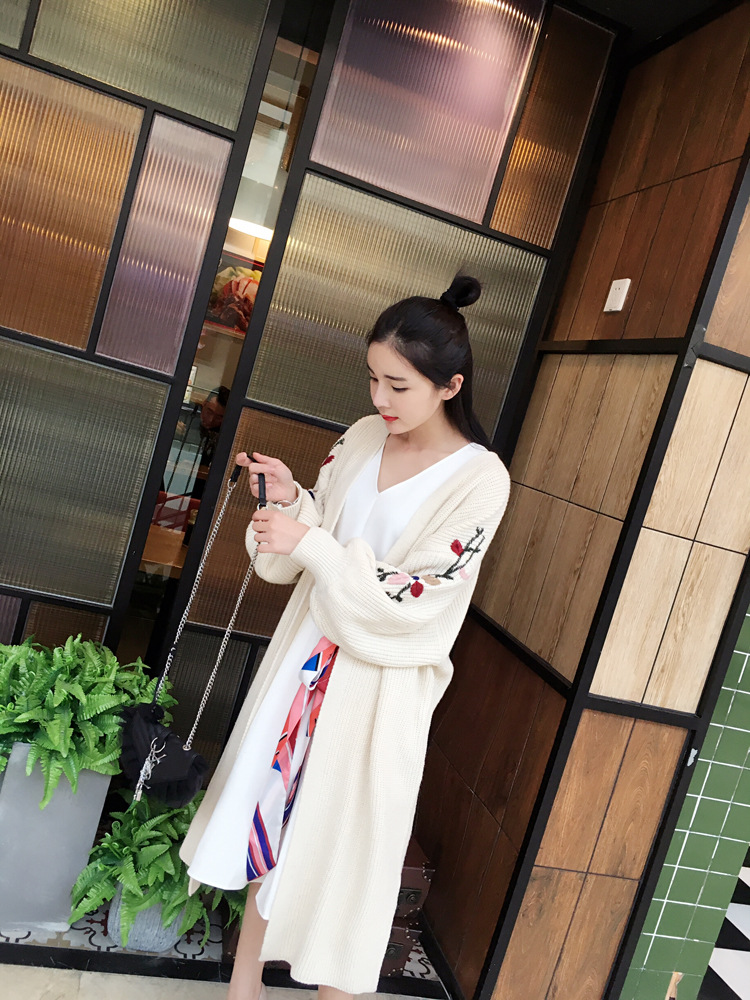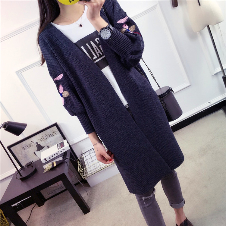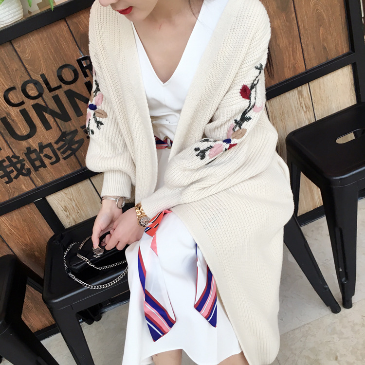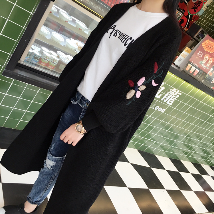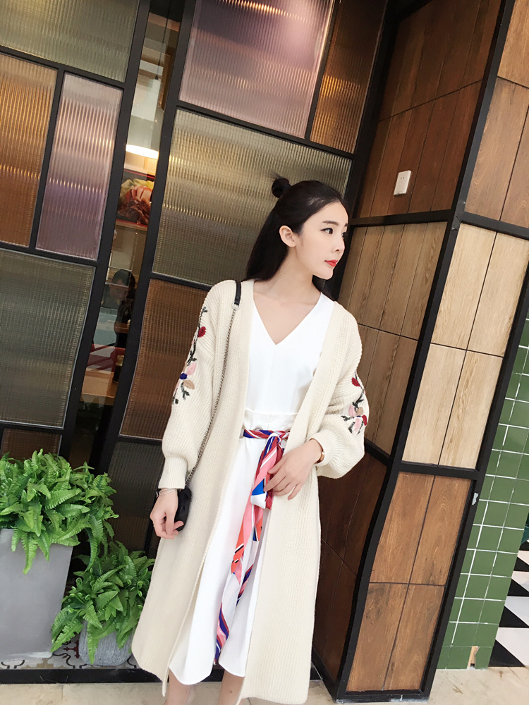 【服饰鞋包】春装新款灯笼袖女针织衫长款韩版大码刺绣开衫外套宽松长袖