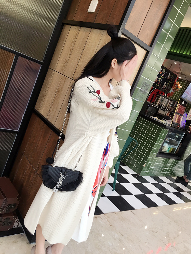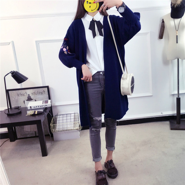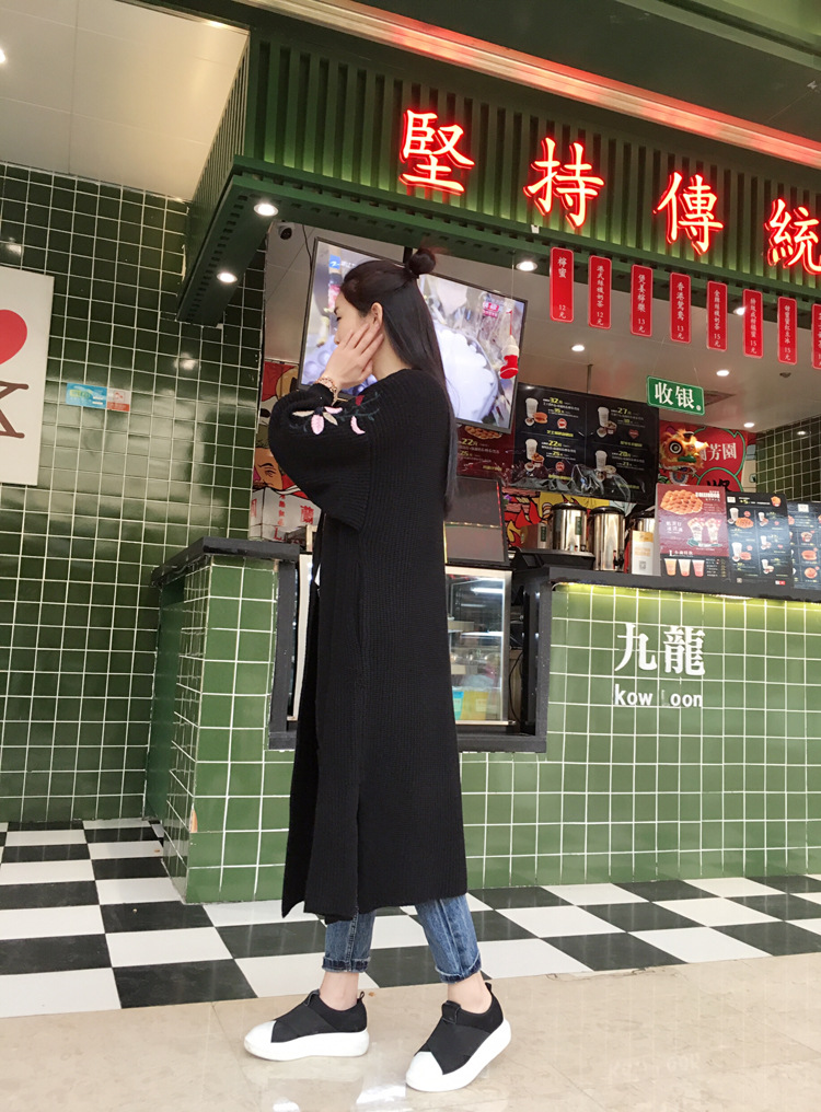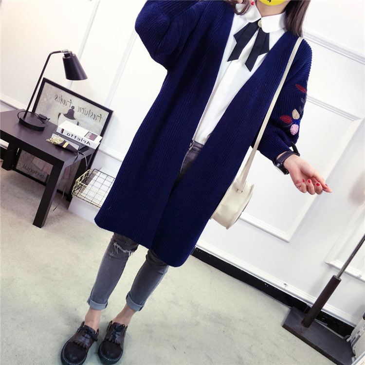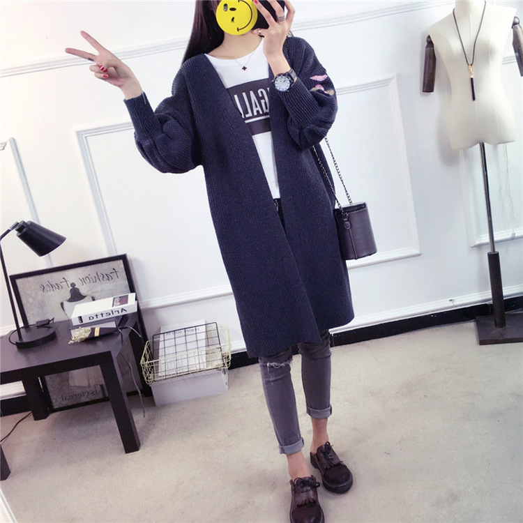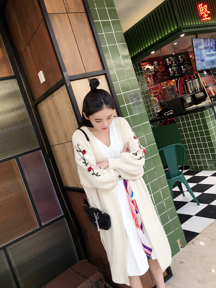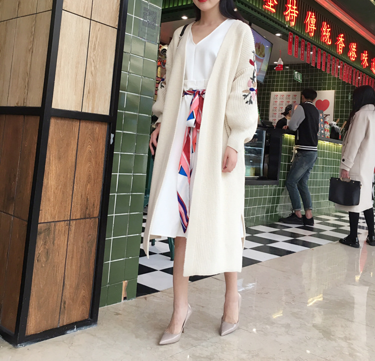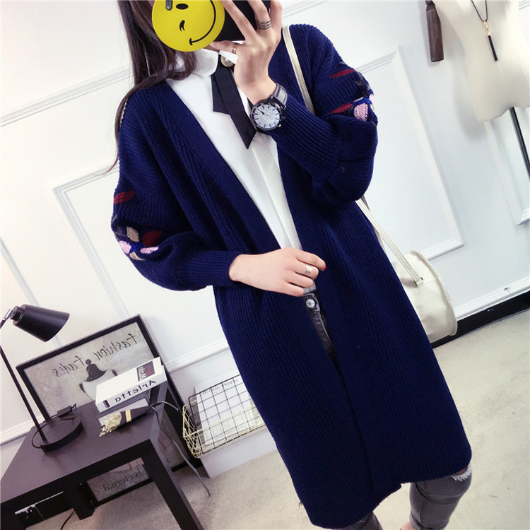 【服饰鞋包】春装新款灯笼袖女针织衫长款韩版大码刺绣开衫外套宽松长袖