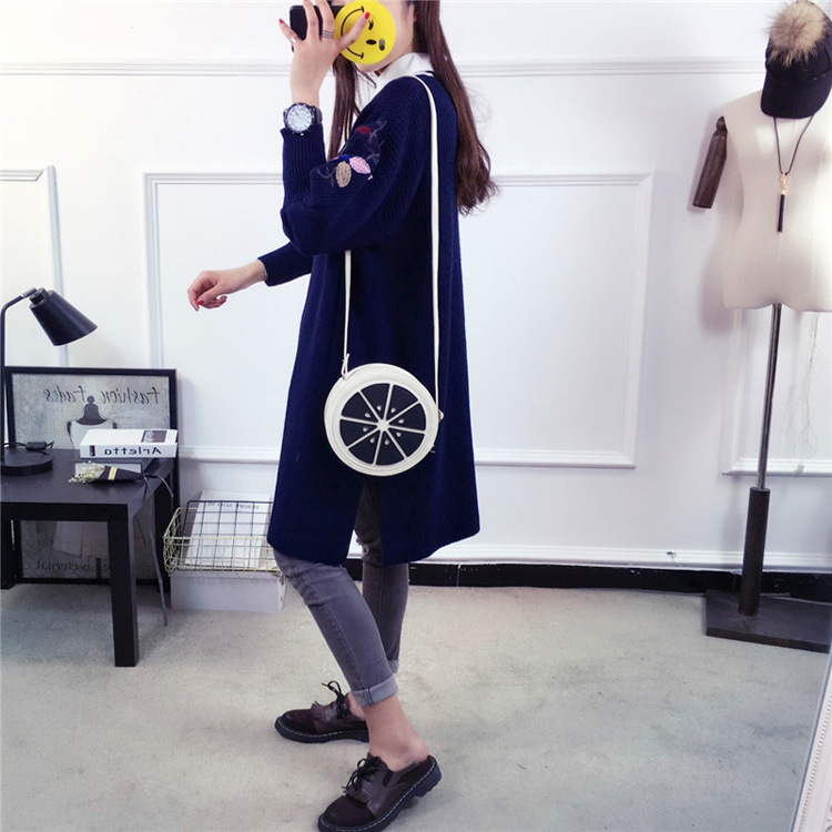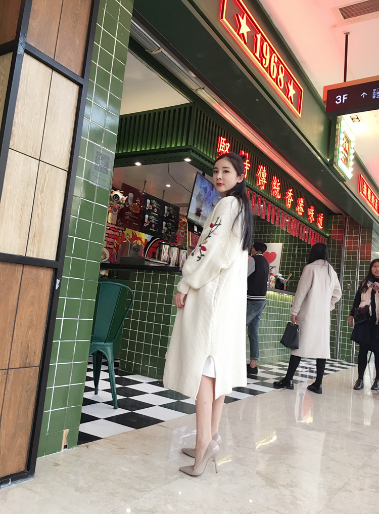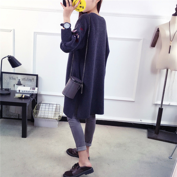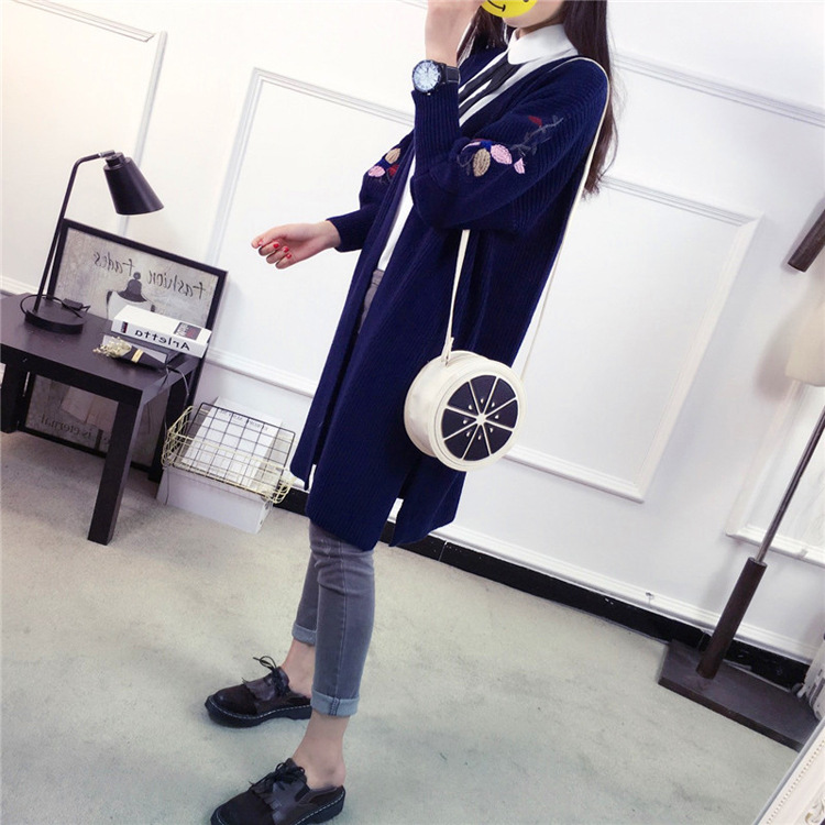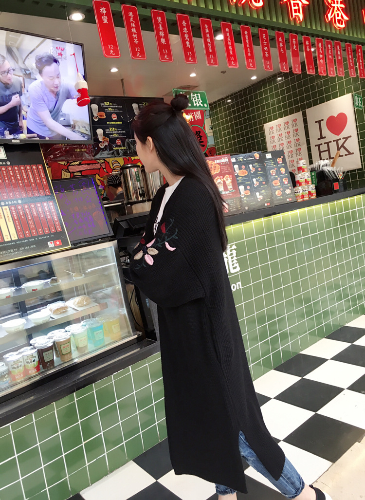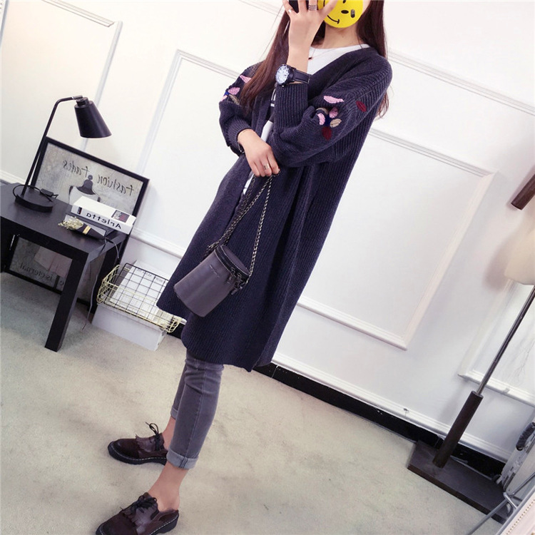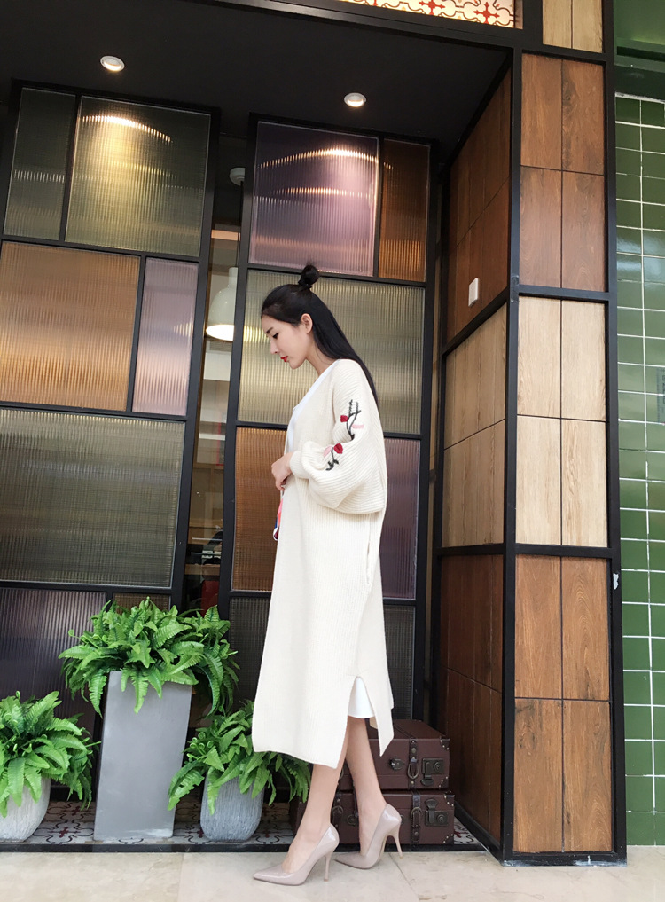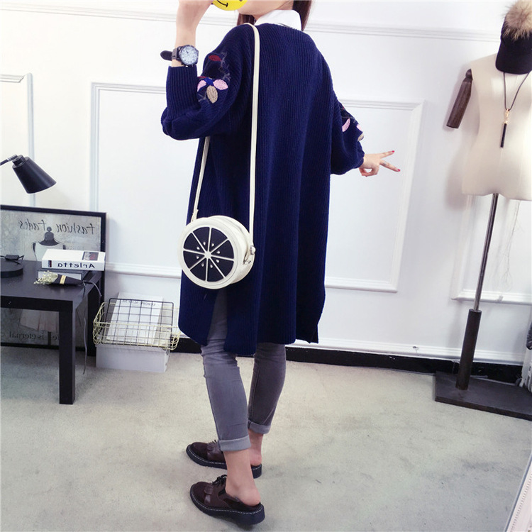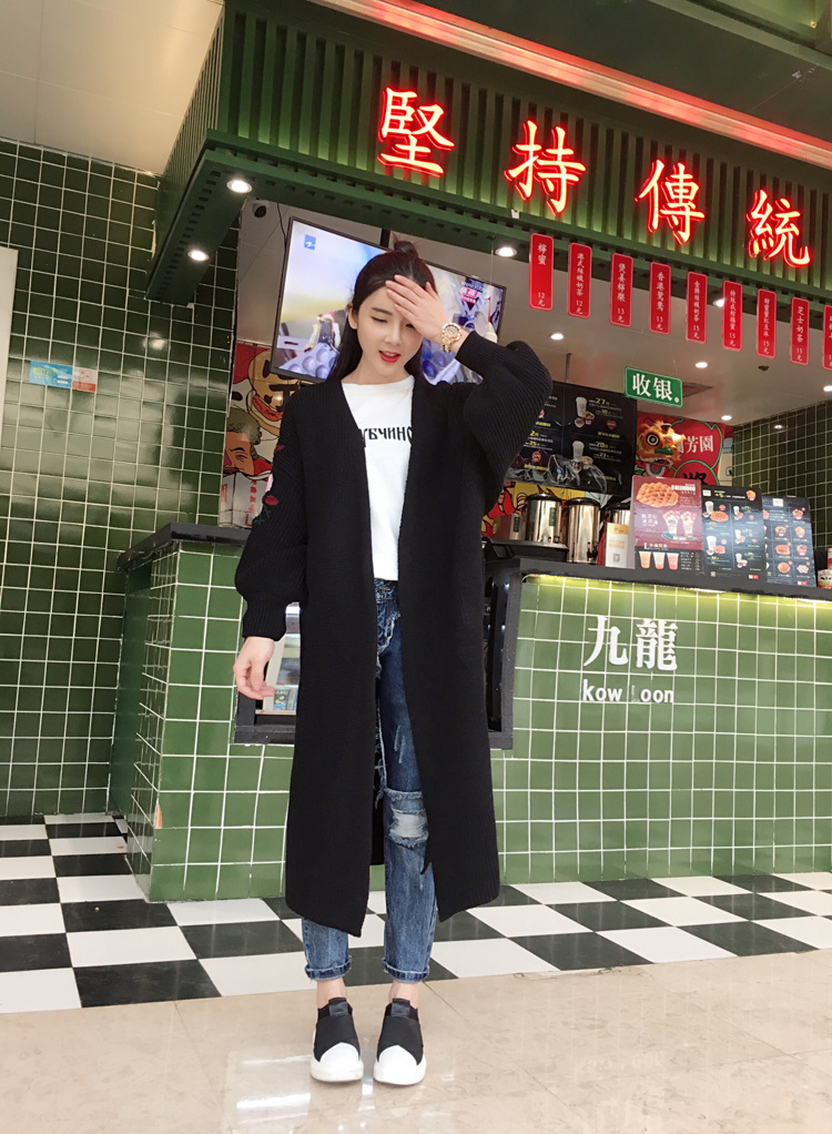 【服饰鞋包】春装新款灯笼袖女针织衫长款韩版大码刺绣开衫外套宽松长袖