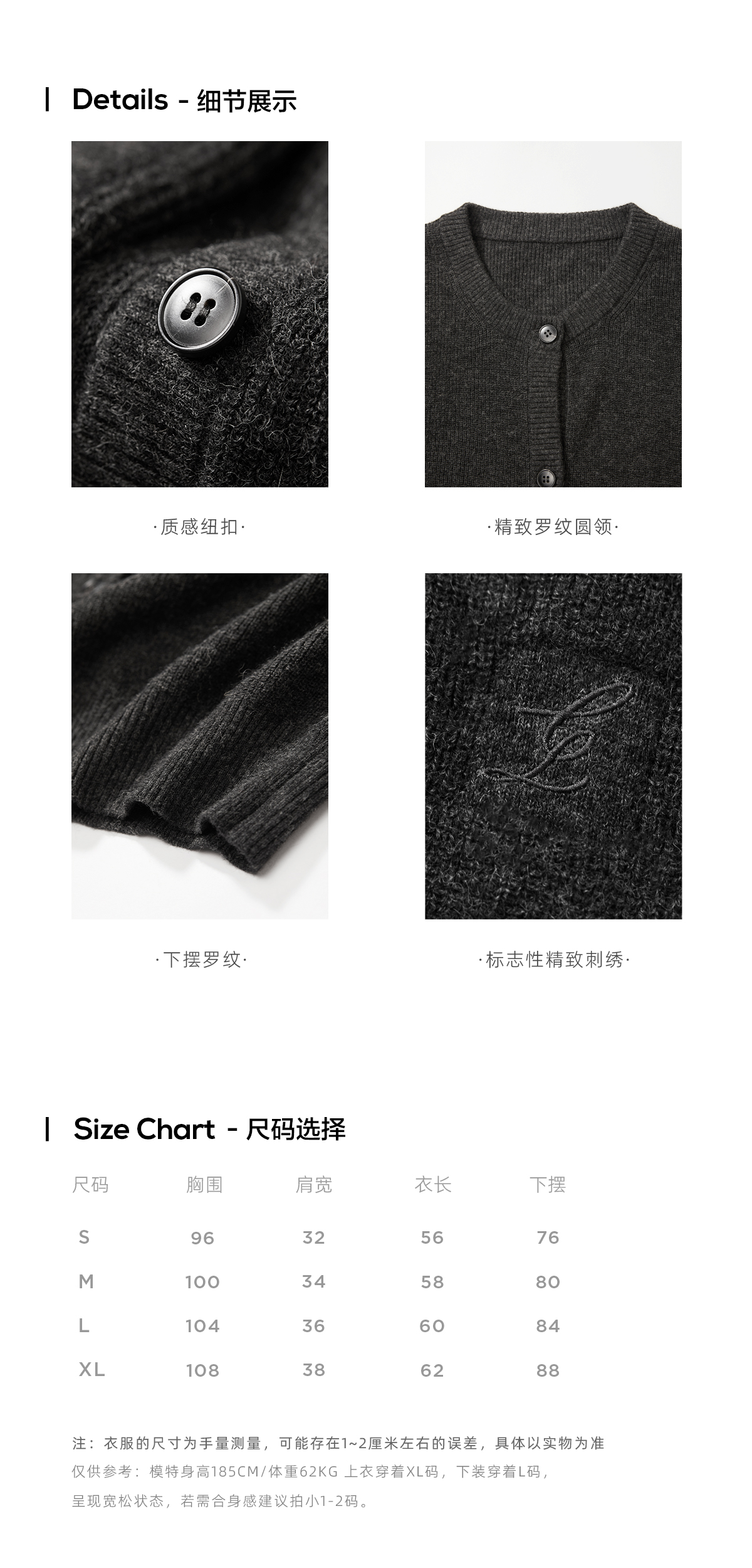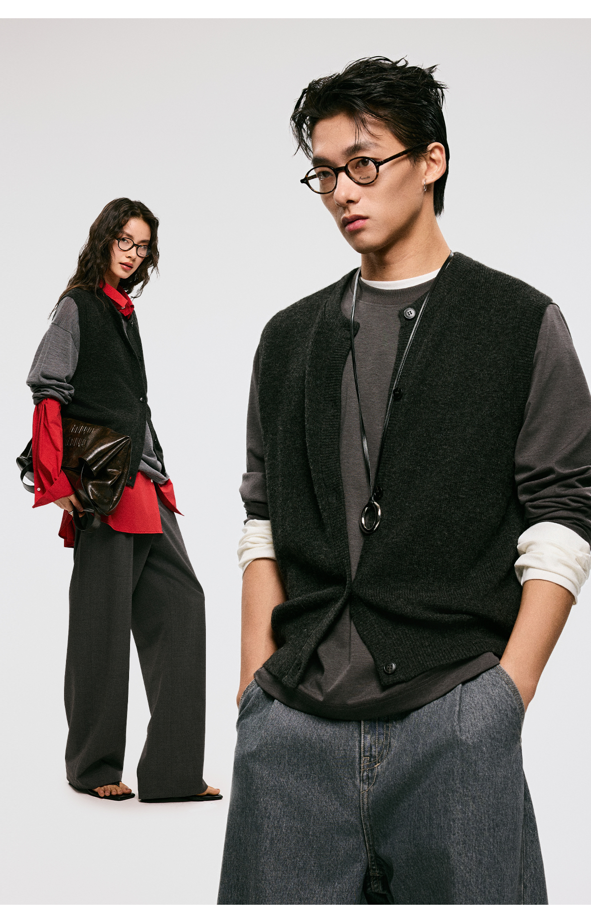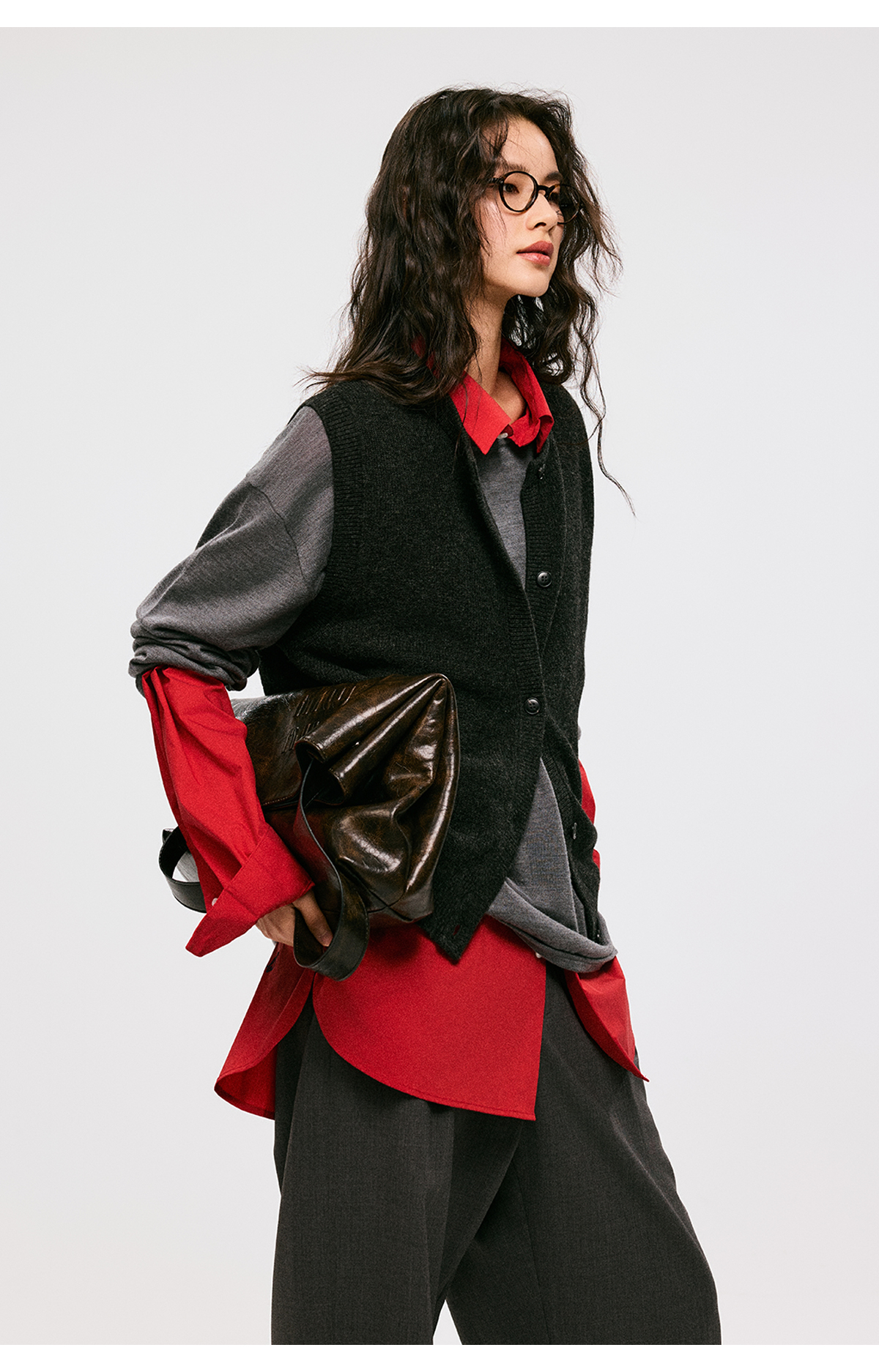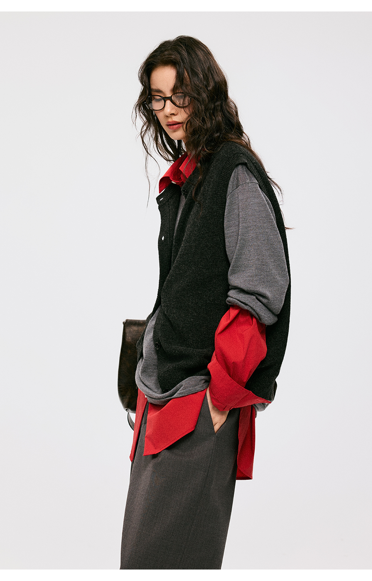 棉仓3561026002-【漫步巴黎】牦牛绒圆领英式罗纹扣式马甲