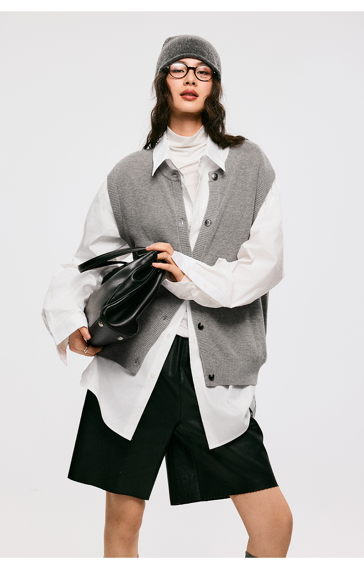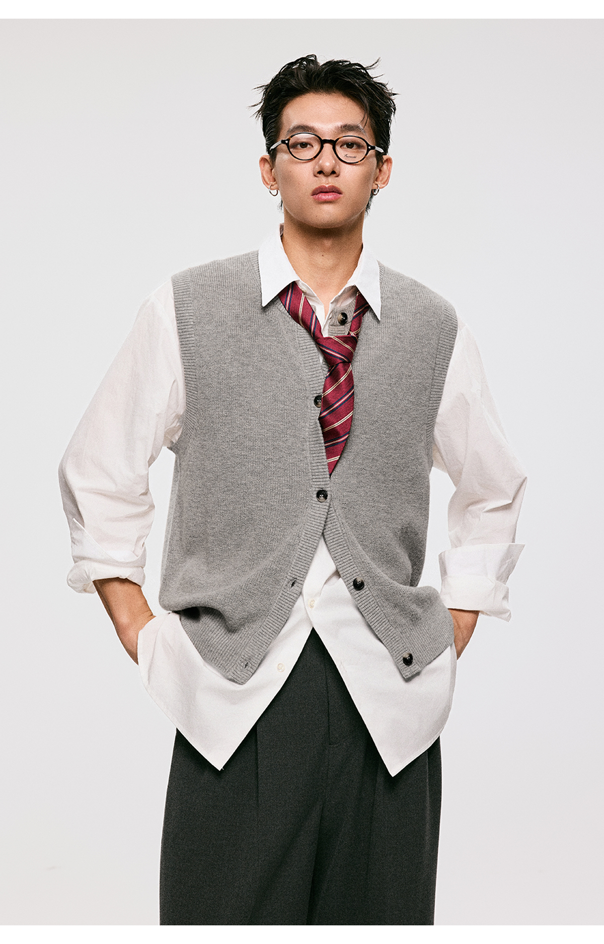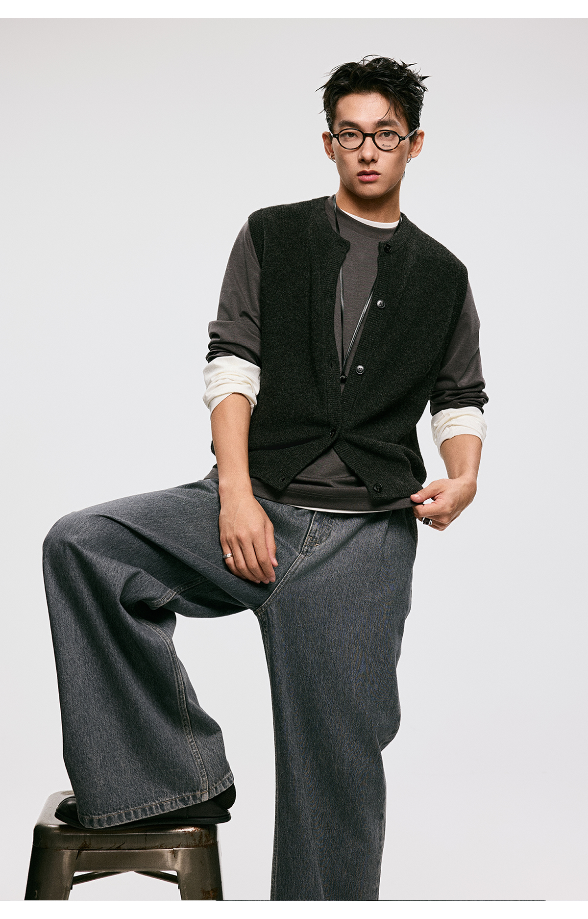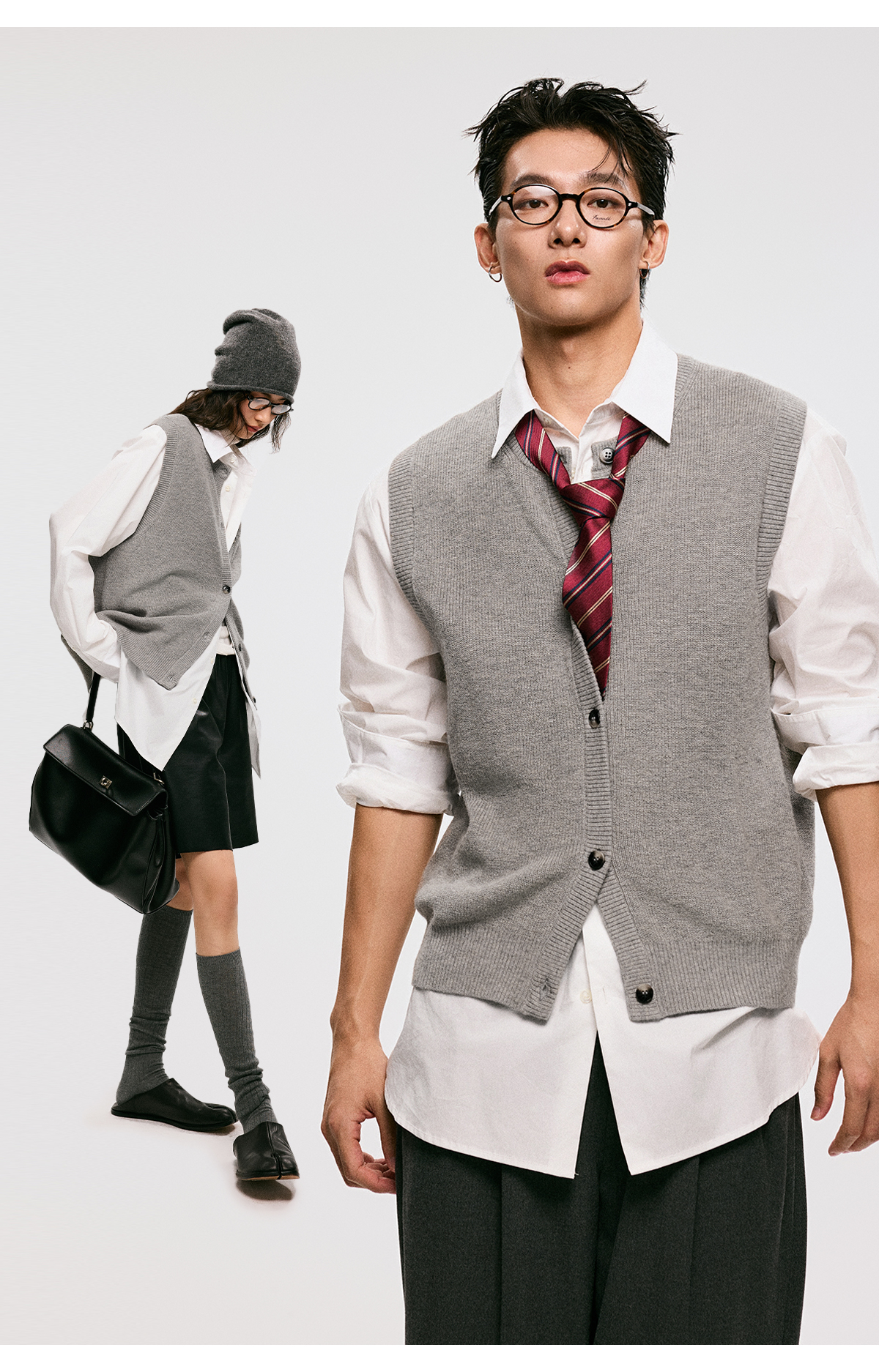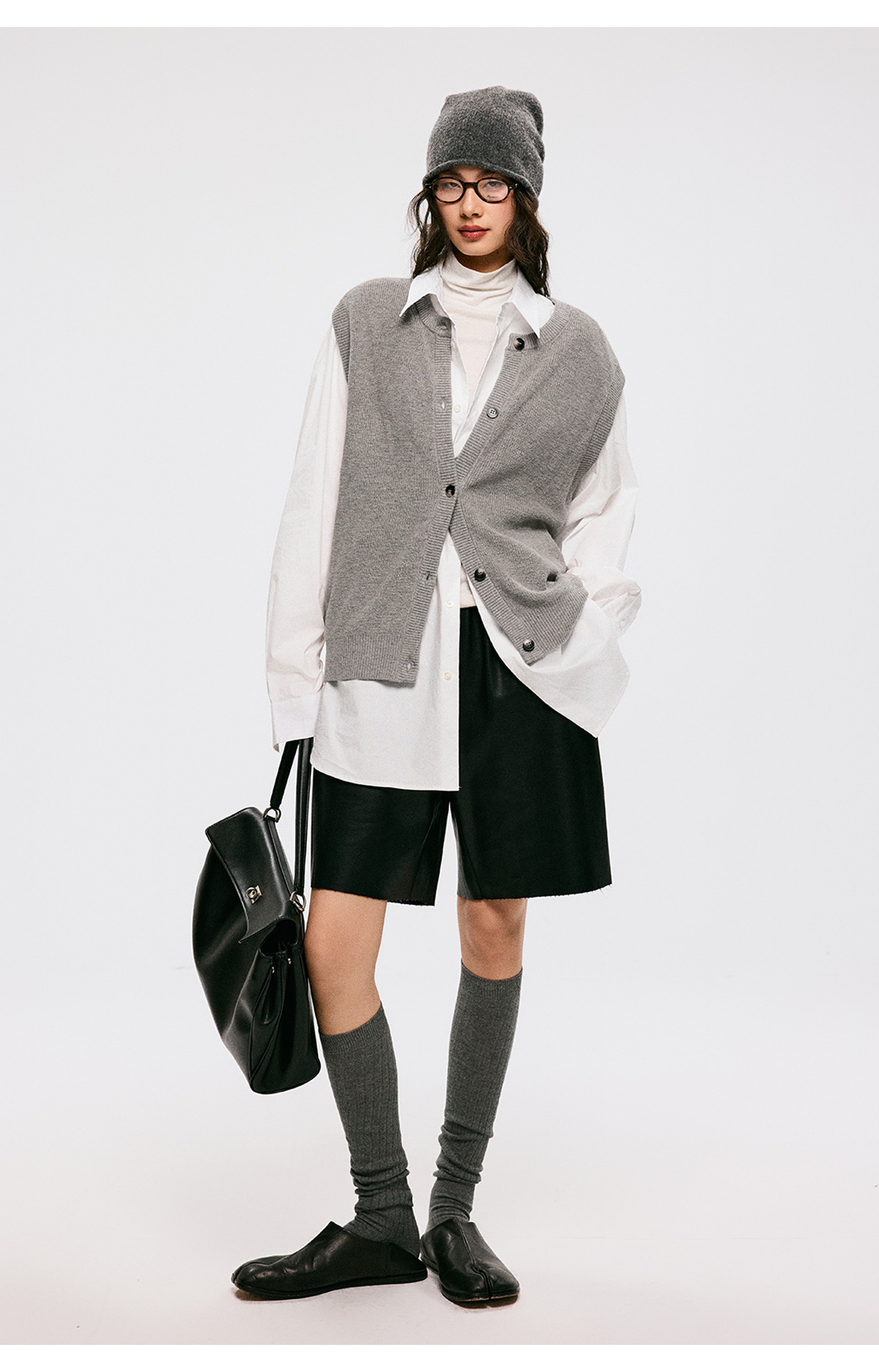 棉仓3561026002-【漫步巴黎】牦牛绒圆领英式罗纹扣式马甲