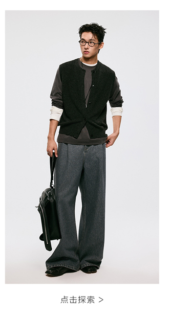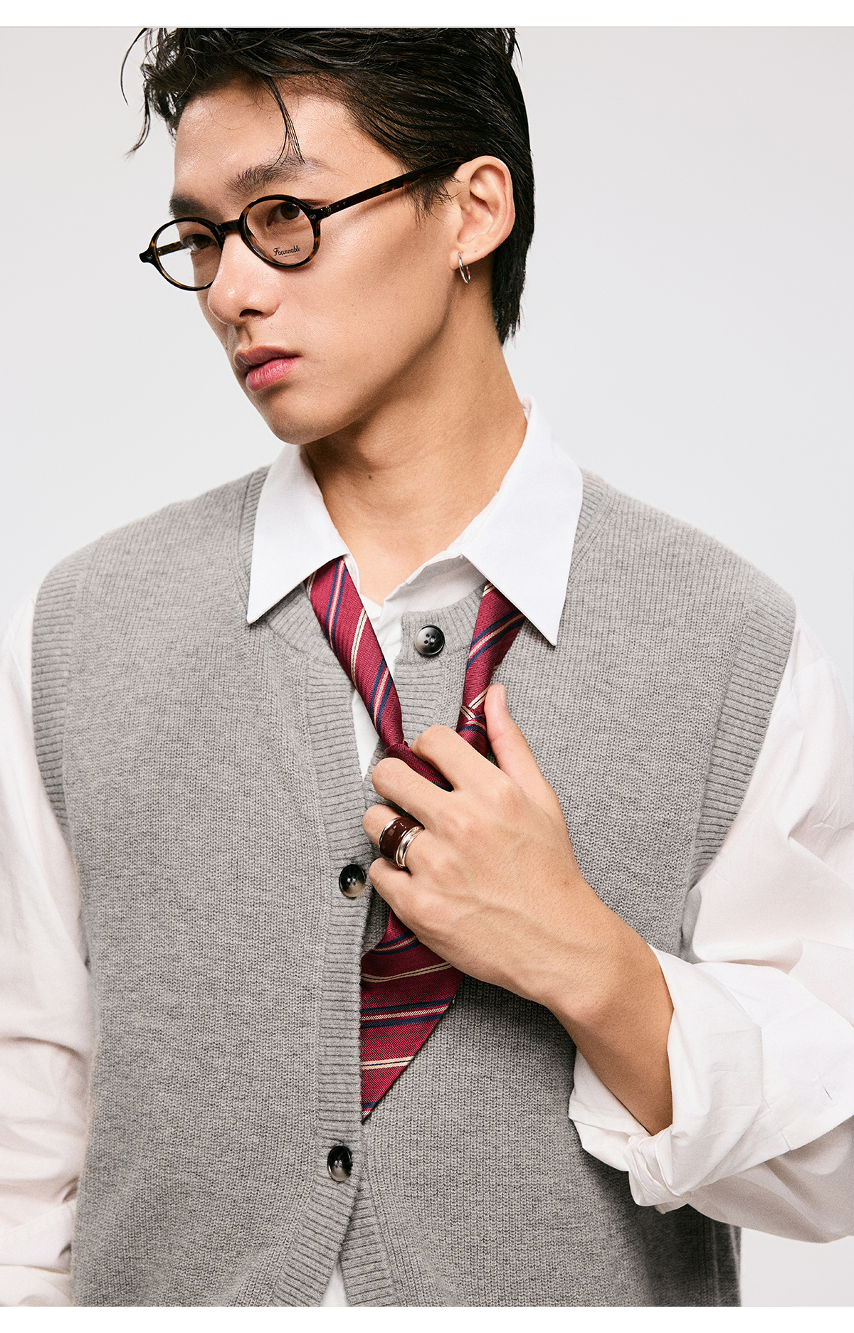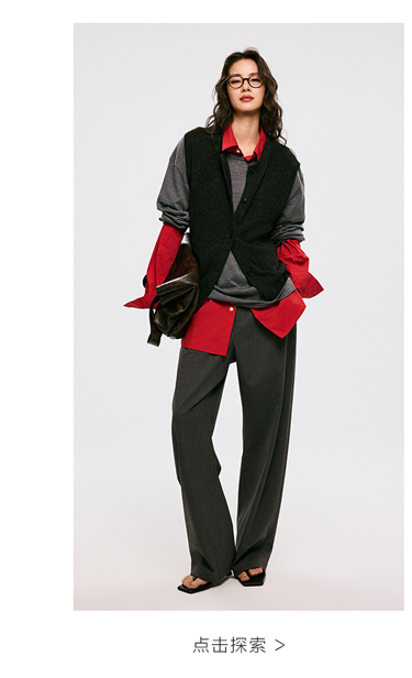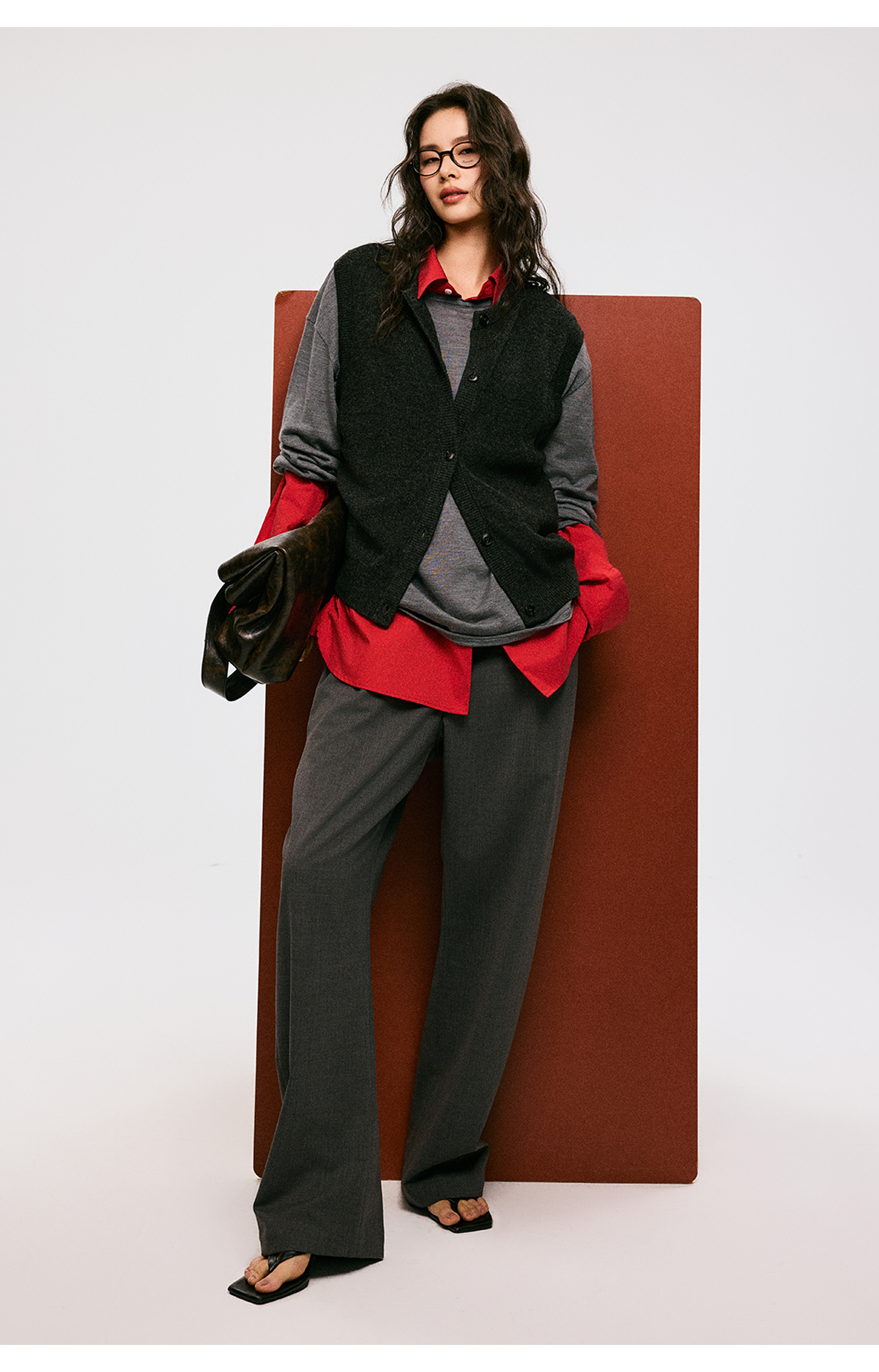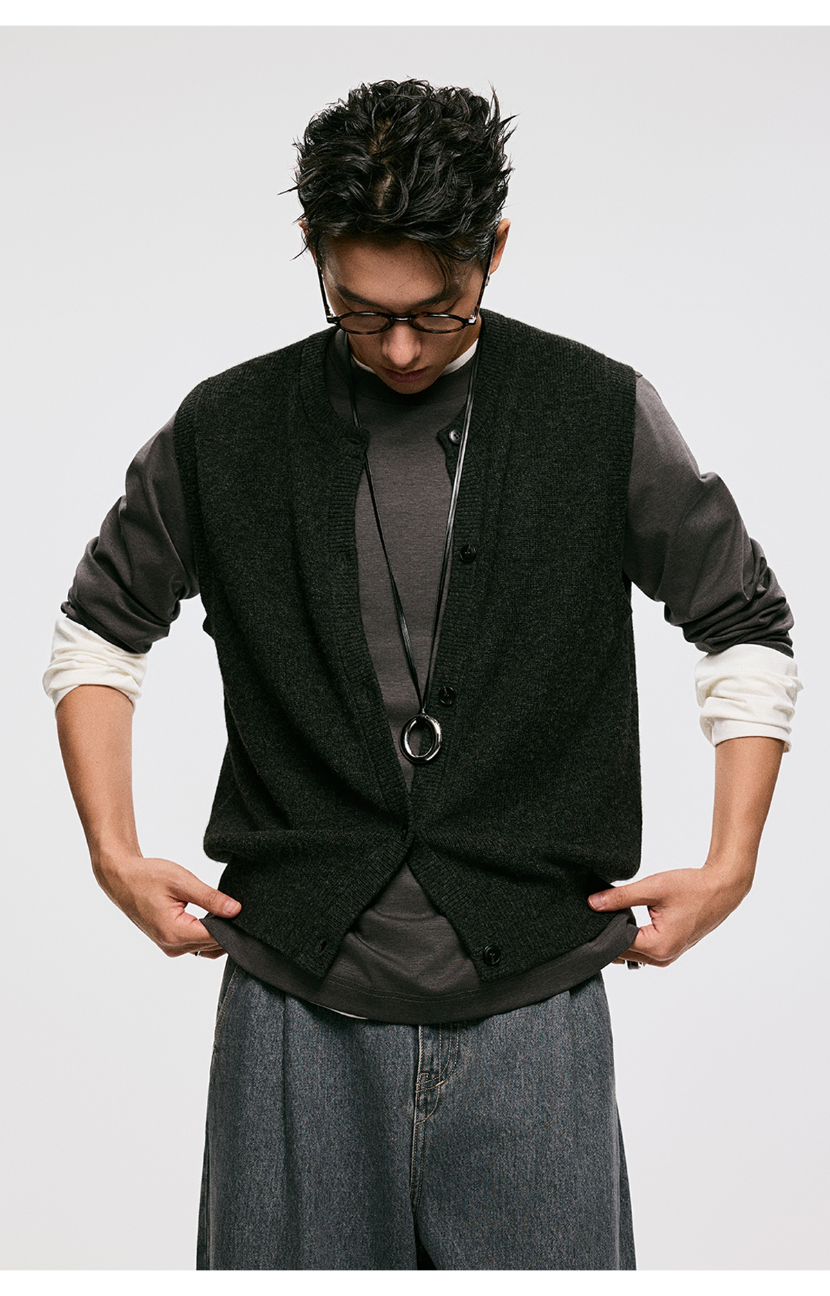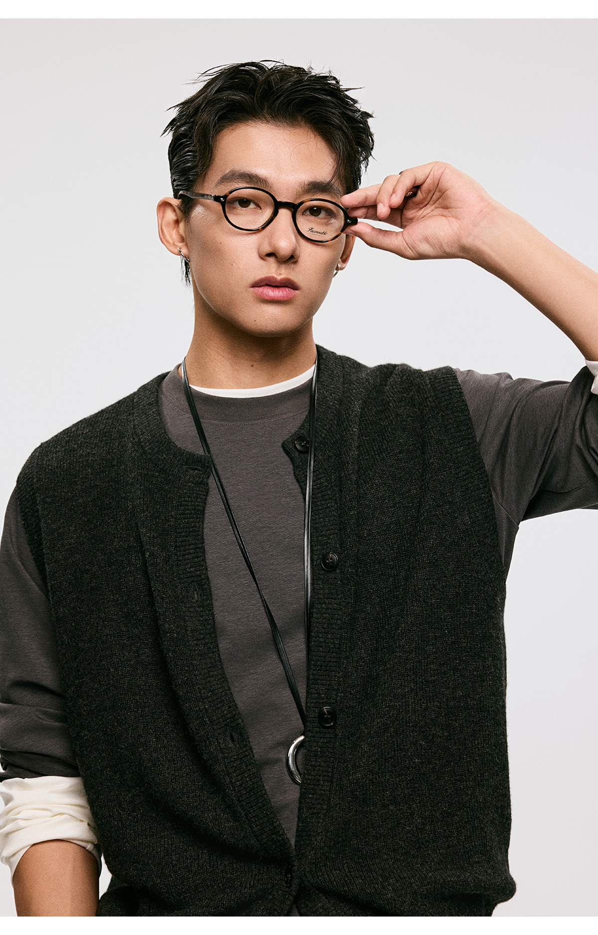 棉仓3561026002-【漫步巴黎】牦牛绒圆领英式罗纹扣式马甲