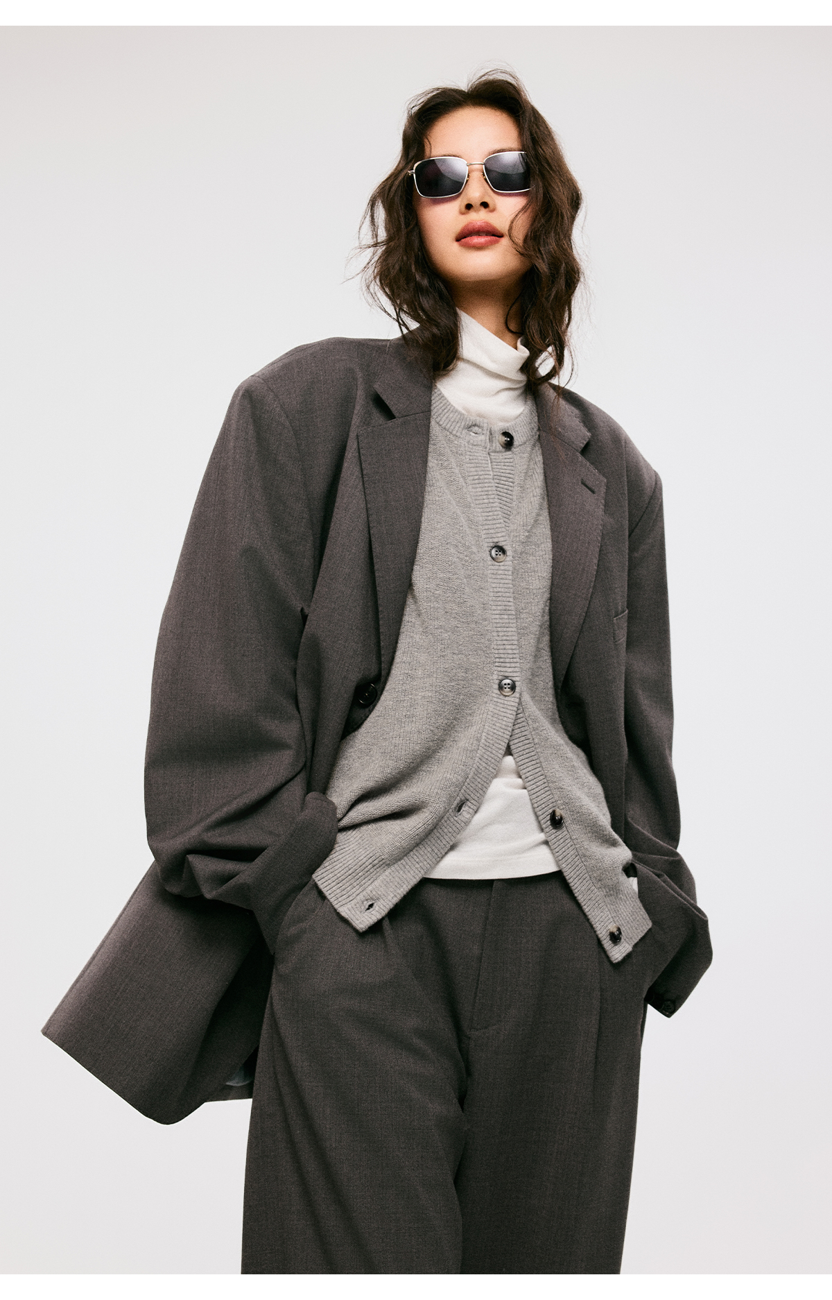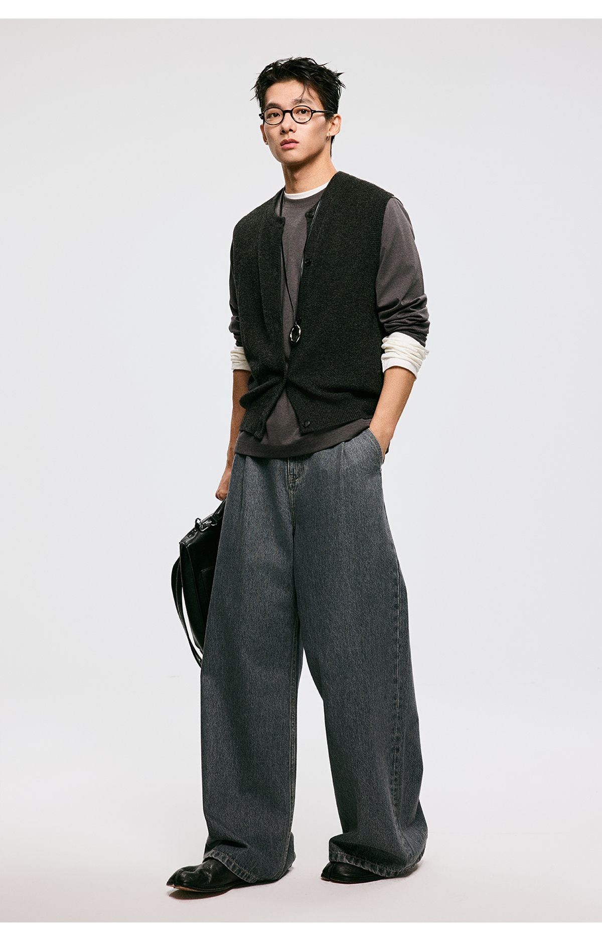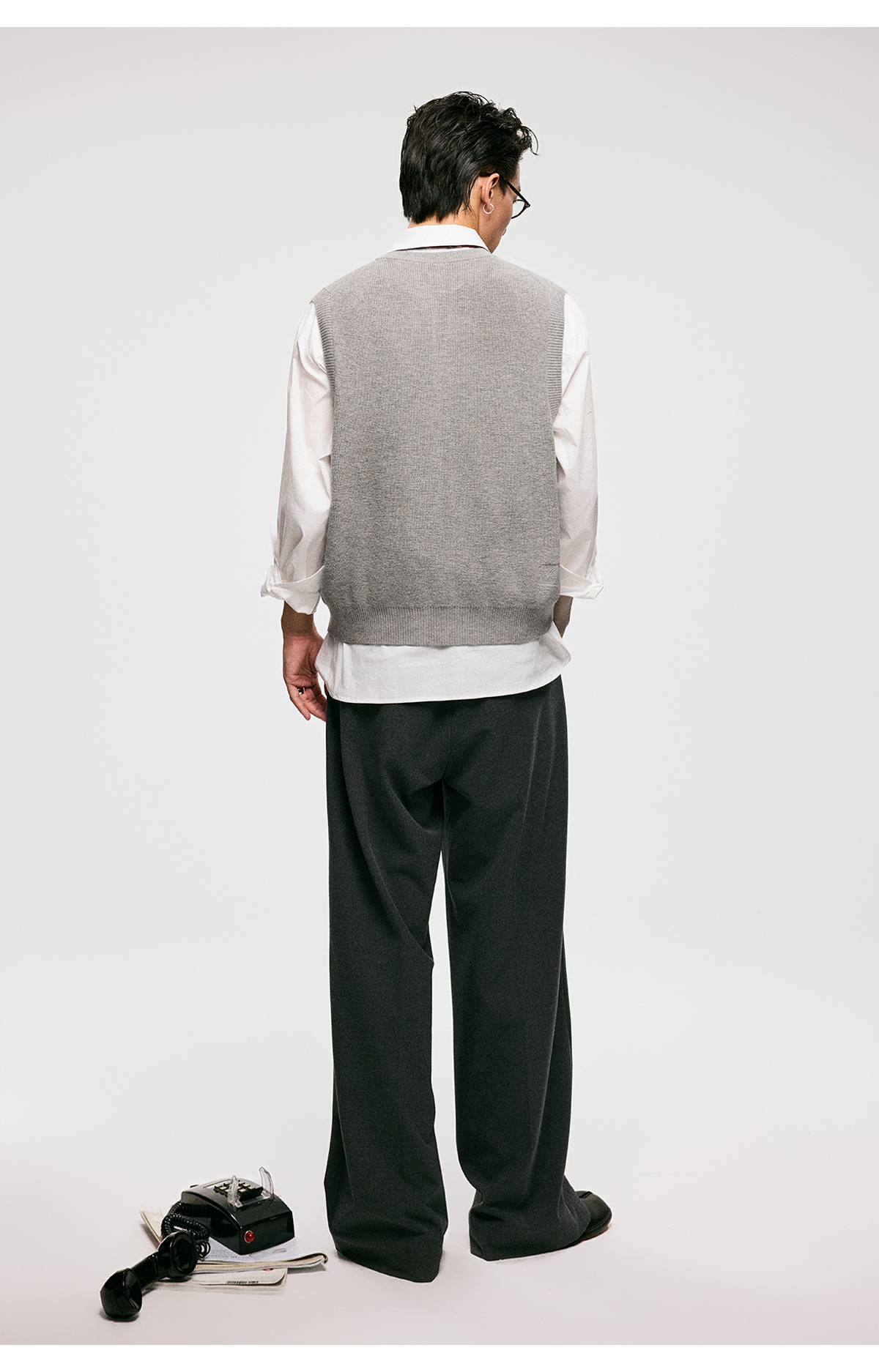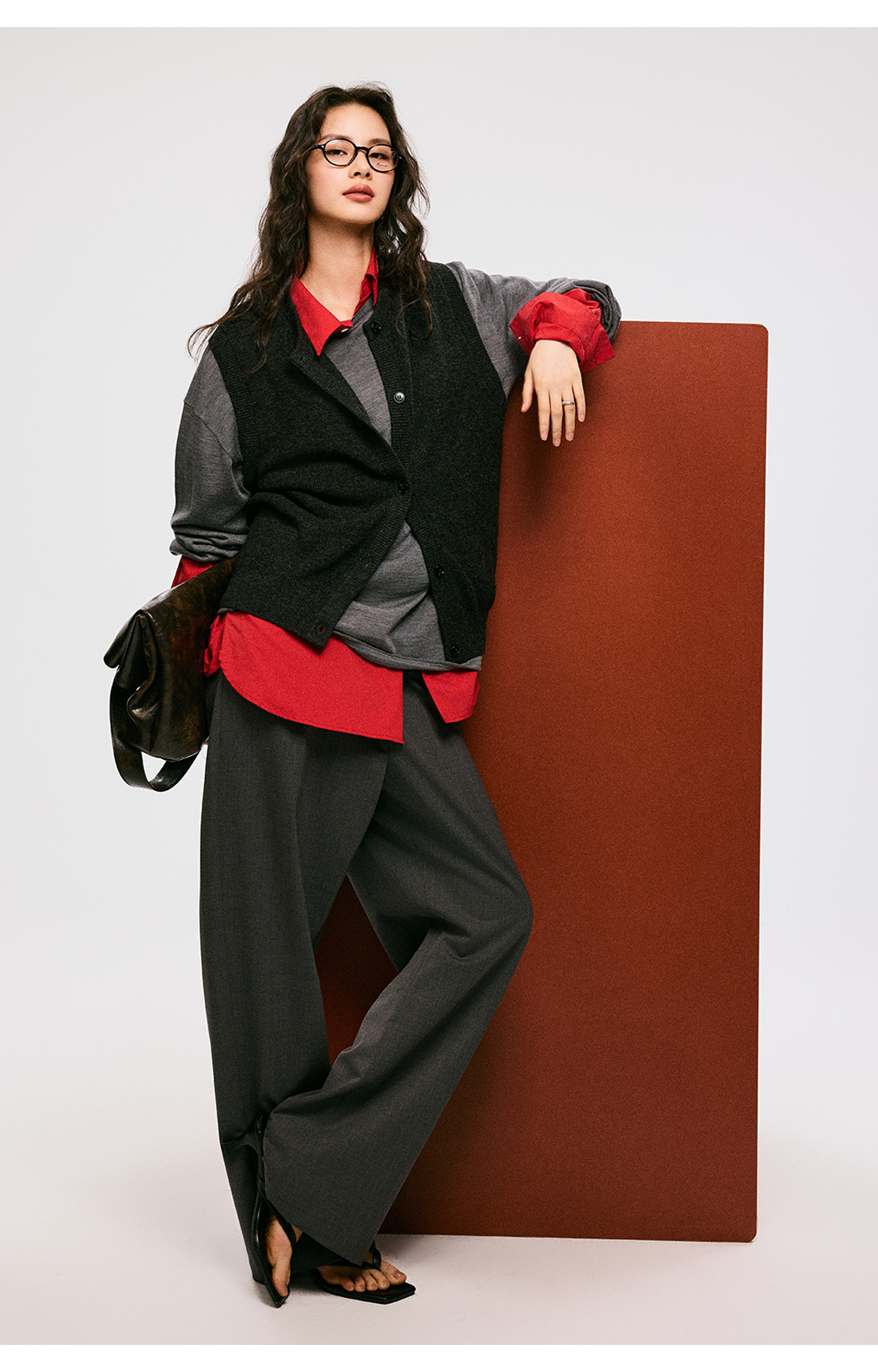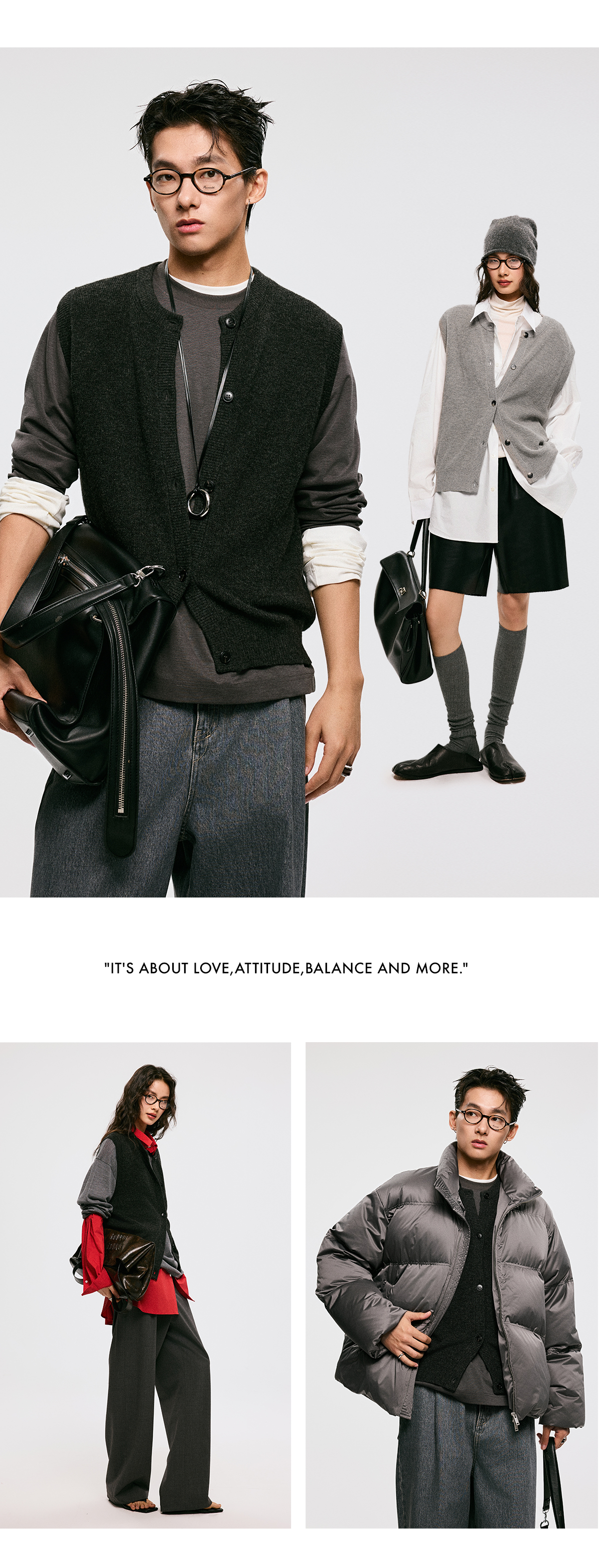 棉仓3561026002-【漫步巴黎】牦牛绒圆领英式罗纹扣式马甲