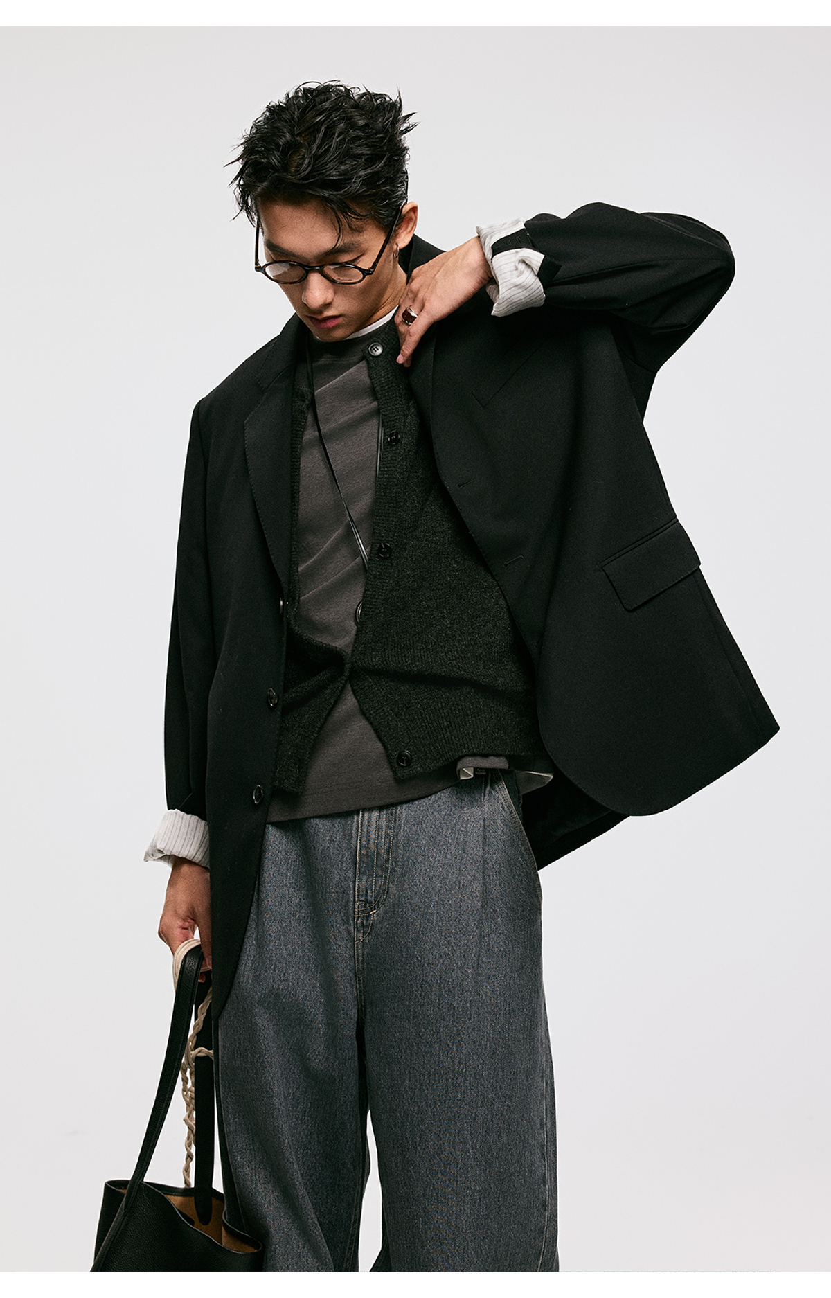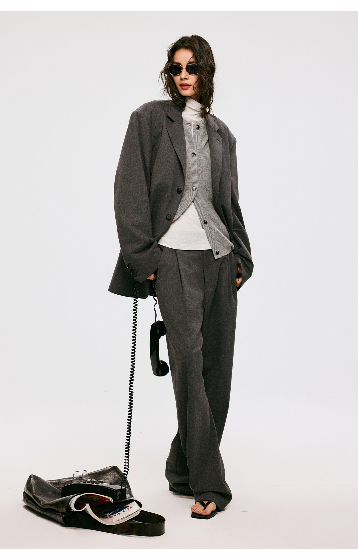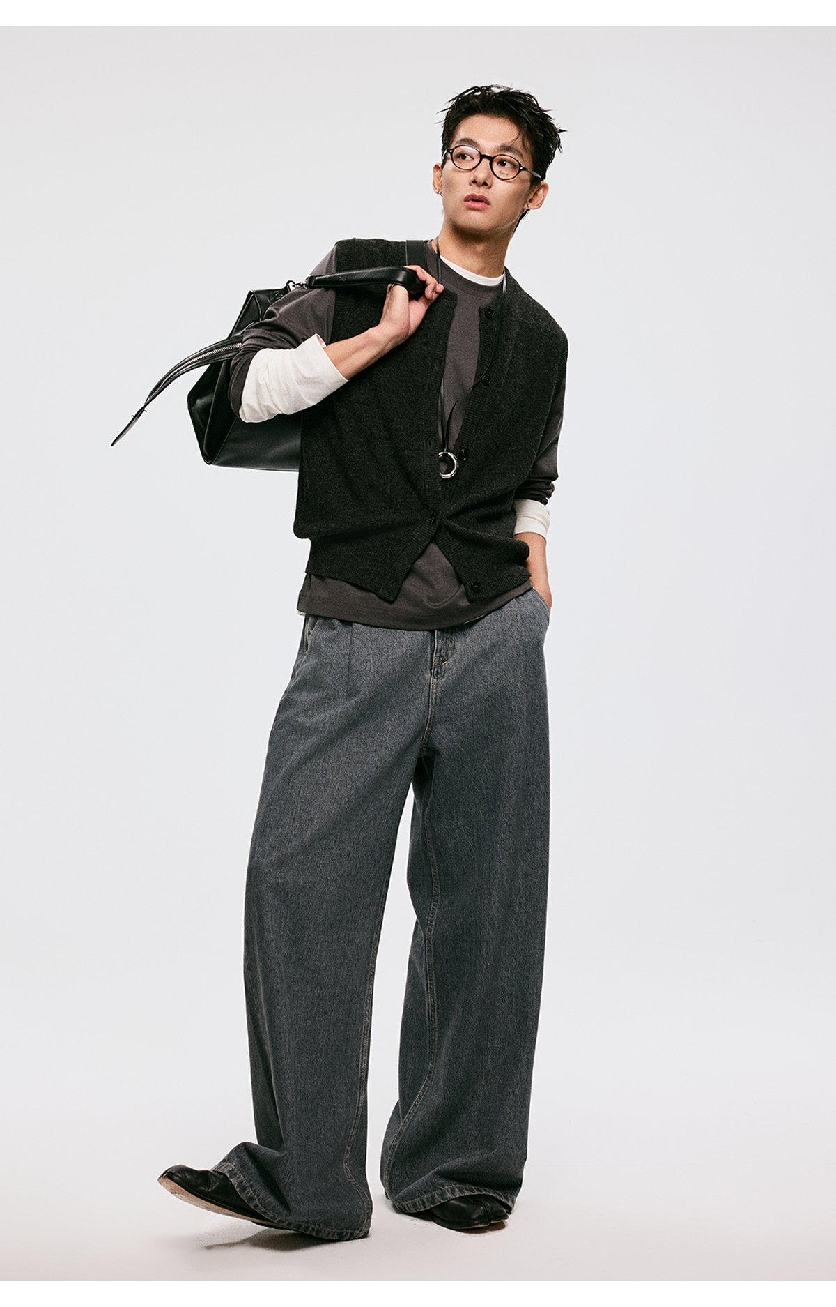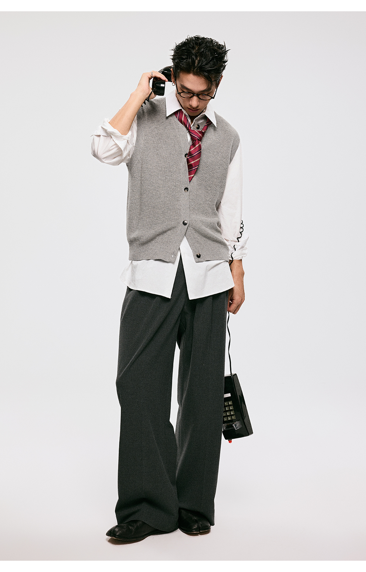棉仓3561026002-【漫步巴黎】牦牛绒圆领英式罗纹扣式马甲