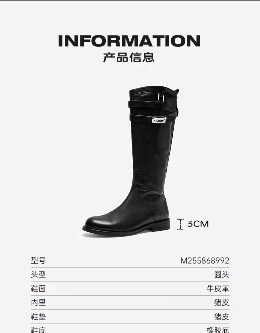 【云粉节】BF楼MIO米奥骑士靴2025冬季新款圆头粗跟增高美拉德纯色褶皱拉链女靴M255868992吊牌价2898活动价2463