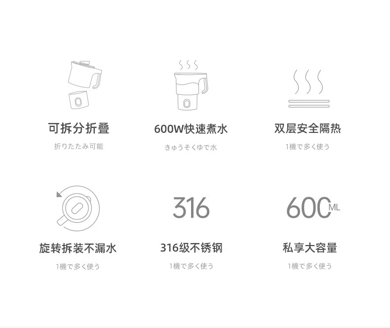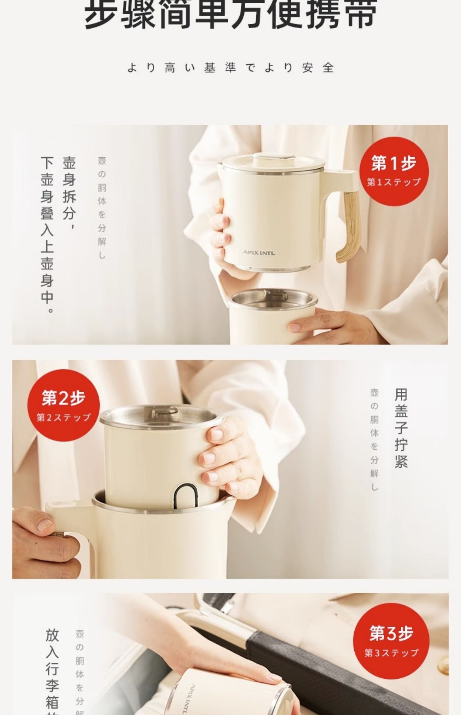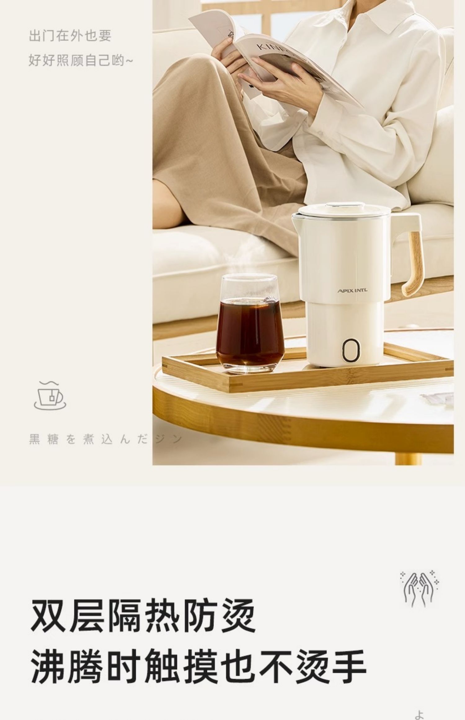中国产 Apixintl安本素 折叠水壶便携式电热烧水壶 0.6L