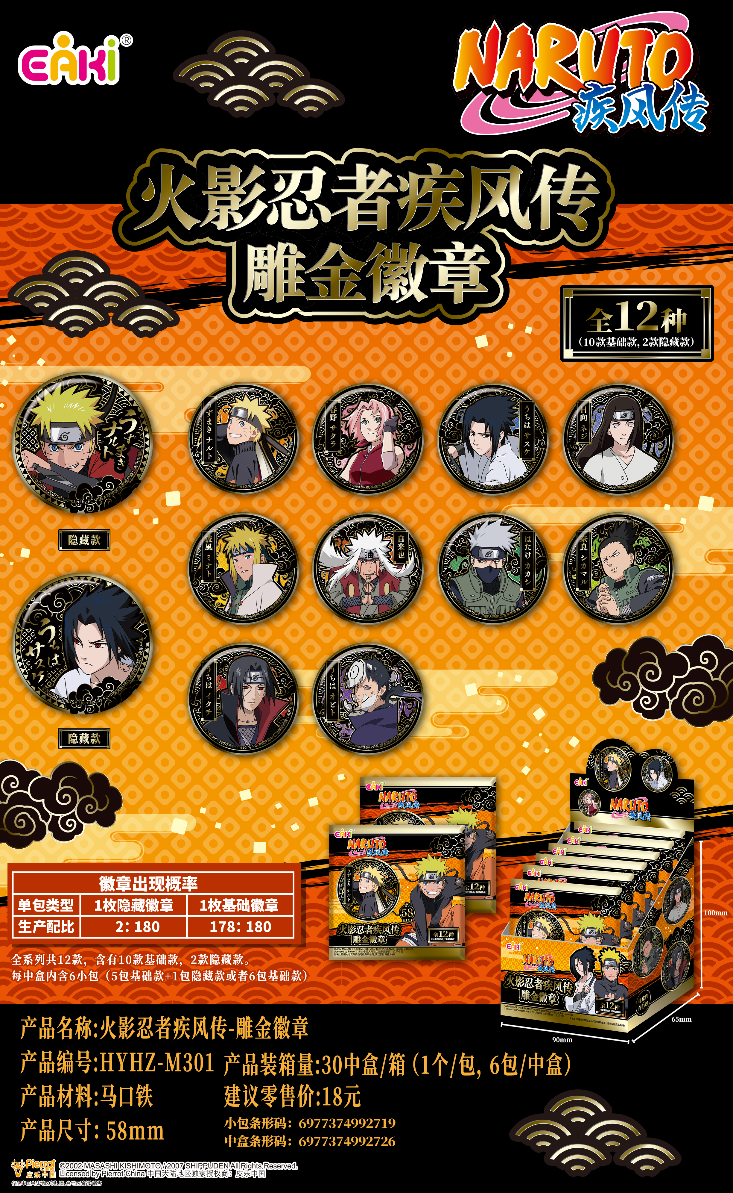 亿奇 火影忍者疾风传 雕金 徽章 吧唧 全12款 6包/盒 国谷