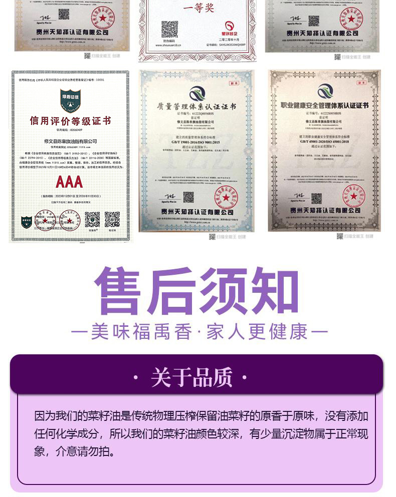 福禹香农家小榨菜籽油5L贵州纯正菜籽油精选粮油压榨香浓食用油