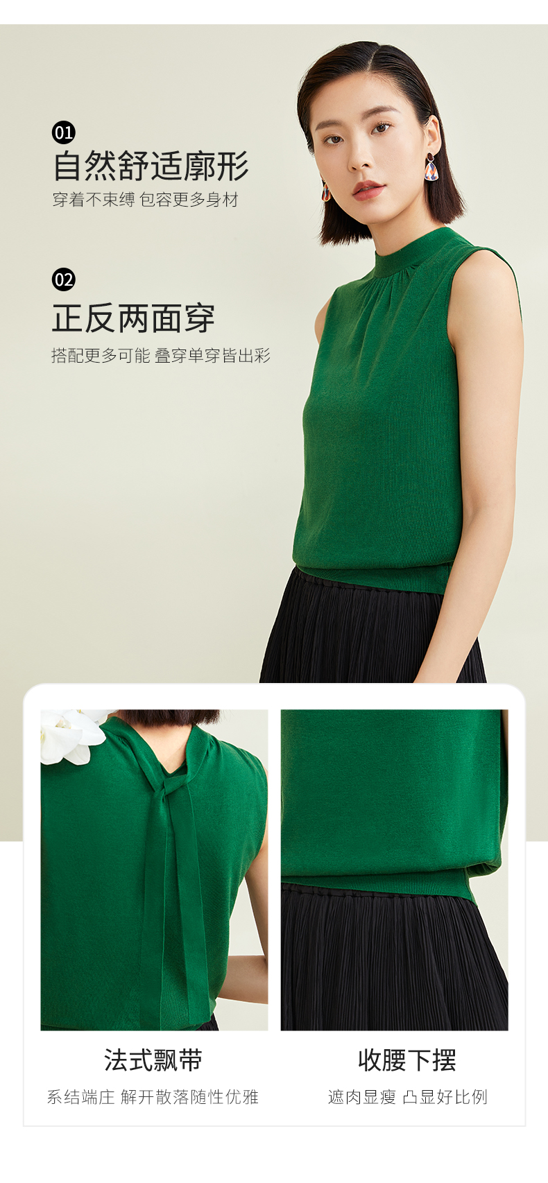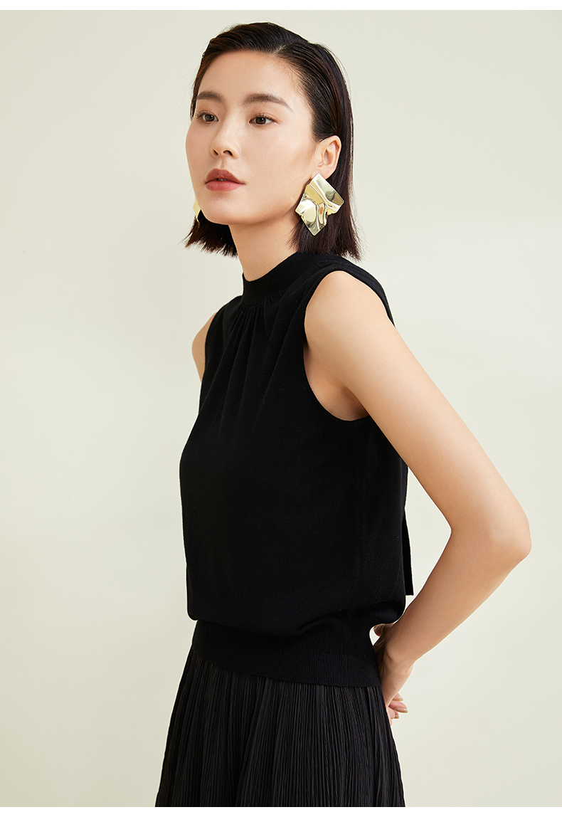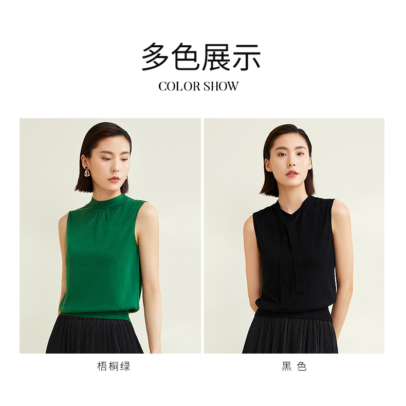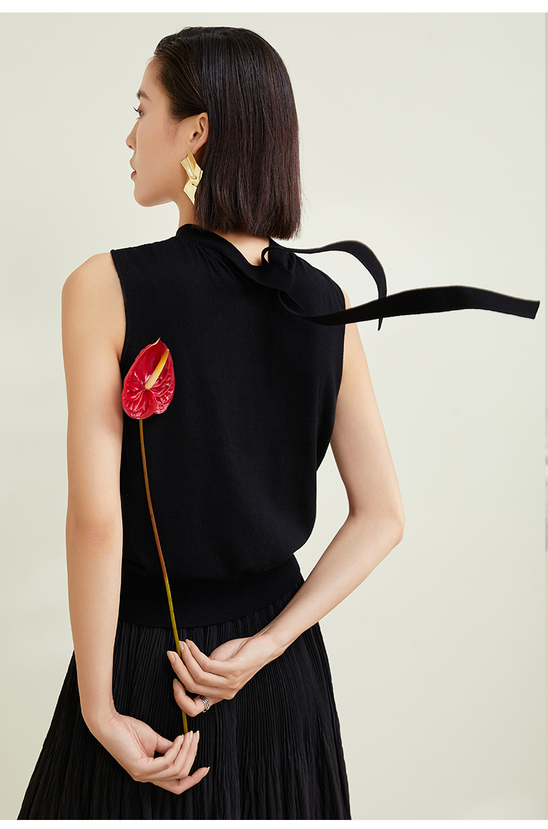 玳莎法式飘带领针织衫别致女无袖套头软糯背心上衣 CC33002