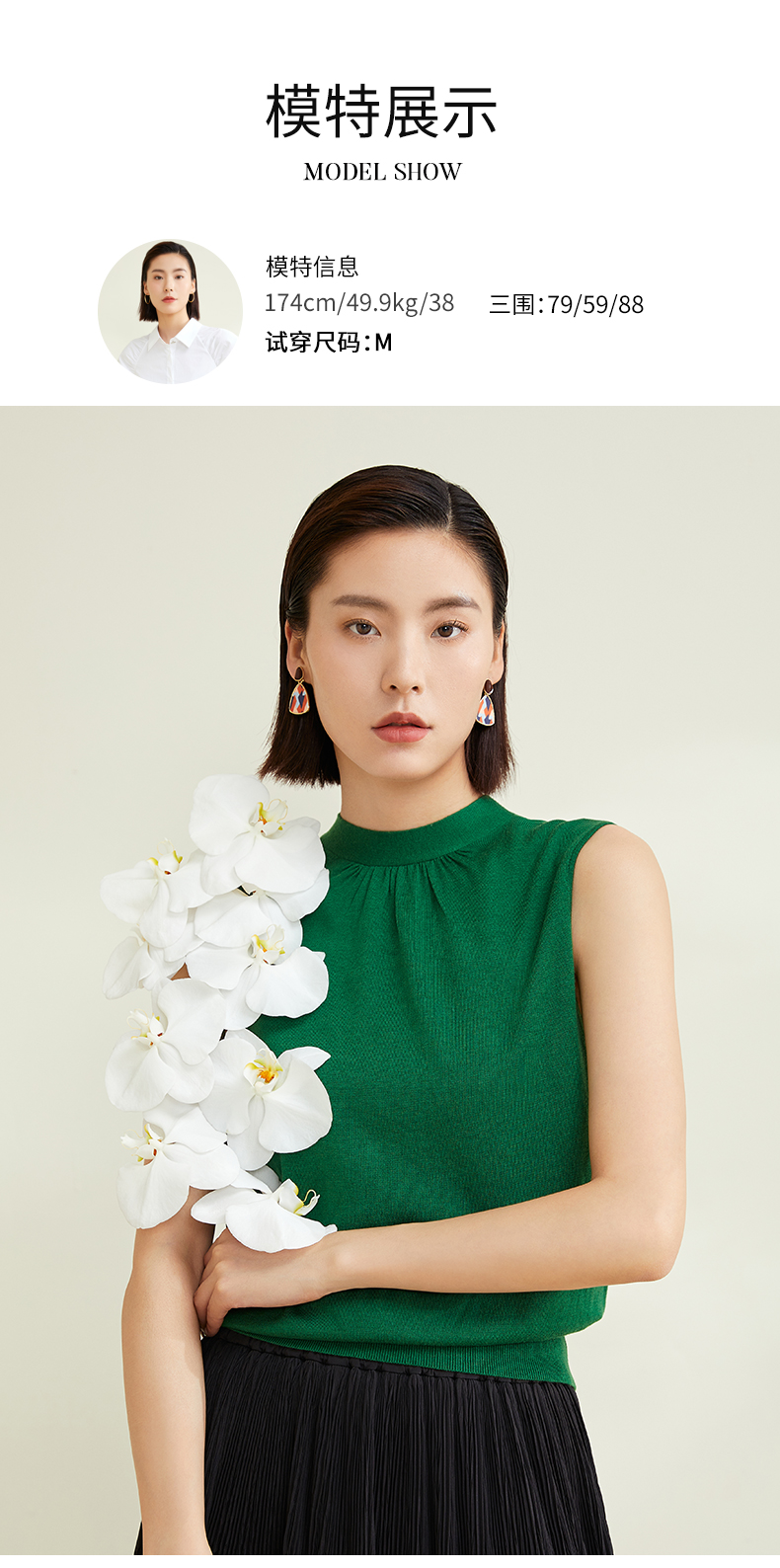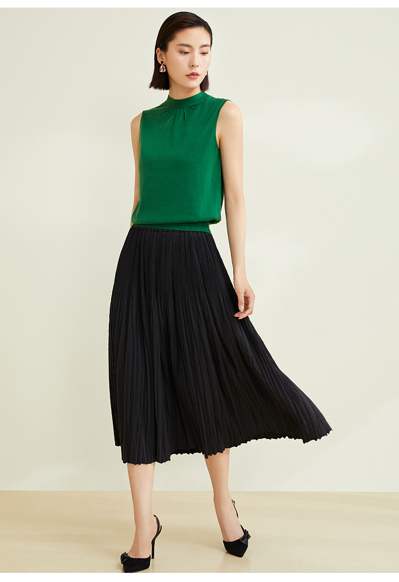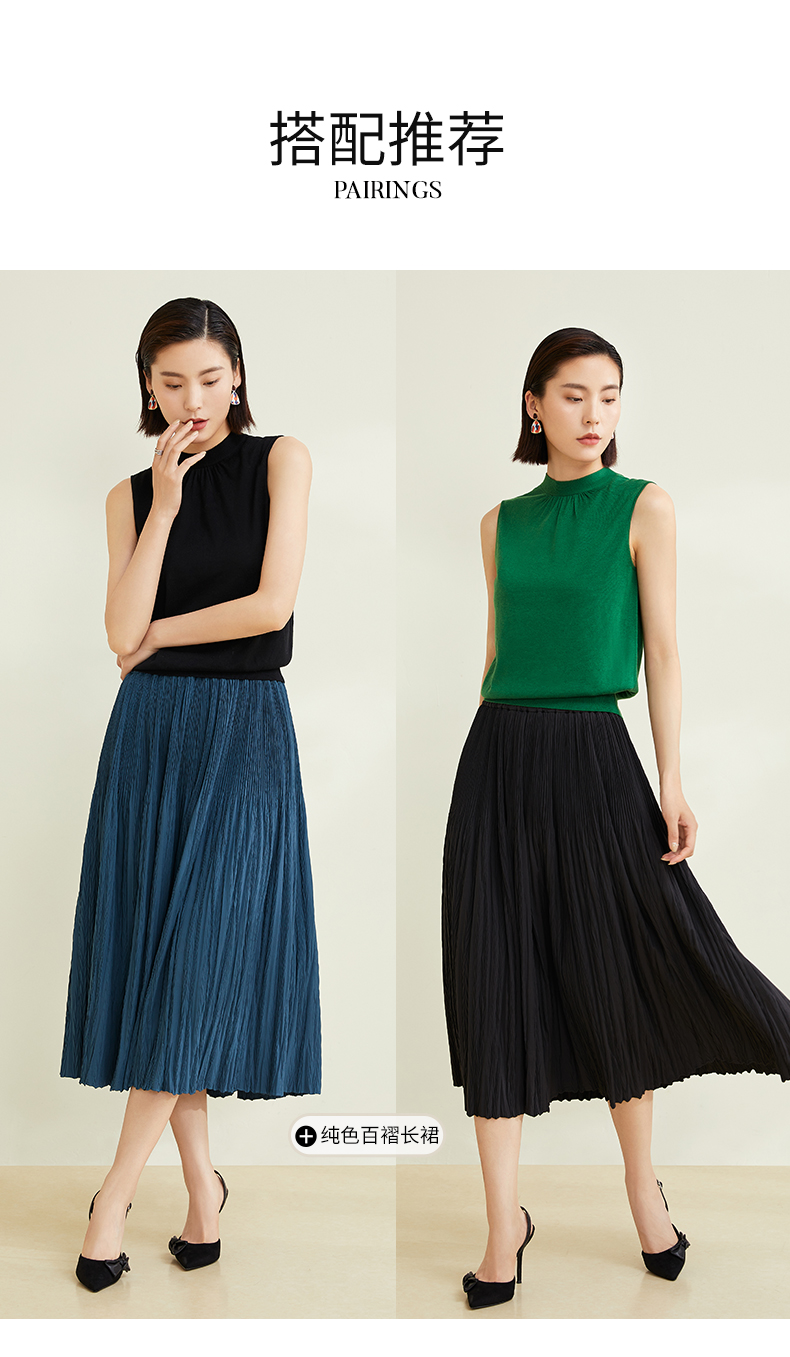 玳莎法式飘带领针织衫别致女无袖套头软糯背心上衣 CC33002