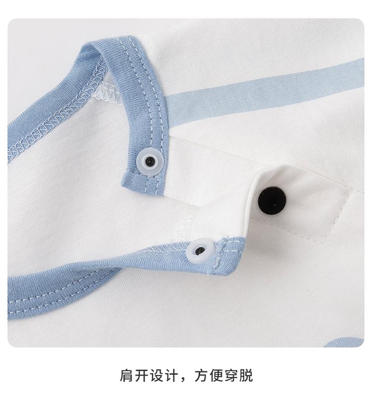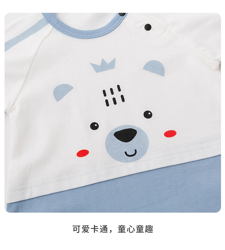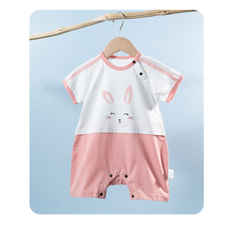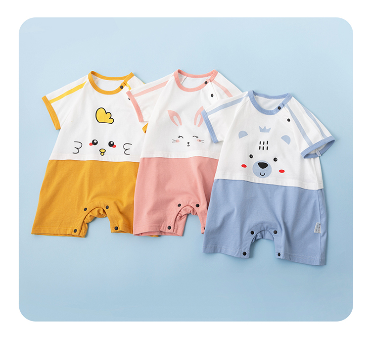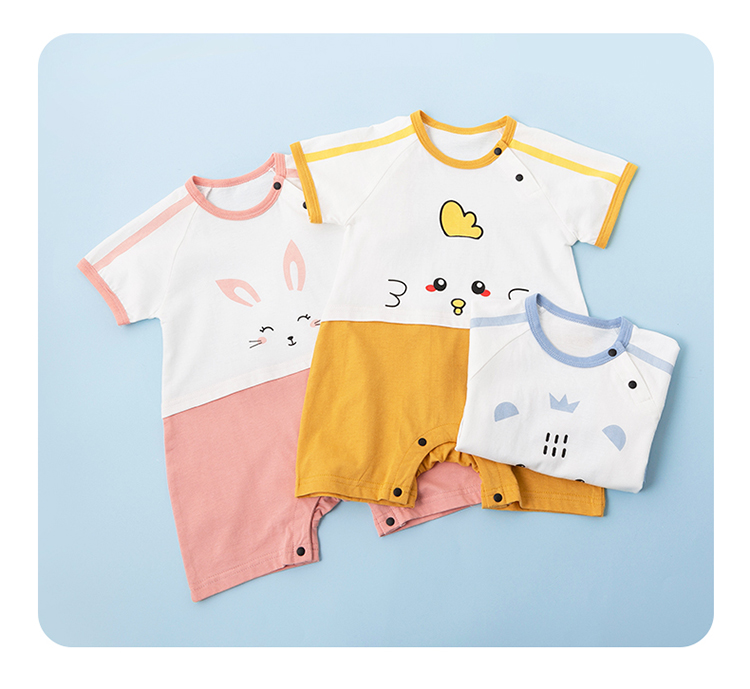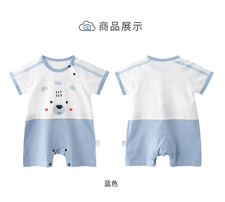 贝贝怡新生儿肩开连体衣夏季薄款纯棉短袖爬服男女宝宝卡通哈衣232L2043