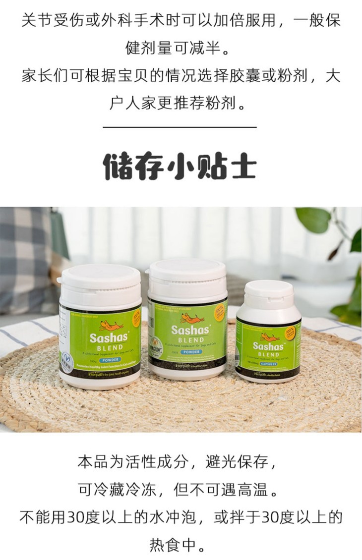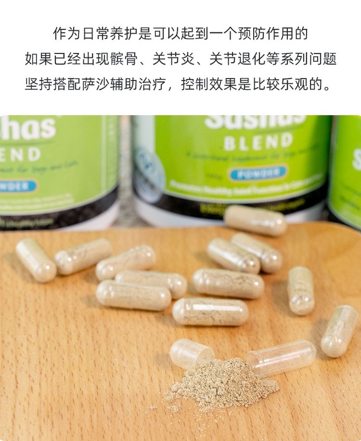 除去先天因素,随着体重,年龄,运动量的增长,宝贝们的关节都或多或少出现问题,初次接触萨沙是家里的9岁的毛孩子髌骨尝试过其他保健品或者药品,最终还是被萨沙征服纯天然产品,即使长期服用也不会对肾脏造成负担,没有不良反应。