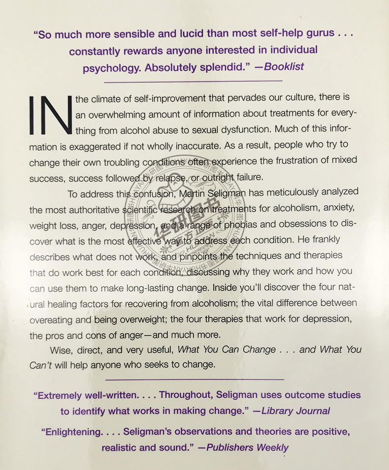 英文原版 认识自己 接纳自己 What You Can Change and What You Can't 幸福科学四部曲之三 积极心理学之父 塞利格曼英文版进口书
