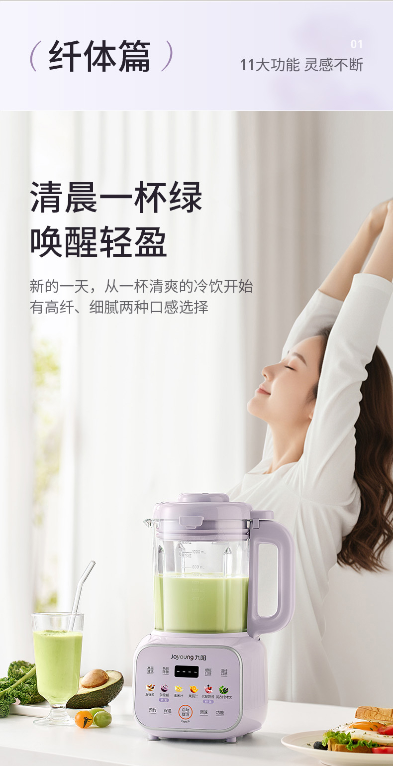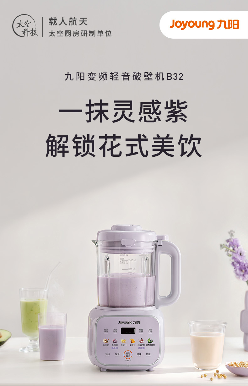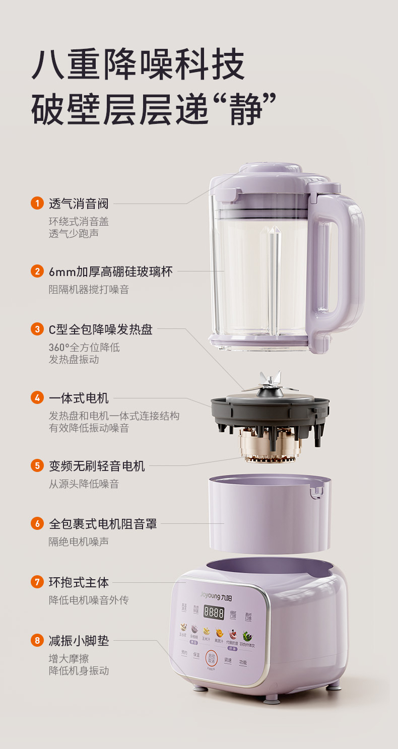 九阳变频轻音破壁机1.2L升智能触控多功能料理机高温清洗免滤预约