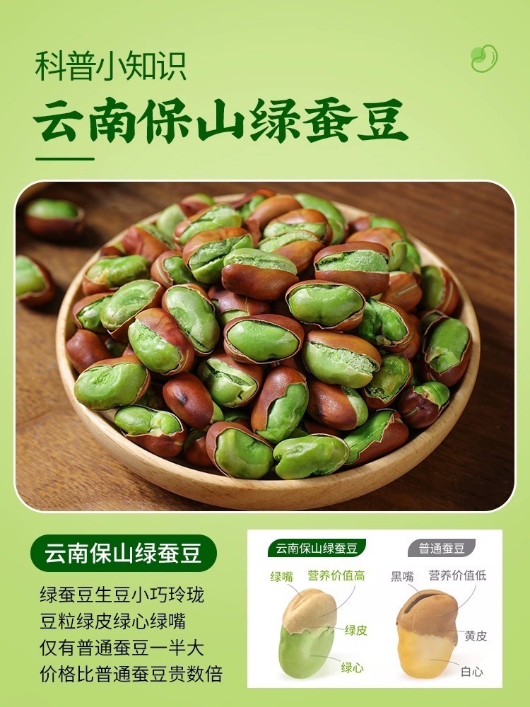 作为休闲时光的零食,绿心蚕豆都能给你带来独特的味觉体验。云南保山绿心蚕豆,是大自然赋予我们的美味馈赠,让你品尝到纯净与独特的味道!绿心蚕豆,拥有诸多令人惊艳的优势,让它在众多豆类产品中脱颖而出。