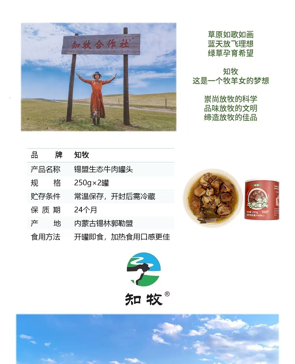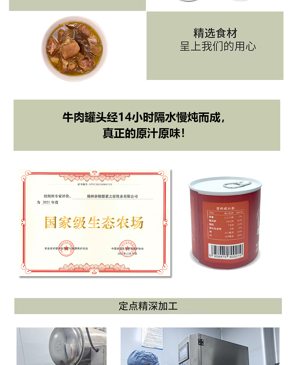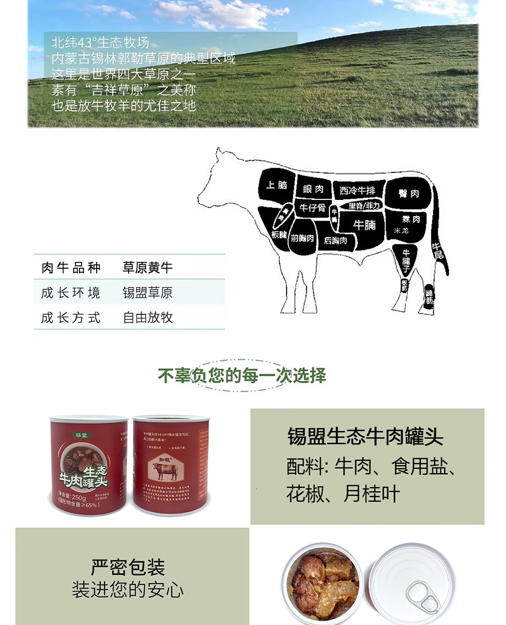 锡盟生态牛肉罐头250g*2罐