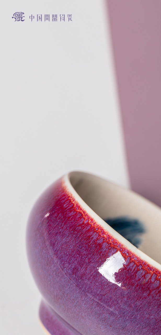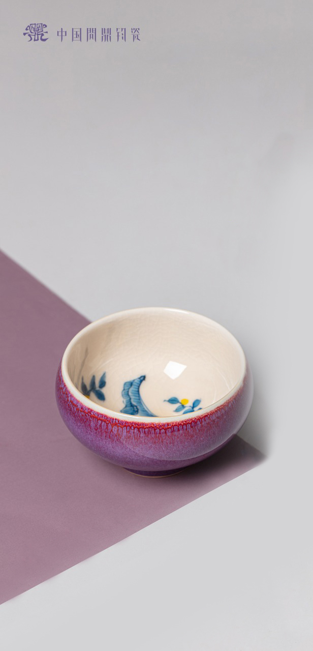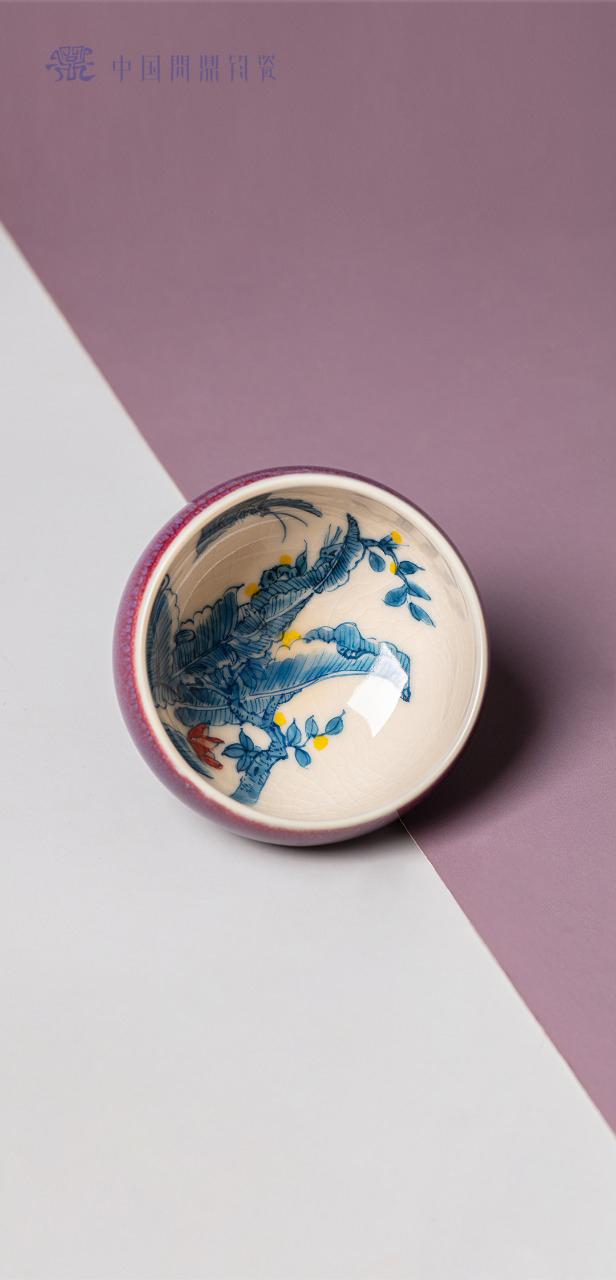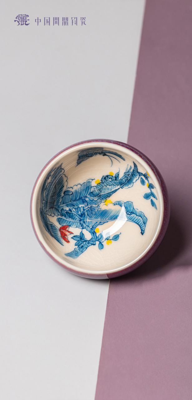 问鼎钧瓷鹅黄青花平口杯(富贵天骄)