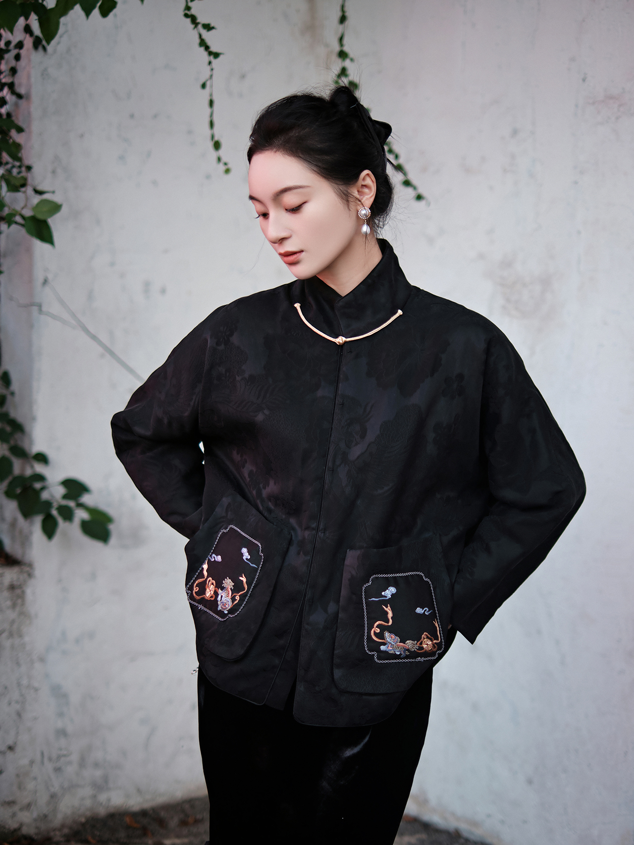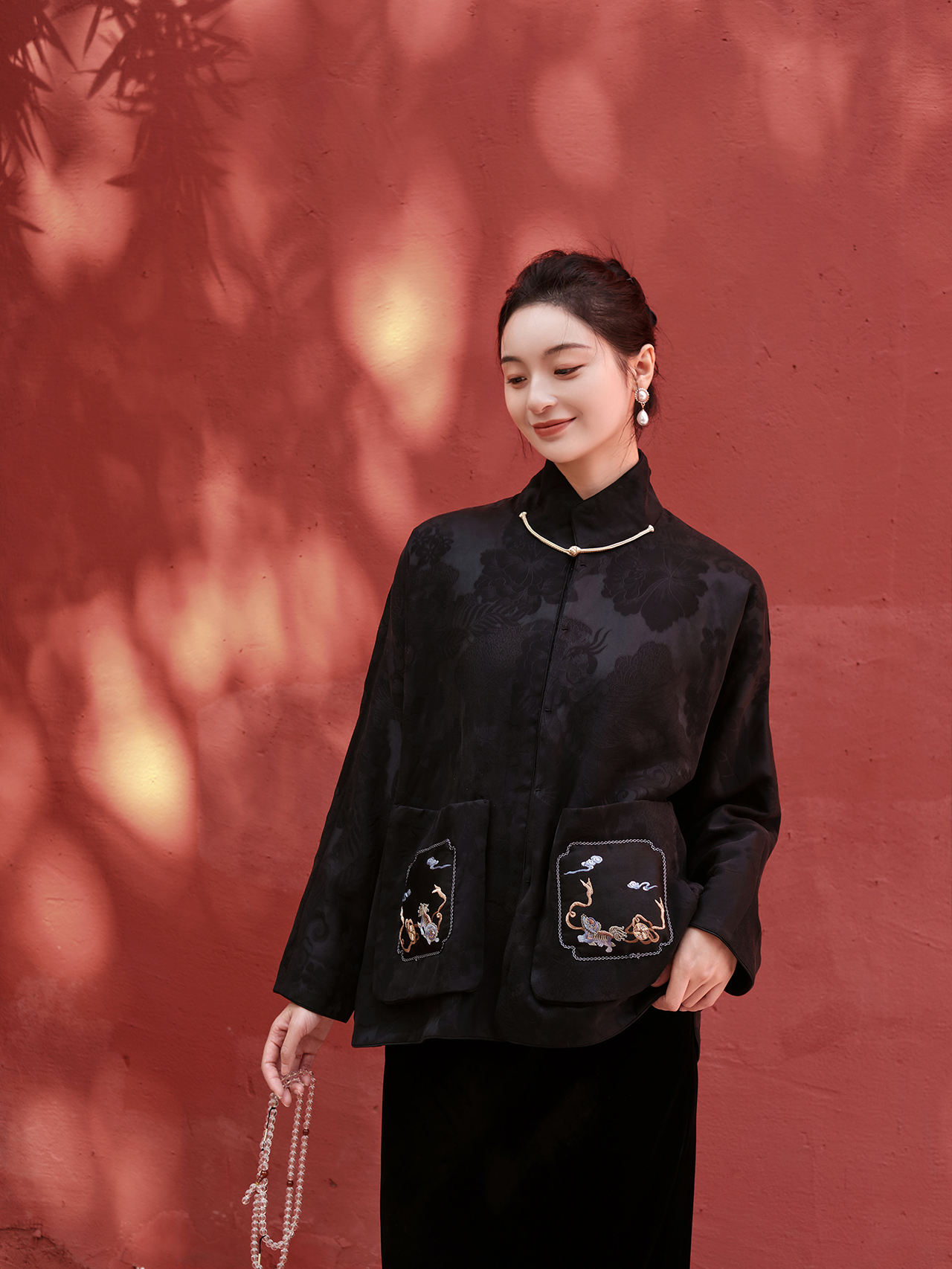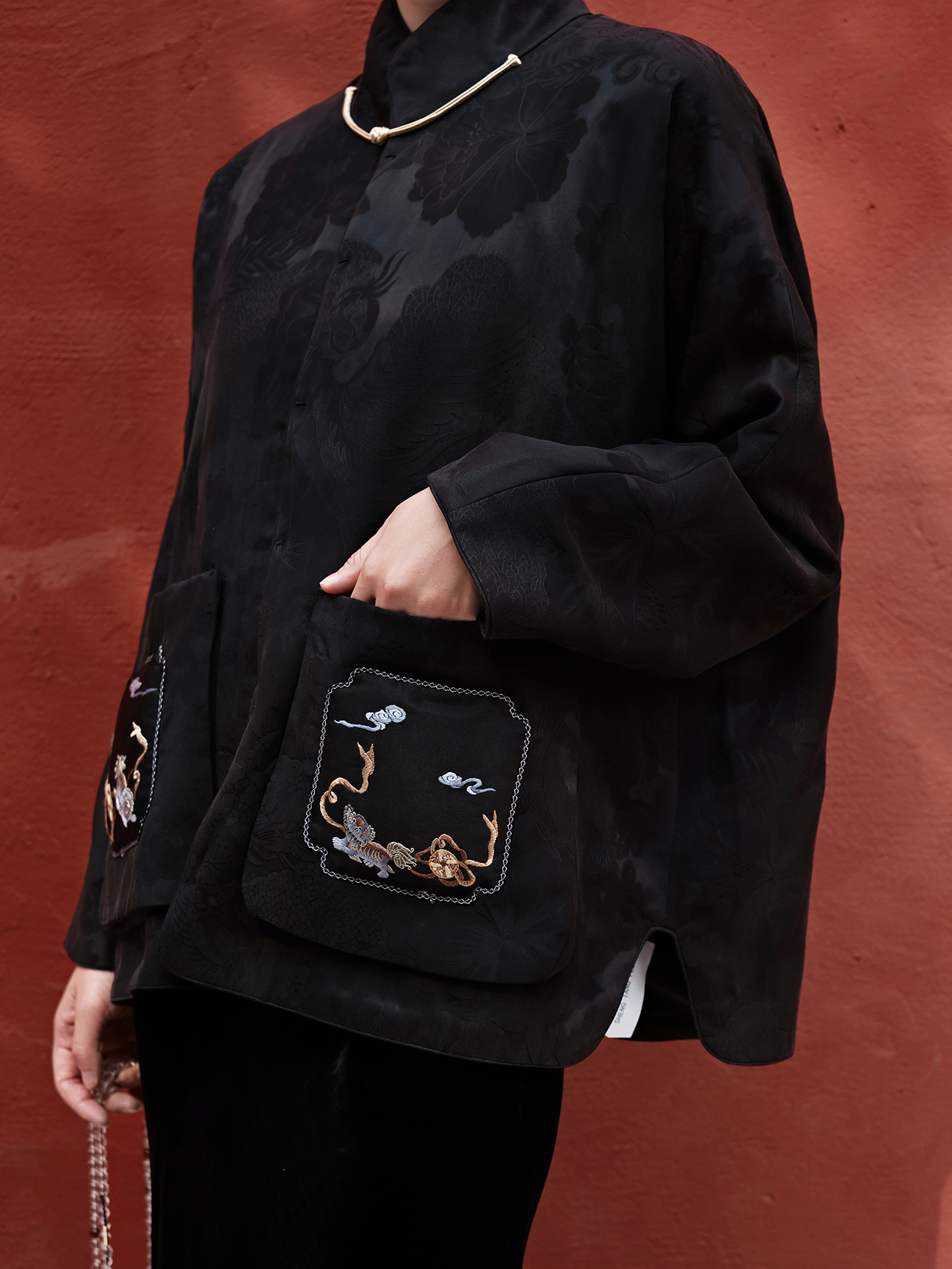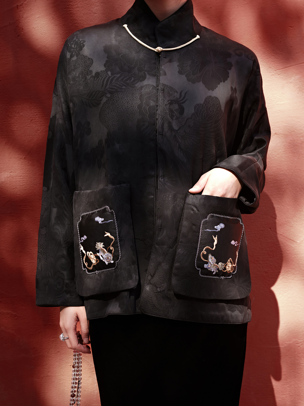 盛唐牡丹| 双狮戏绣球香云纱外套