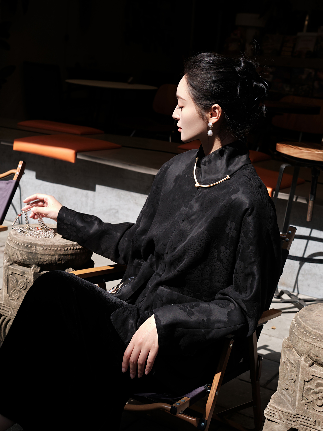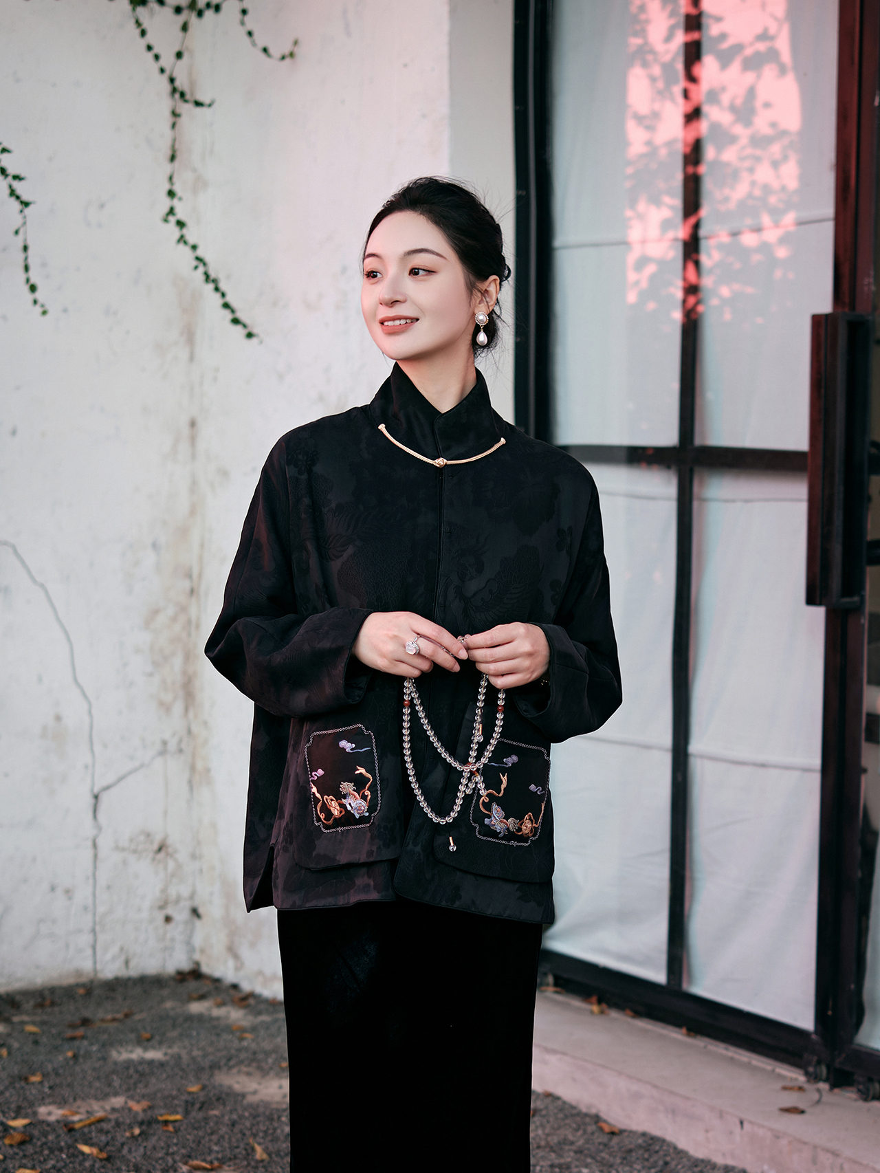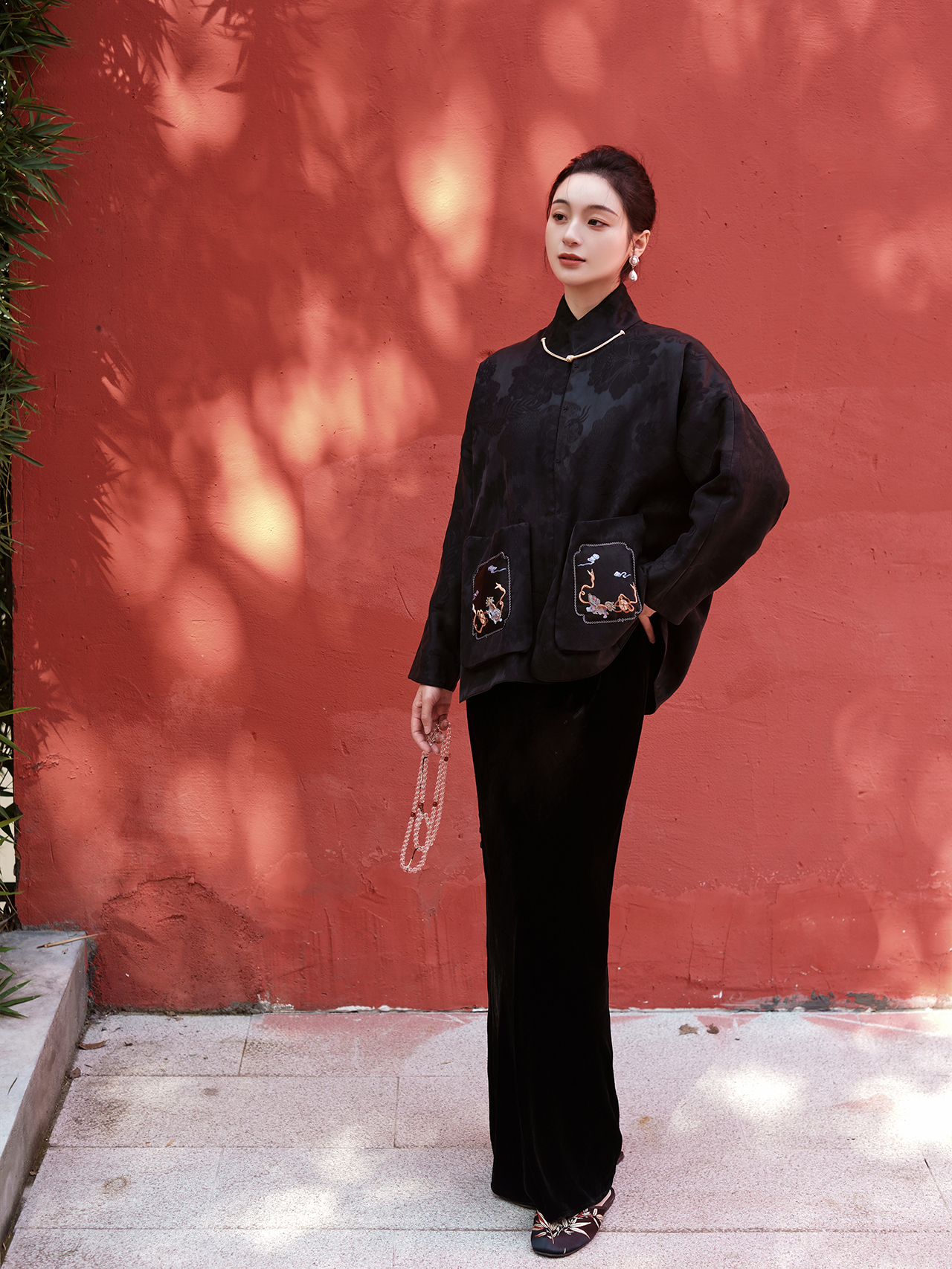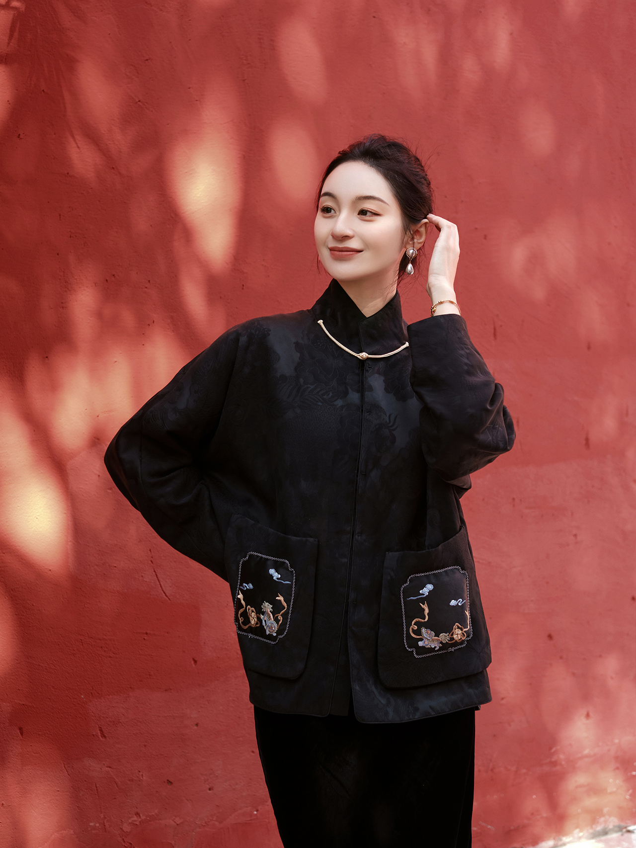 盛唐牡丹| 双狮戏绣球香云纱外套