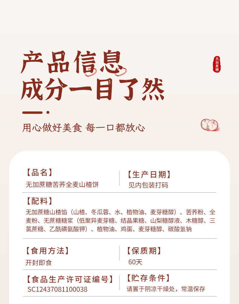 【山楂酥饼】无蔗糖荞麦山楂果肉松软夹心中老年代餐