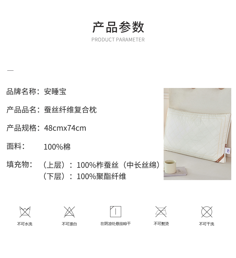 【春上新】10楼 安睡宝 双面复合蚕丝枕48×74cm 吊牌价1198元/对 活动价299元/对