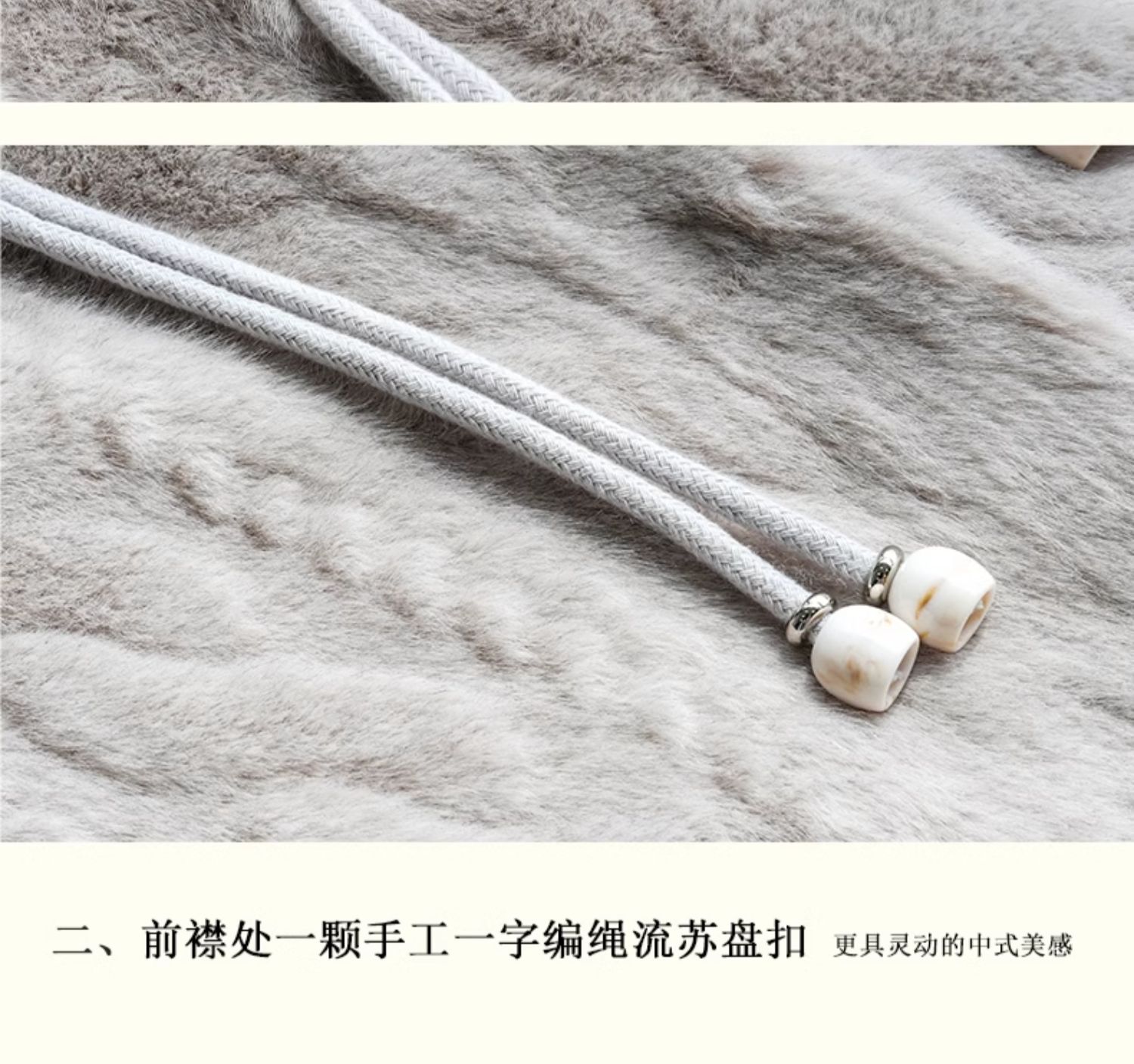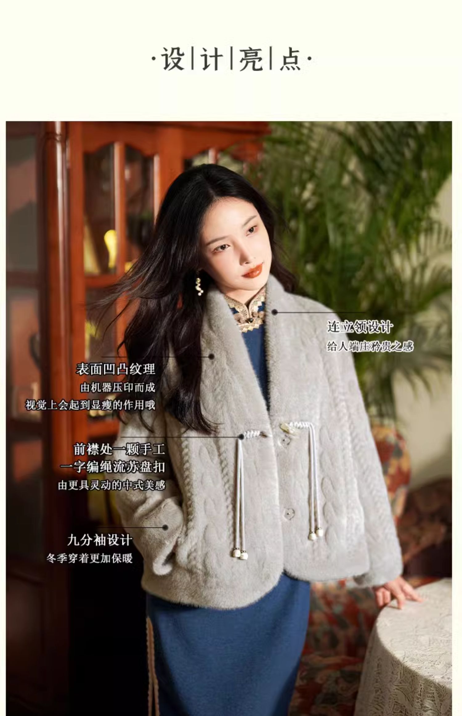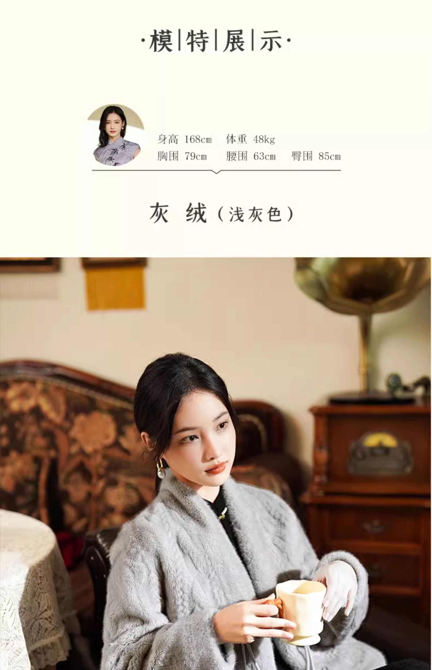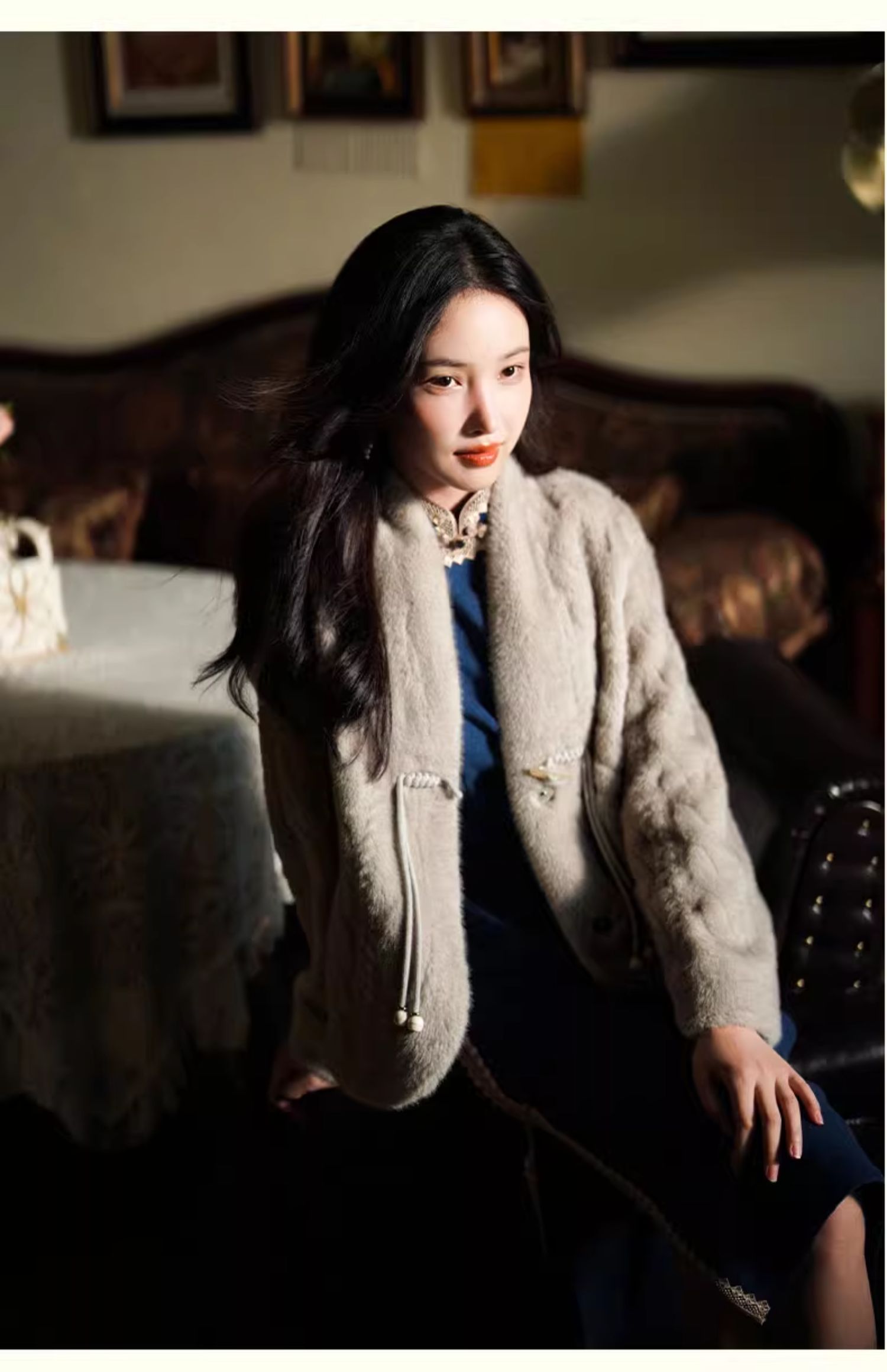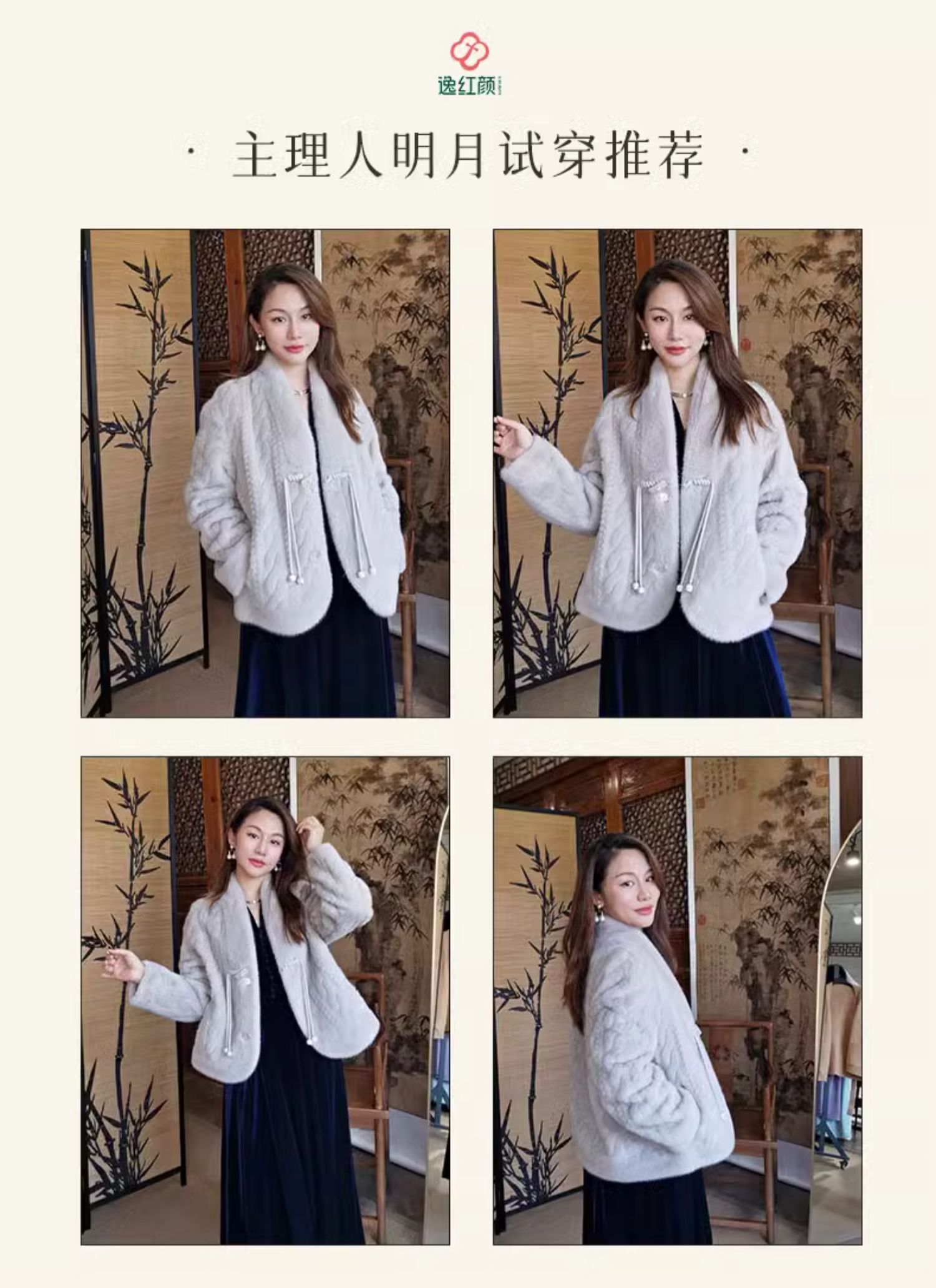 上海逸红颜灰玲2025年冬新款仿水貂毛短款皮草旗袍外套小香风外套