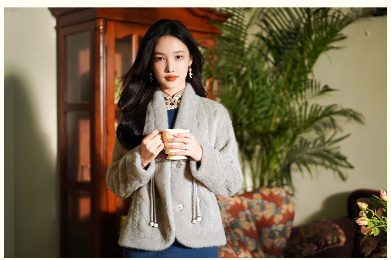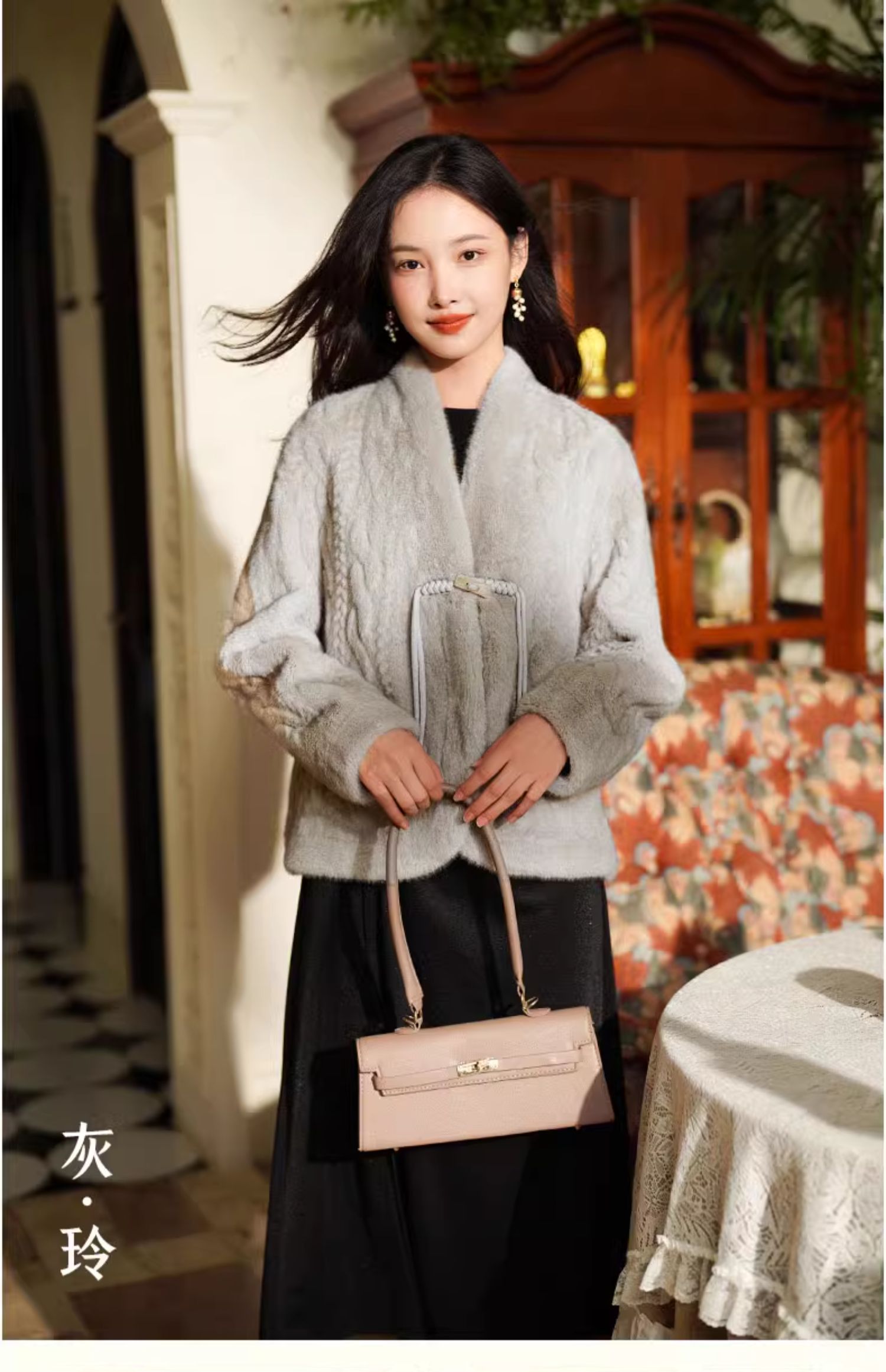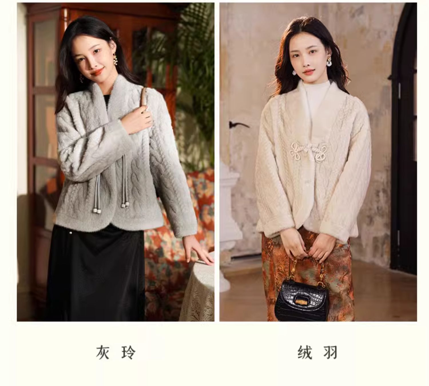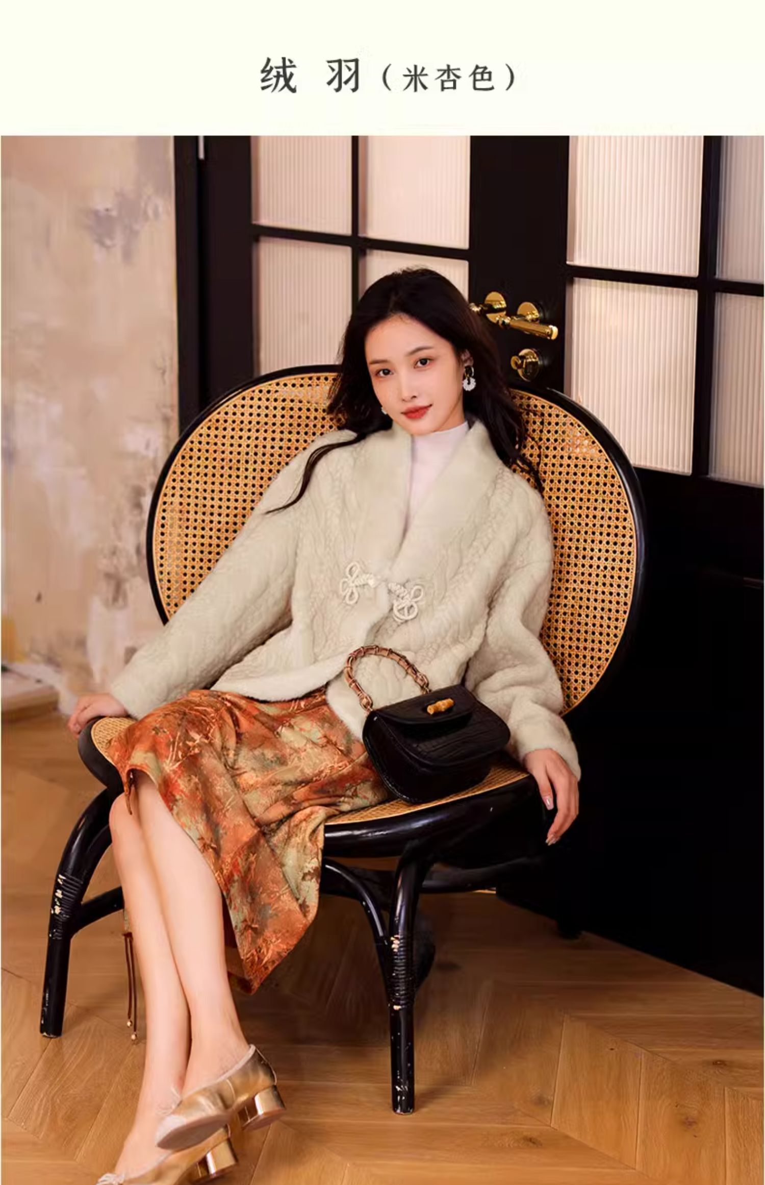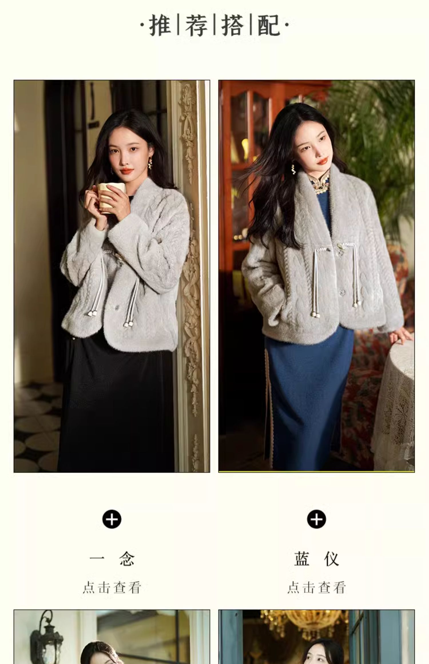上海逸红颜灰玲2025年冬新款仿水貂毛短款皮草旗袍外套小香风外套