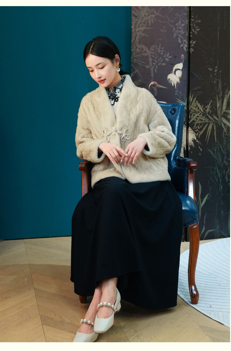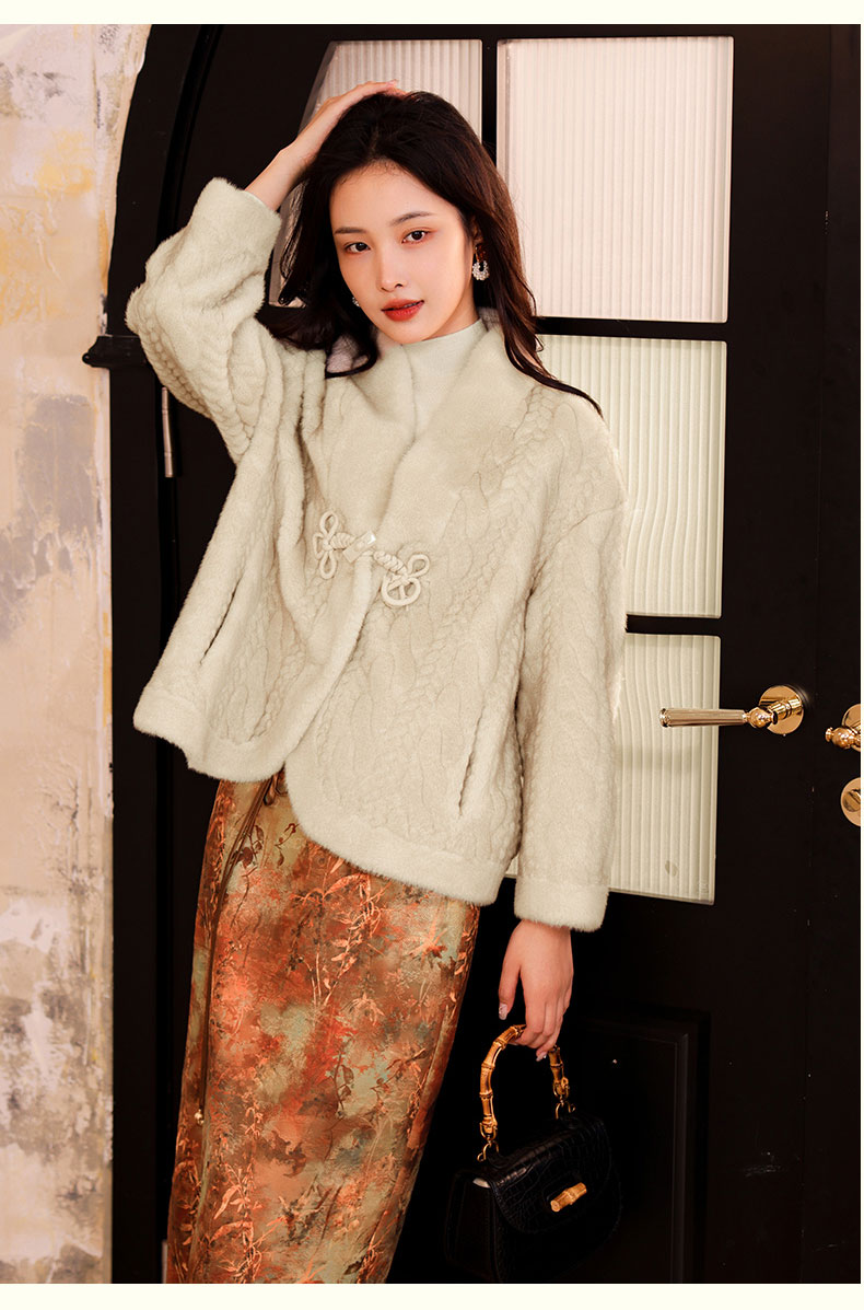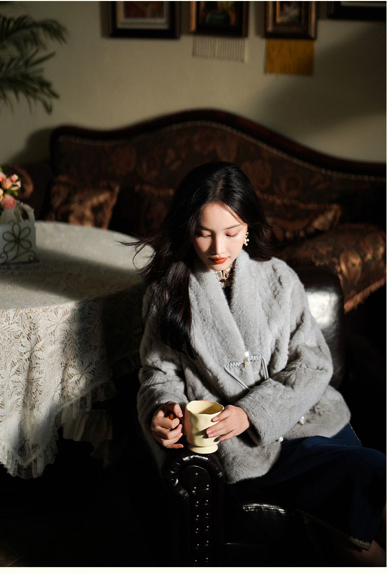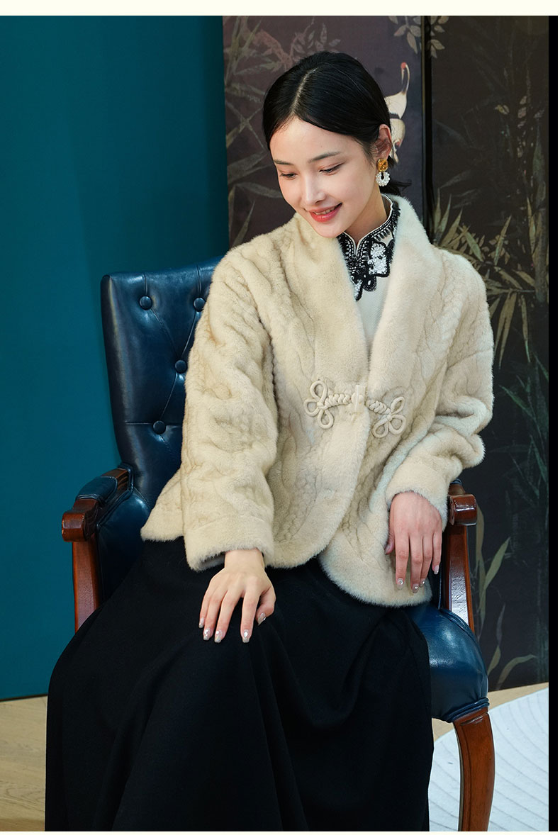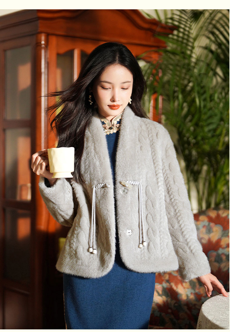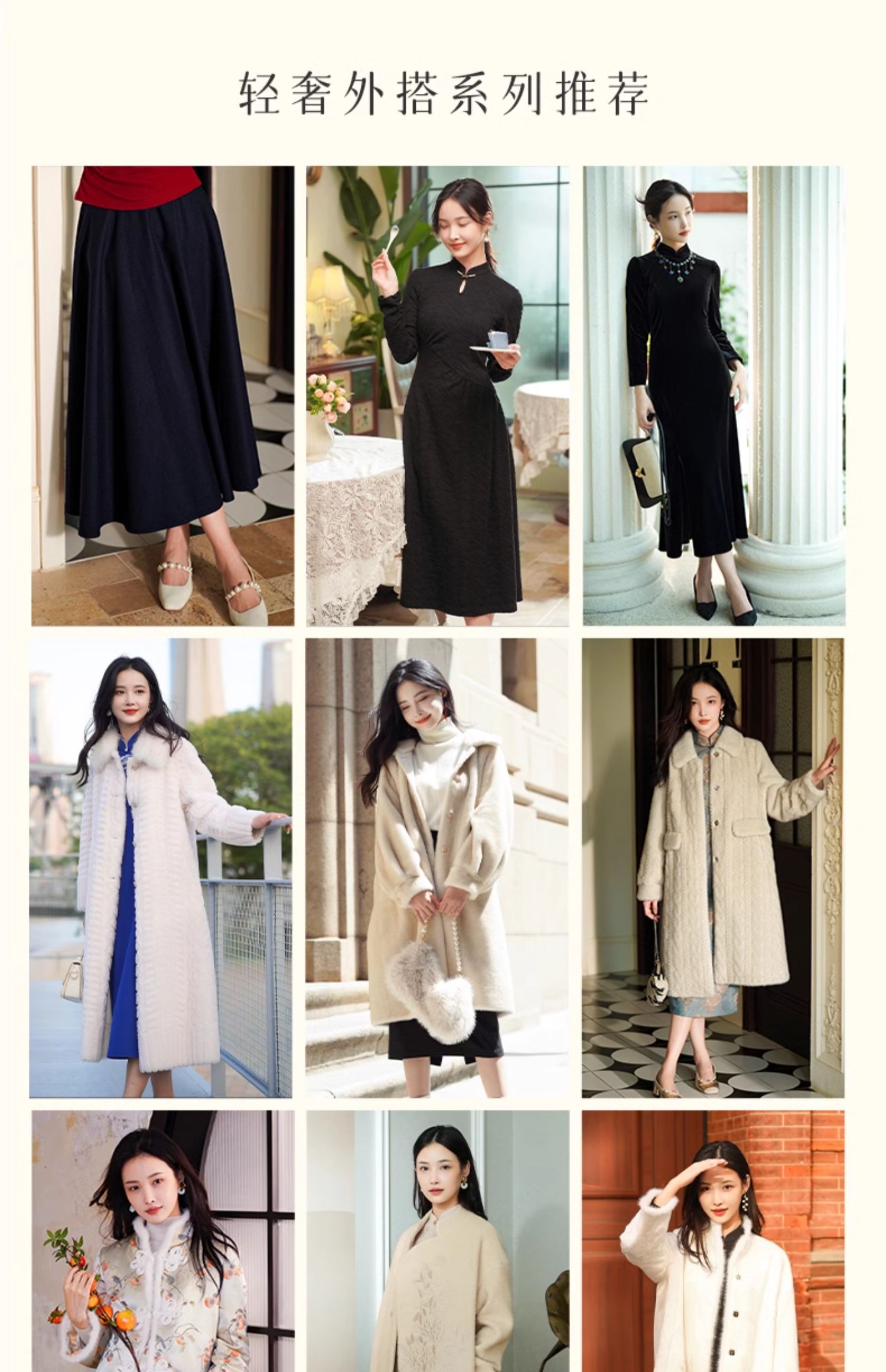 上海逸红颜灰玲2025年冬新款仿水貂毛短款皮草旗袍外套小香风外套