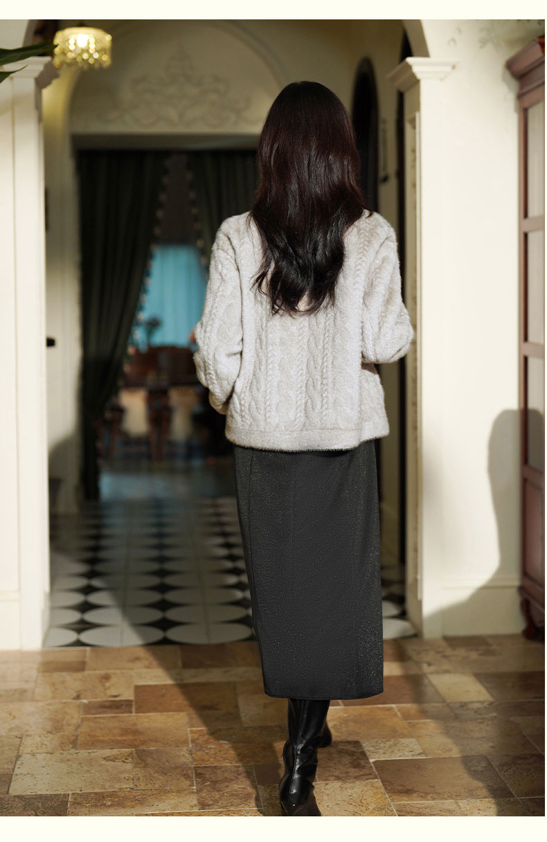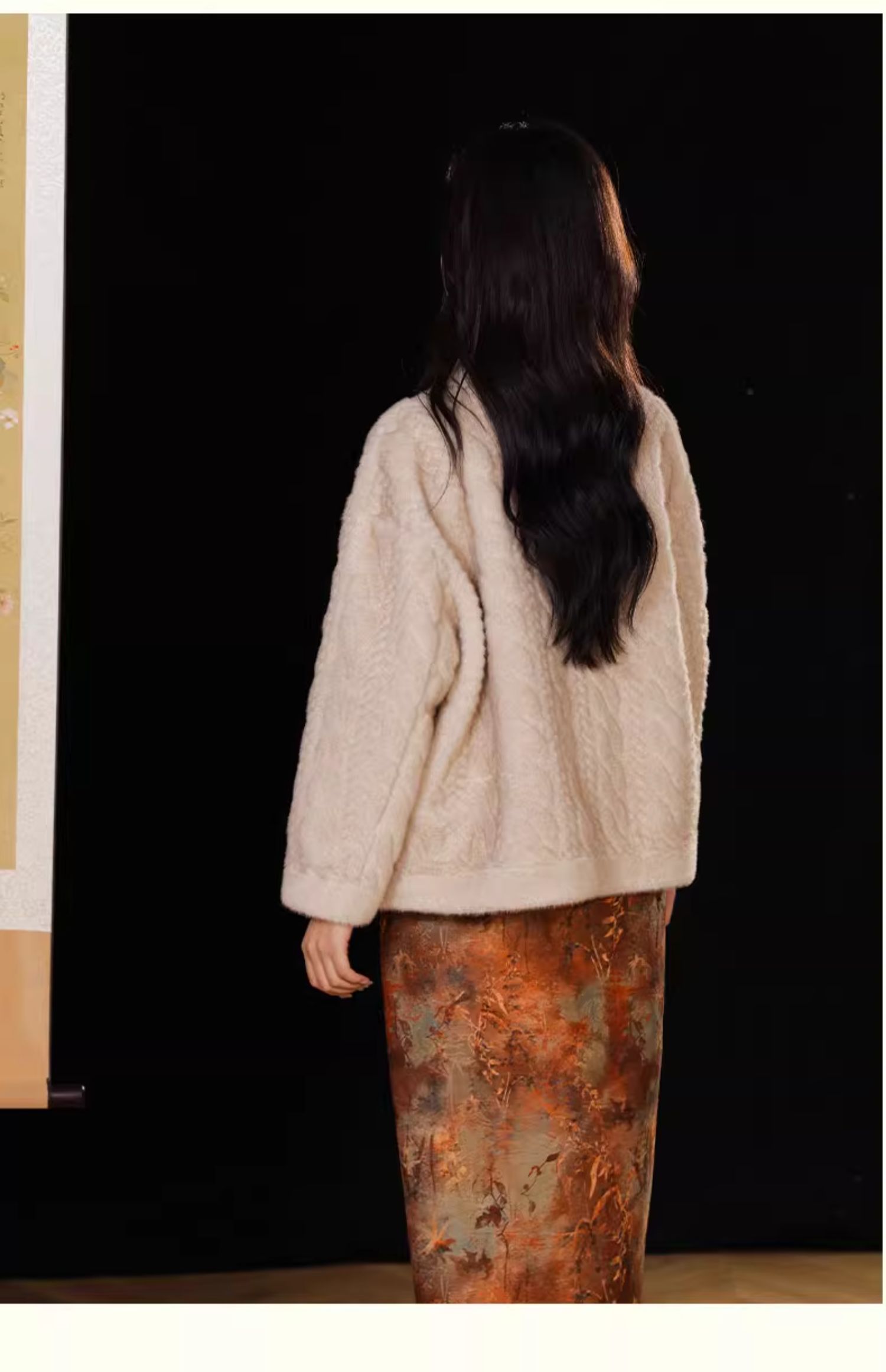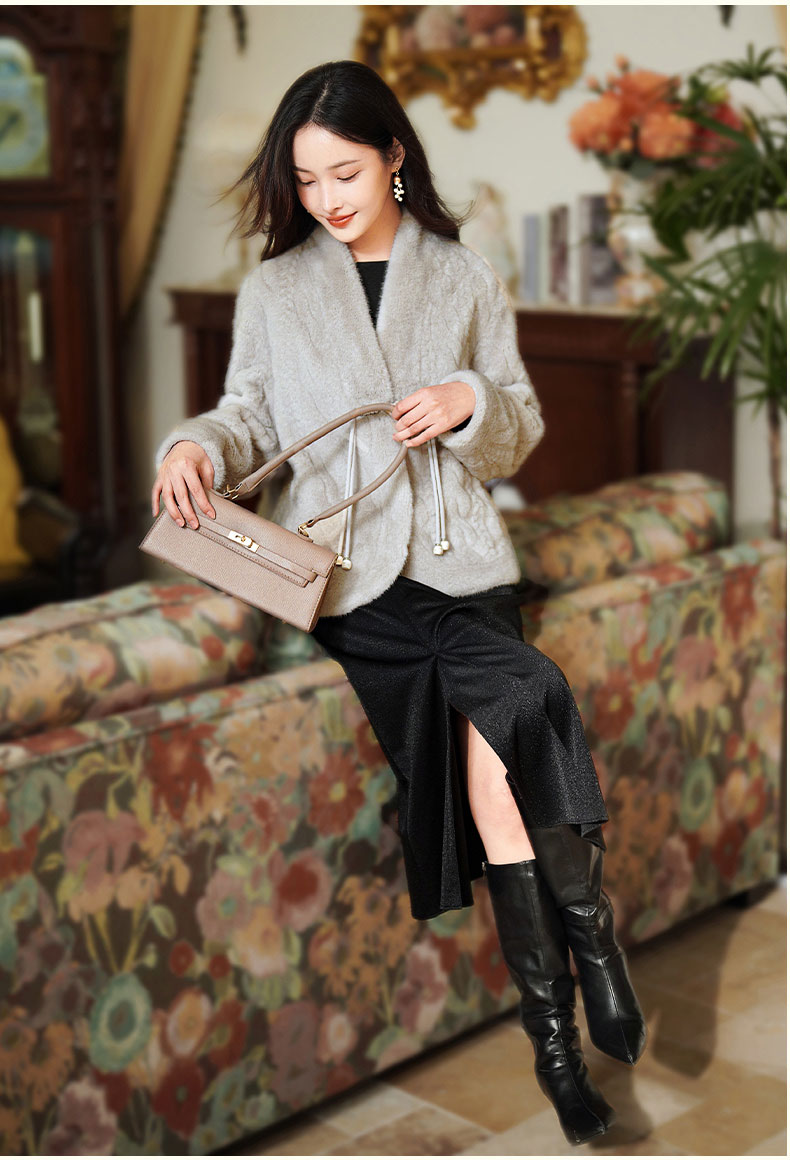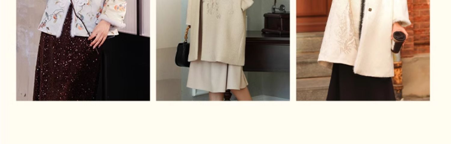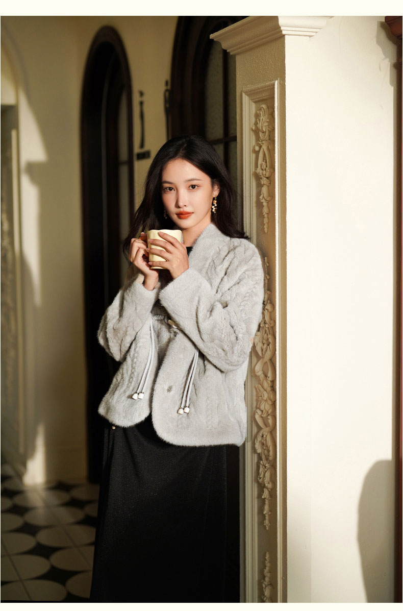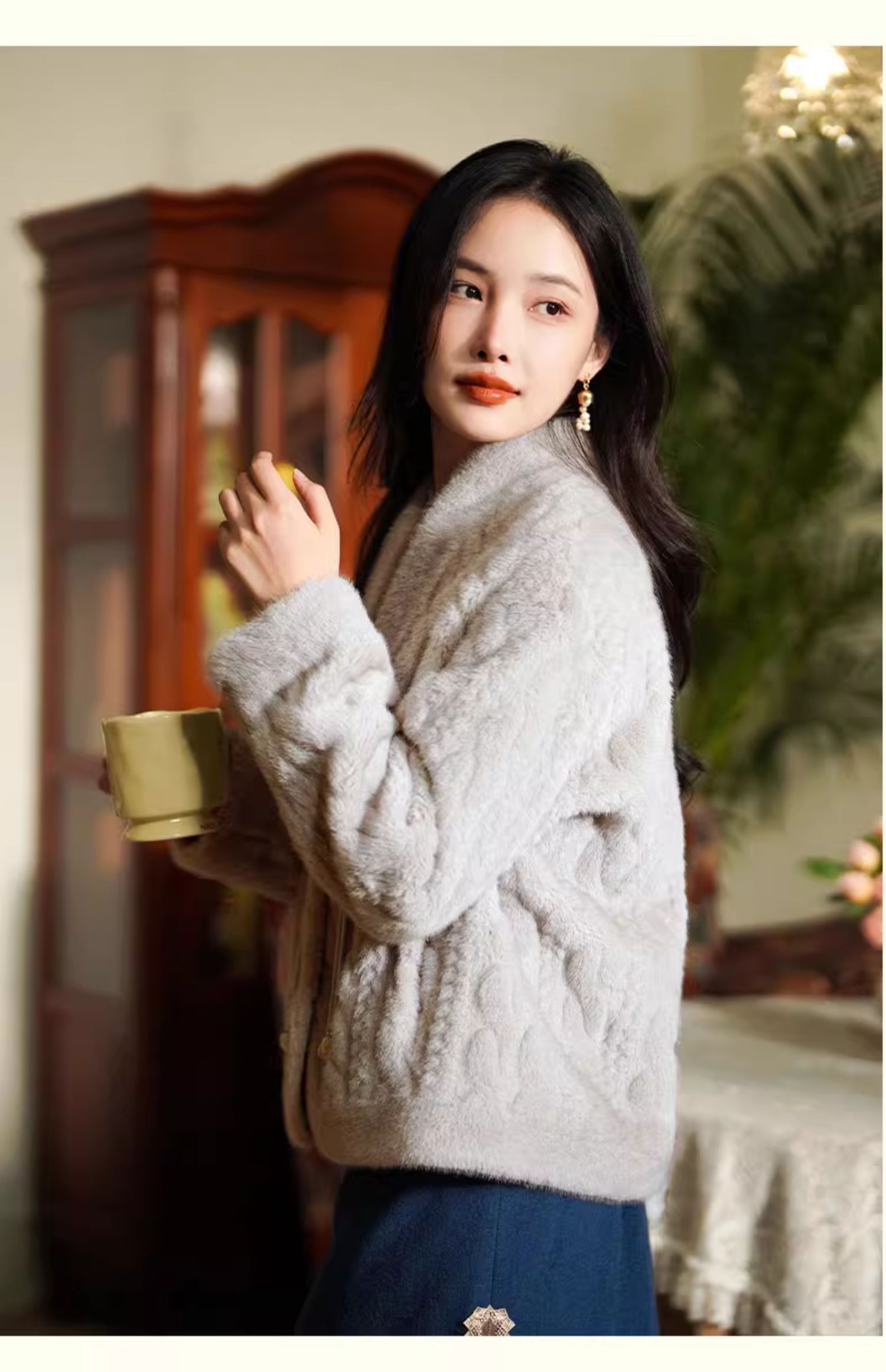 上海逸红颜灰玲2025年冬新款仿水貂毛短款皮草旗袍外套小香风外套
